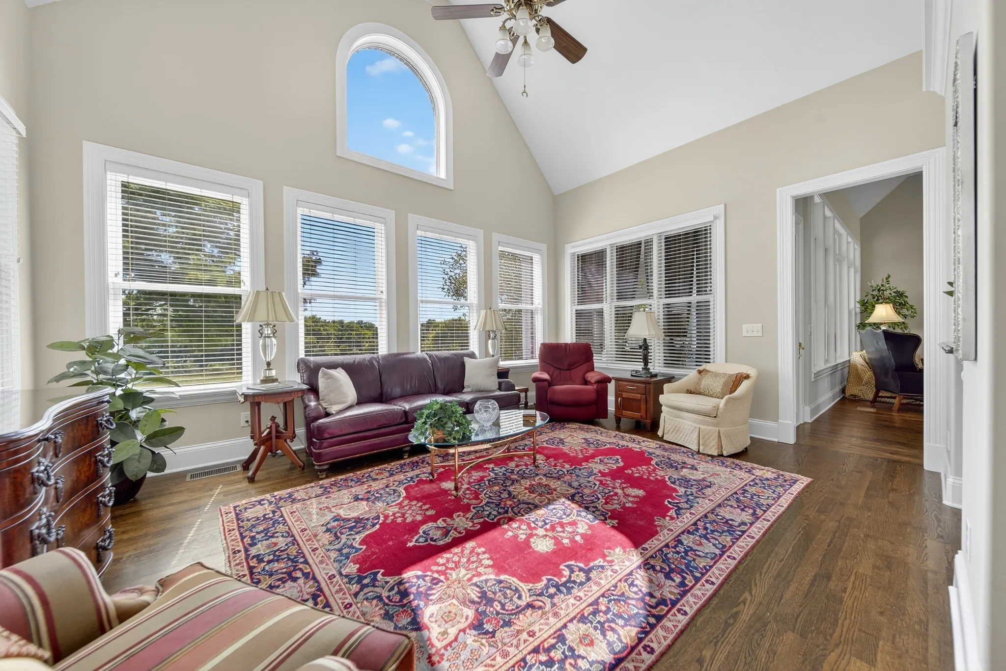 This beautiful and well-maintained home (A GOLFER’S DELIGHT) has one of the best views in all of Fairvue as it overlooks the 9th fairway and the lake. Not to mention one of the most convenient locations right next to the clubhouse/restaurant and across the street from the driving range/practice green. Single story living at it’s best with all the luxury you need in a home. Within the last two years, the entire interior of the home has been painted along the pergolas outside, all hardwood has been stained, many new fixtures added, and the HVAC’s and water heater are new, as well. You’ll love sunrises and sunsets over Old Hickory Lake from your spacious Florida Room. The foyer, dining room, living room and den all have fantastic 20″ ceilings to add to the prestige of this top-tier home. The primary suite has a cozy sitting area with a fireplace and stunning view of the golf course and lake. Bonus room has full bath and is currently being used as a bedroom. The closet in the utility room has been plumbed for an additional bathroom (currently set up as a sewing room). The basement is conditioned space and could potentially be converted to an apartment or Mother-In-Law Suite with separate entrance or can be used as a workshop, gardening room, man cave, and more! Lots of possibilities! Plenty of storage. TN Grasslands membership separate from HOA. See link below for more information. Schedule your showing today!