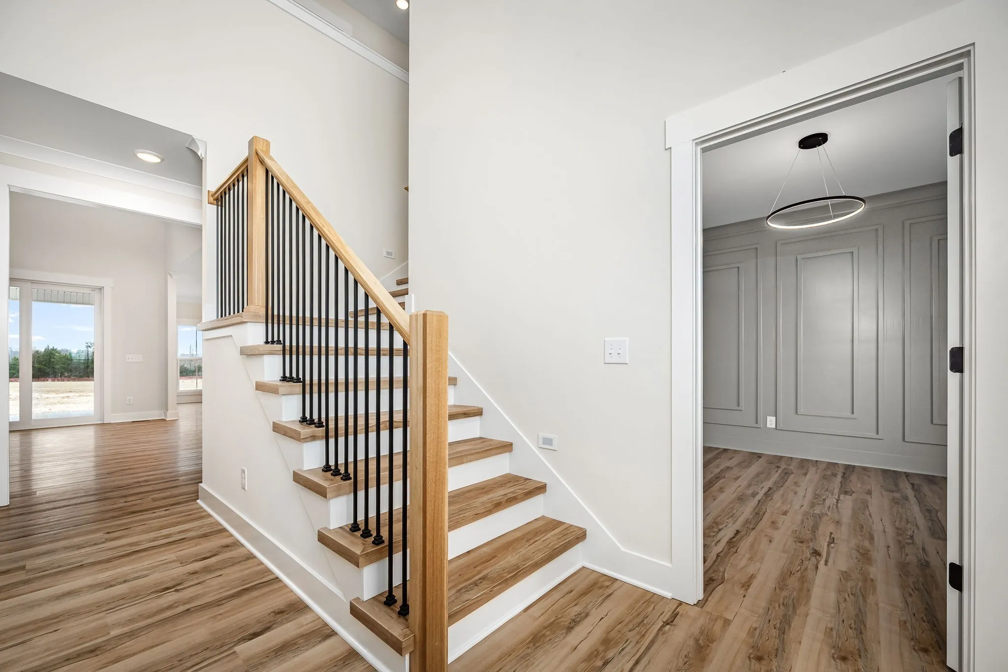 Check out the full video tour! Rare opportunity to own 1.7 acres just minutes to I-24, The Redbud plan boasts a stunning greatroom w/cathedral ceiling, Modern 18′ tall accent wall & durable LVP wood flooring. Huge dining area overlooks incredible backyard, Open & sunny kitchen with huge island, beautiful quartz counters and large walk-in pantry, Primary suite features impressive walkin closet with built-in shelving, tile shower w/rainfall showerhead, separate vanities and soaking tub, Direct access to laundry room off Primary bath makes laundry a breeze, Upstairs features large guest bedrooms each with walk-in closets, an expansive bonus room & 250 sq.ft.of walk-in storage area. Double sliding doors lead to large covered porch overlooking almost 2 acres, Fully insulated garage protects your automobile, no city taxes!