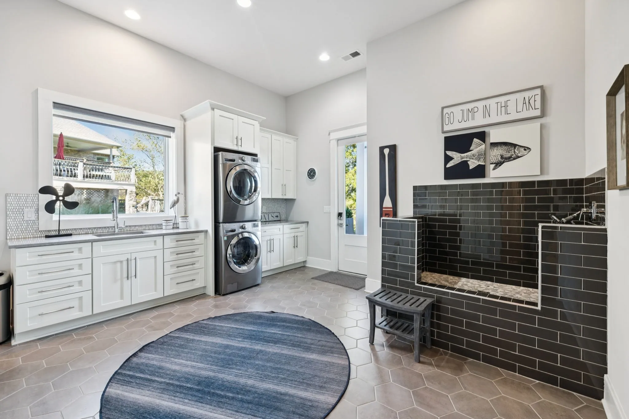 The fully finished basement is an entertainer’s dream, offering a gym, golf simulator, theater room, bar, wine room, and a custom dog spa. Thoughtfully designed and impeccably executed, this one-of-a-kind property delivers an unparalleled lakeside lifestyle.