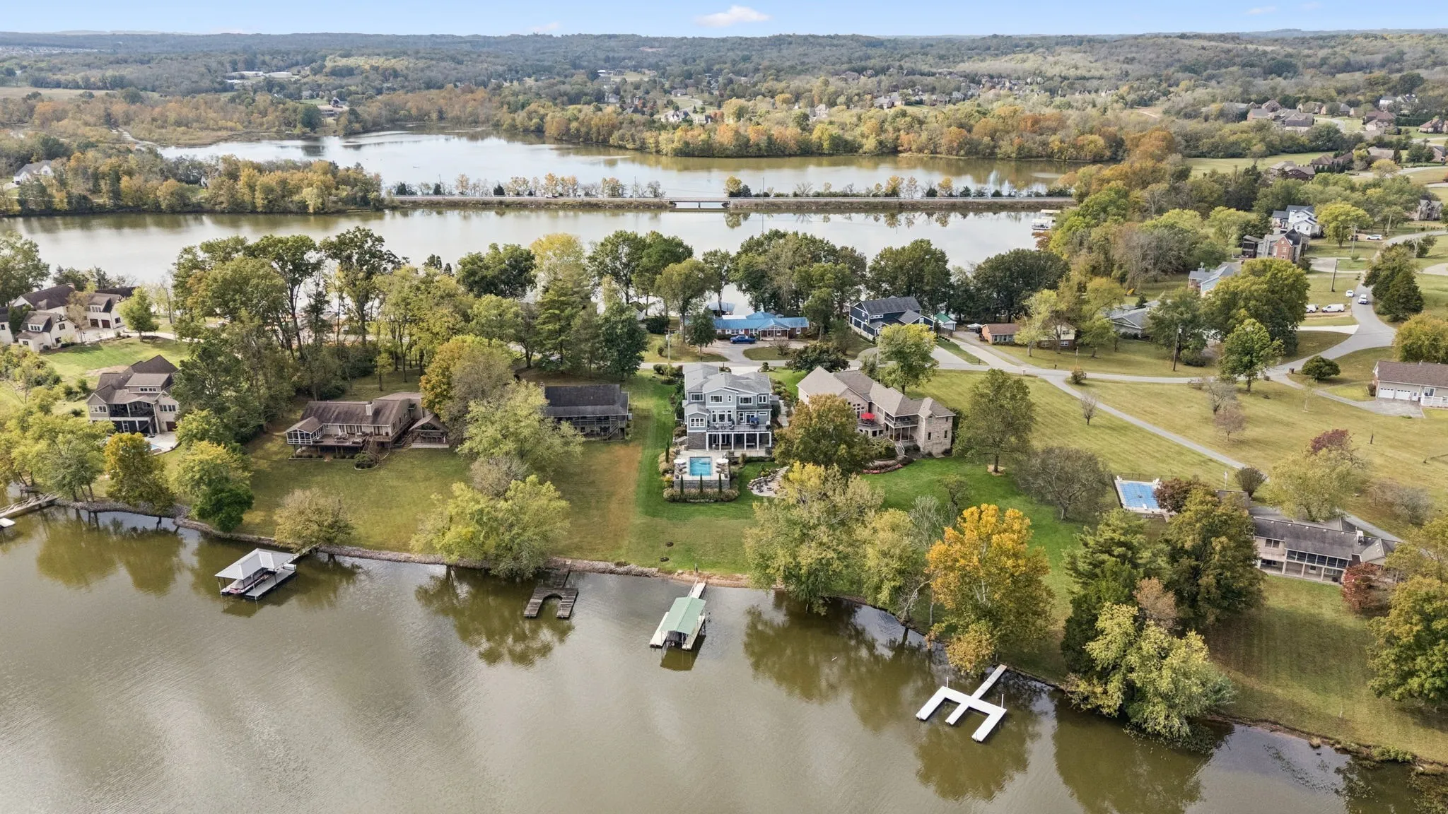Exceptional lakefront estate on Old Hickory Lake offering refined luxury and effortless waterfront living. This remarkable home blends modern design with timeless serenity, showcasing sweeping lake views and true resort-style amenities. Outdoor living shines with a private dock, heated saltwater pool, fire pit, and expansive patio.