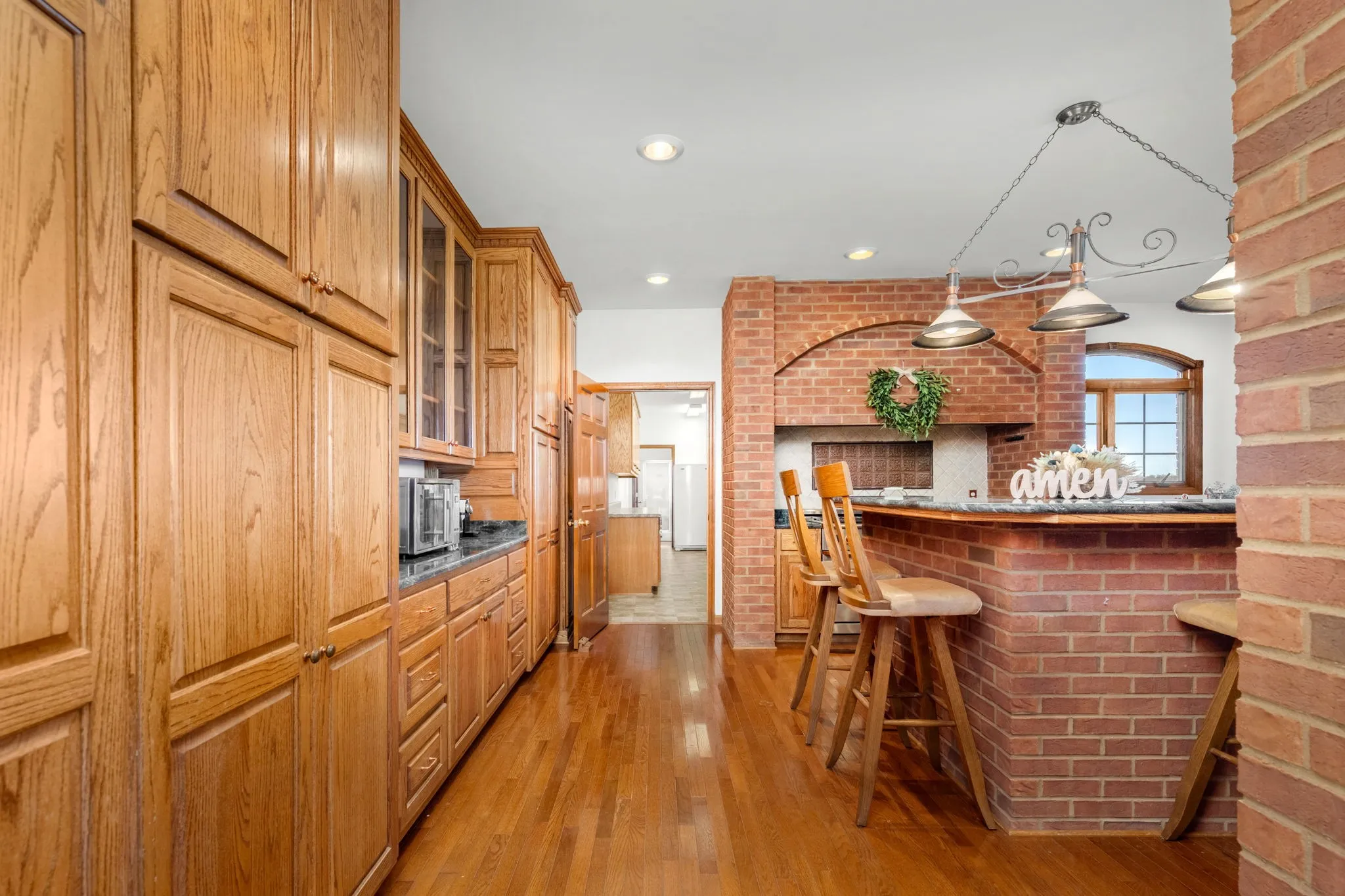 Welcome to a truly one-of-a-kind estate offering space, privacy and timeless character on 130 breathtaking acres. This custom brick residence delivers an exceptional blend of comfort and craftsmanship with room to live, work, and entertain on a grand scale. Inside the main home you’ll find 4 bedrooms and 4 full bathrooms along with multiple flex spaces including a dedicated office with built-in bookcases, bonus room, and additional sitting room. The inviting living room showcases a beautiful fireplace with custom built-ins, while tongue-and-groove ceilings in the entry and living areas add architectural charm. The dining room features distinctive brick accent walls, creating a cozy yet elegant atmosphere. The entertainer’s kitchen is designed to impress with copper sinks, abundant cabinetry, Italian marble countertops and unforgettable panoramic views of the surrounding countryside. A spacious laundry room offers generous storage, utility sink, and its own full bathroom for added convenience. Hardwood flooring flows through the main living areas, enhancing the home’s classic appeal. Outdoor living is just as remarkable with covered porches, multiple balconies, and a gated entrance welcoming you into this private retreat. The property also includes a 3-car attached garage plus a basement level 2-car garage, providing extensive parking and storage options. In addition to the main residence, the estate features an approximately 1,140 sq ft guest house offering 3 bedrooms, 1 bathroom, and a comfortable sitting area—ideal for extended family, guests, or potential rental opportunities. The land itself is equally impressive with multiple barns, fenced and cross-fenced pastures, and spectacular long-range views where you can see for miles down the road. With endless space, functional outbuildings, and breathtaking scenery, this extraordinary property presents a rare opportunity to own a premier Shelbyville estate with acreage that is increasingly hard to find.