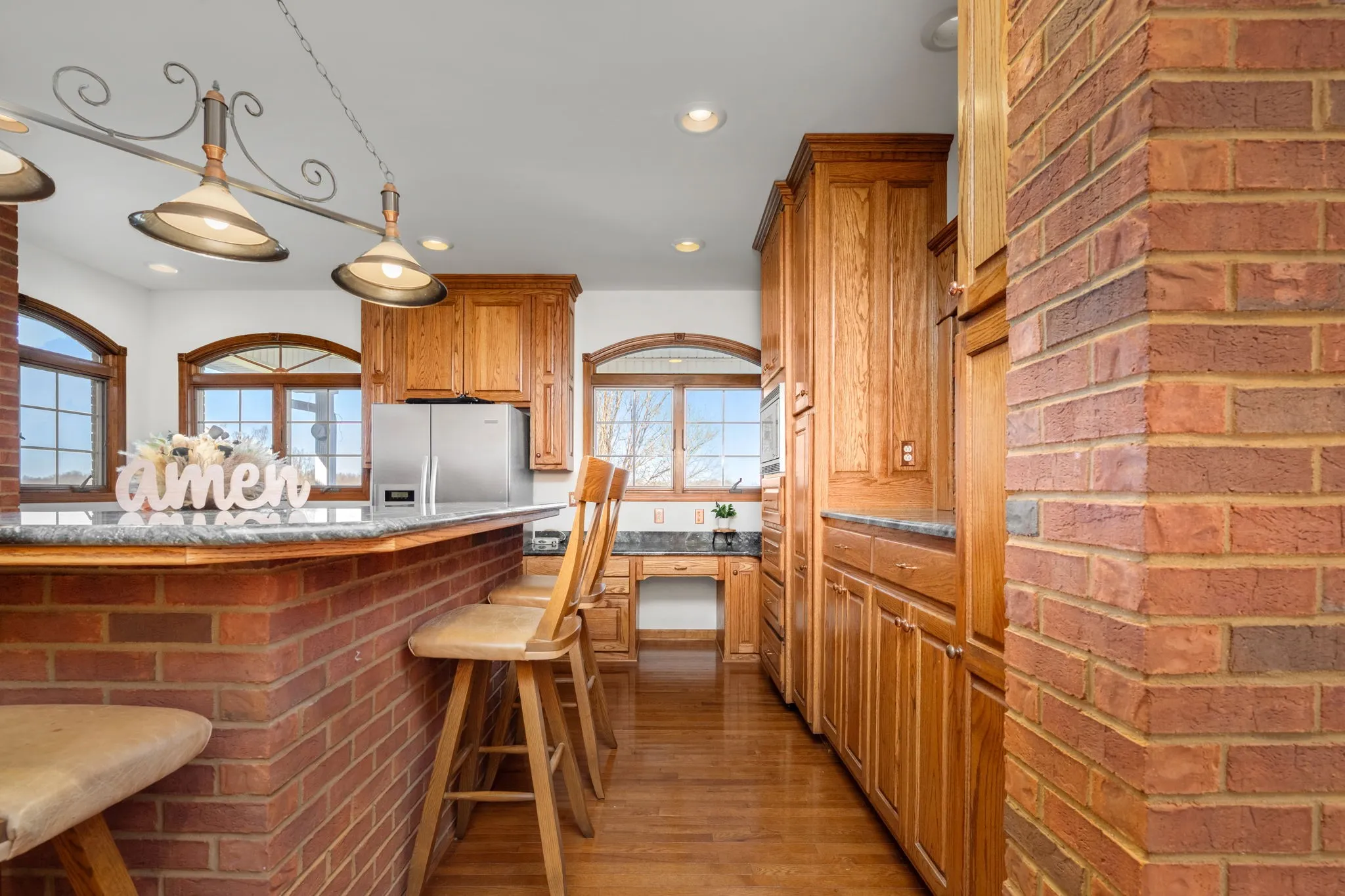 Welcome to a truly one-of-a-kind estate offering space, privacy and timeless character on 186.75 breathtaking acres. This custom brick residence delivers an exceptional blend of comfort and craftsmanship with room to live, work, and entertain on a grand scale. Inside the main home you’ll find 4 bedrooms and 4 full bathrooms along with multiple flex spaces including a dedicated office with built-in bookcases, bonus room, and additional sitting room. The inviting living room showcases a beautiful fireplace with custom built-ins, while tongue-and-groove ceilings in the entry and living areas add architectural charm. The dining room features distinctive brick accent walls, creating a cozy yet elegant atmosphere. The entertainer’s kitchen is designed to impress with copper sinks, abundant cabinetry, Italian marble countertops and unforgettable panoramic views of the surrounding countryside. A spacious laundry room offers generous storage, utility sink, and its own full bathroom for added convenience. Hardwood flooring flows through the main living areas, enhancing the home’s classic appeal. Outdoor living is just as remarkable with covered porches, multiple balconies, and a gated entrance welcoming you into this private retreat. The property also includes a 3-car attached garage plus a basement level 2-car garage, providing extensive parking and storage options. In addition to the main residence, the estate features an approximately 1,140 sq ft guest house offering 3 bedrooms, 1 bathroom, and a comfortable sitting area—ideal for extended family, guests, or potential rental opportunities. The land itself is equally impressive with multiple barns, fenced and cross-fenced pastures, and spectacular long-range views where you can see for miles down the road. With endless space, functional outbuildings, and breathtaking scenery, this extraordinary property presents a rare opportunity to own a premier Shelbyville estate with acreage that is increasingly hard to find.