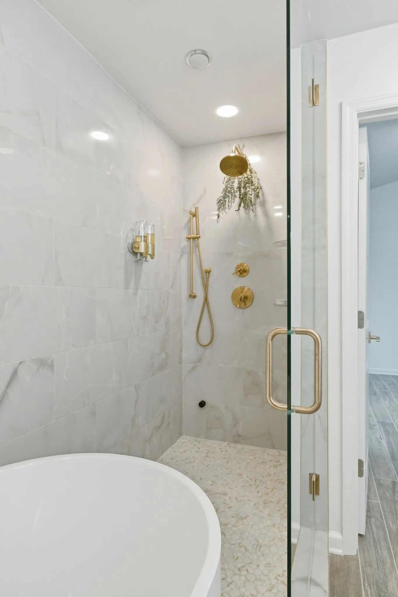 Upstairs, you’ll find a dedicated office along with a versatile flex space that works well as a media room, playroom, or additional lounge area. The primary suite offers a relaxing retreat, complete with a luxurious soaking tub and a walk-in tiled shower in the en-suite bathroom.