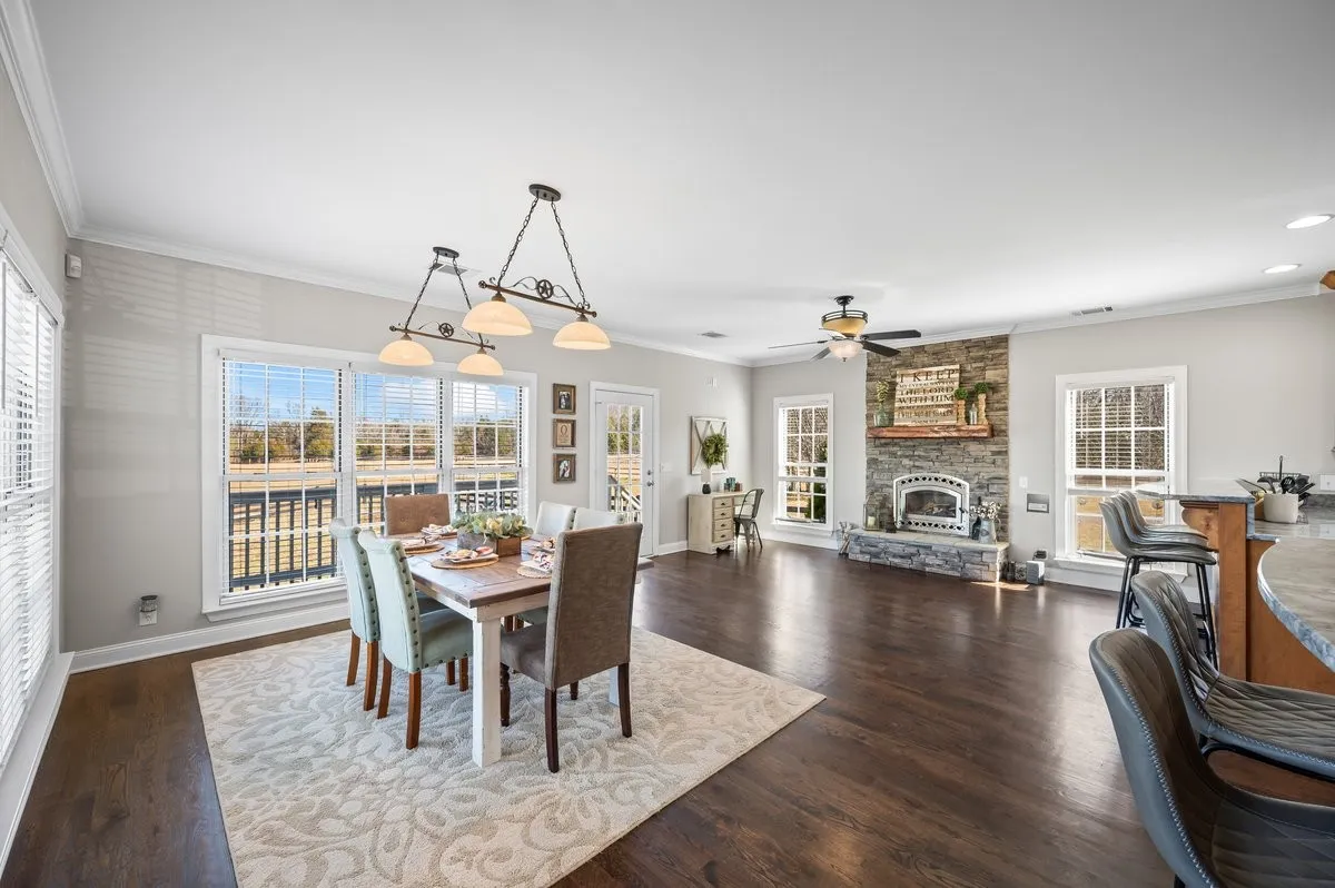 Turnkey Wilson County horse farm with arena, 7-stall barn, and no HOA. Rare Lascassas, TN equestrian estate on 24.08 acres offering a true working setup for training, boarding, or private use. Custom-built home with main-level living plus finished walkout basement, 5 bedrooms, 3.5 baths, and 4,558 sq ft. Hearth room with fireplace, eat-in kitchen, Monogram stainless appliances, and walk-in butler’s pantry. Finished basement includes safe room and additional storage.