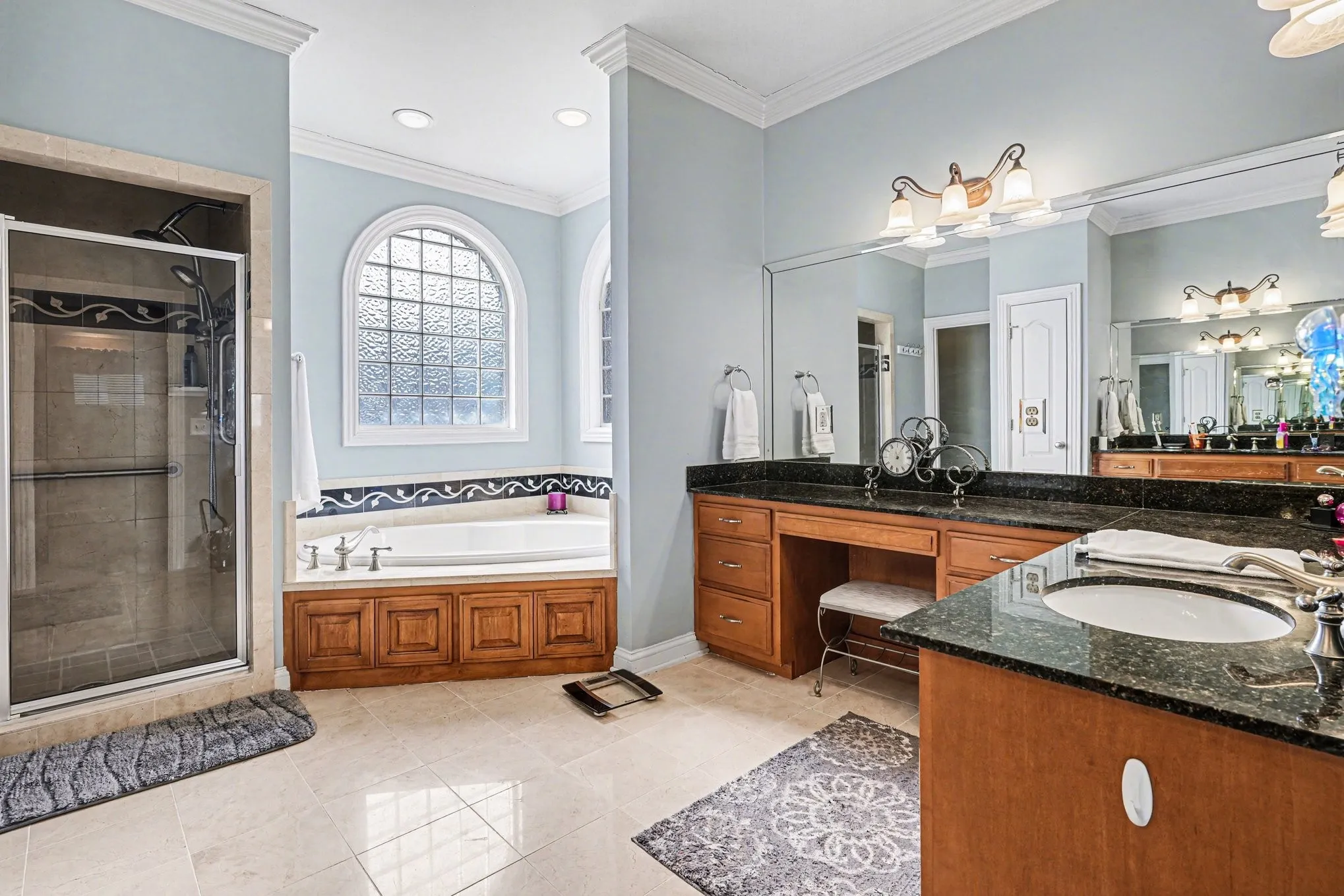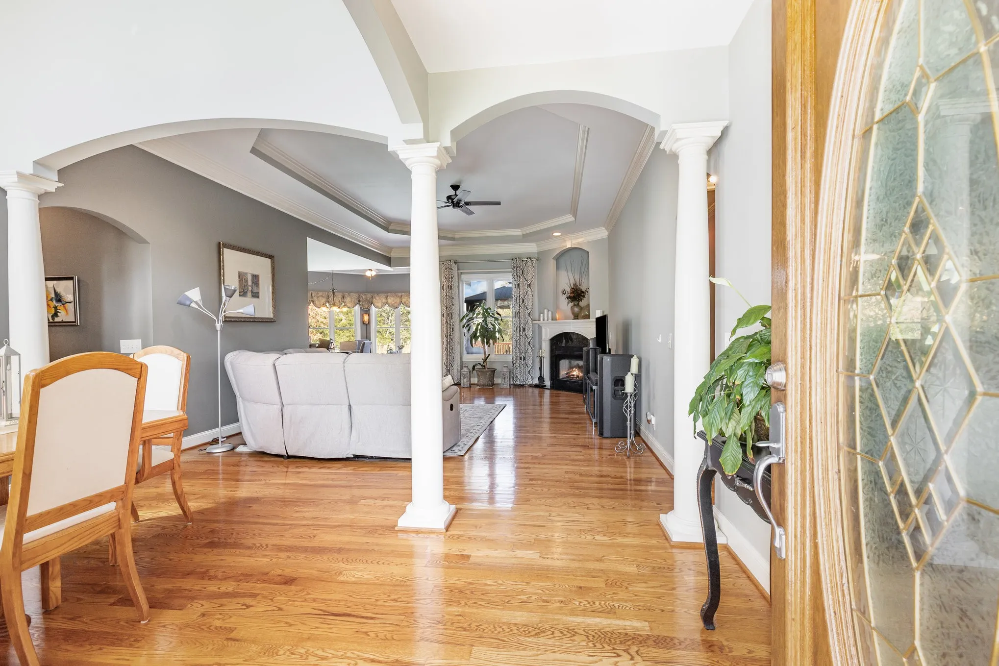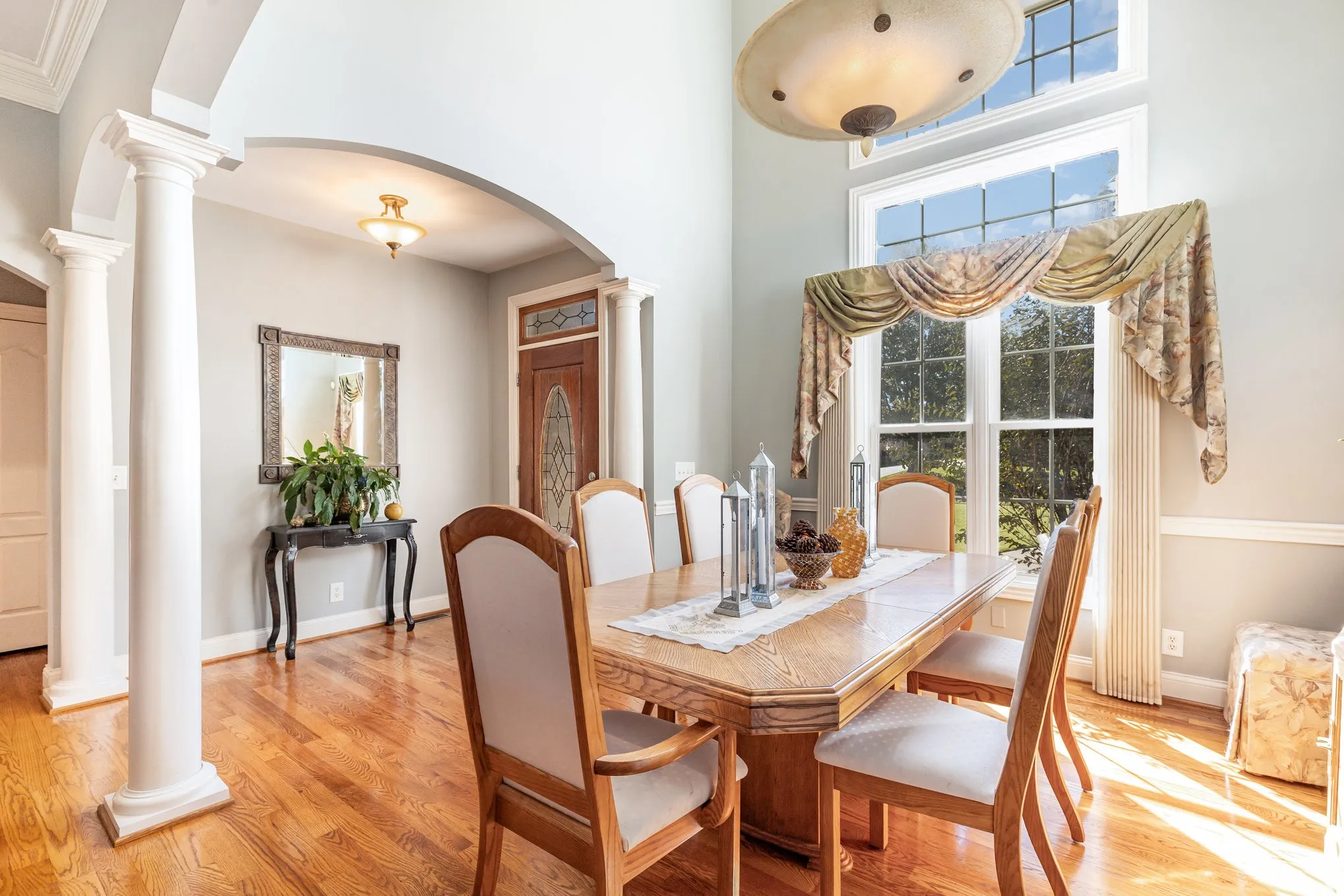 Throughout the main floor, open living spaces are highlighted by high ceilings, custom architectural touches, and abundant natural light. Genuine oak hardwood floors bring warmth and timeless character throughout the main living areas. The keeping room is a rare feature, located between the kitchen and living room, it provides sunny dining and sitting spaces that overlook the back yard and pool.