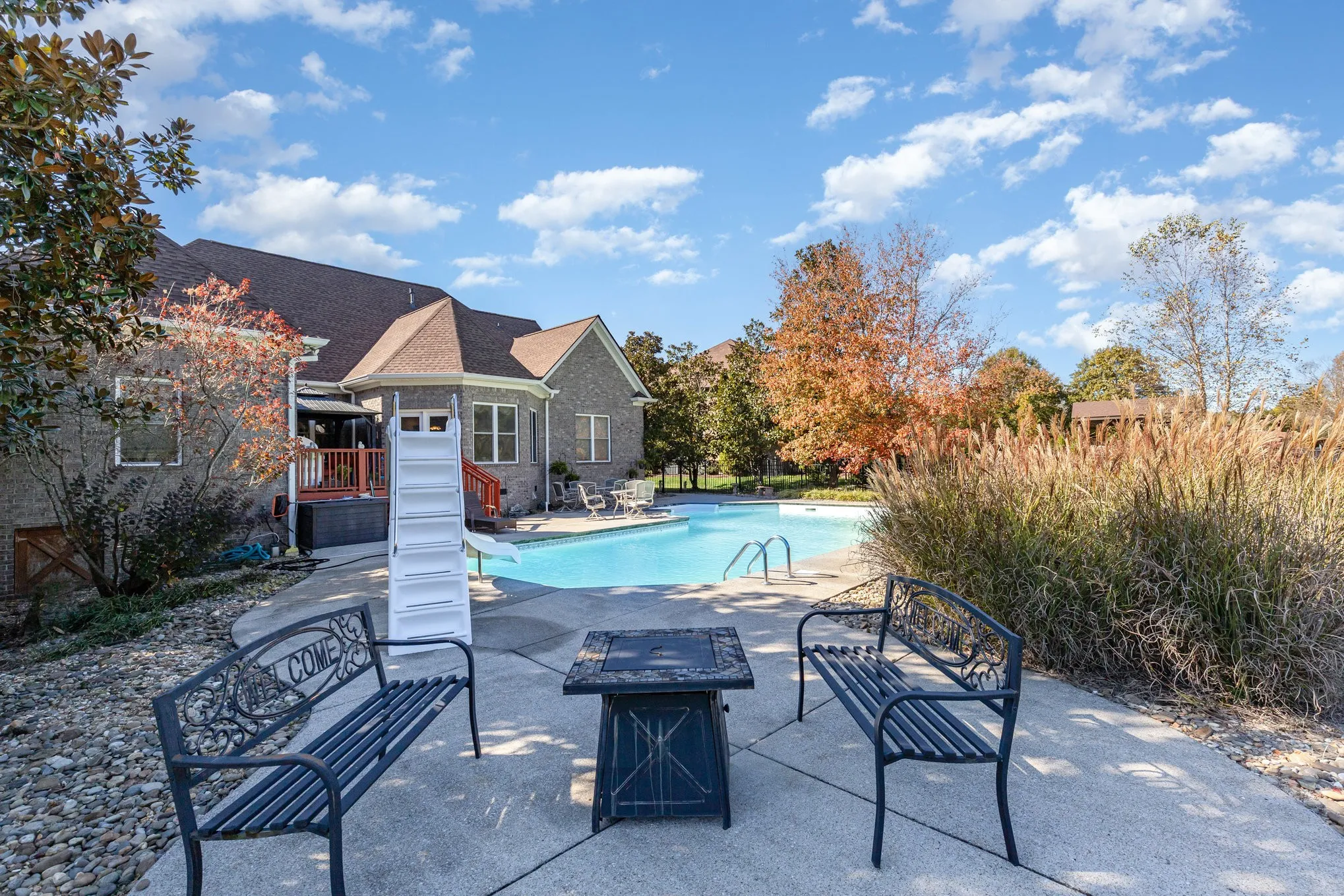 Step outside to your own backyard retreat. A large in-ground pool anchors the outdoor space, the perfect spot for summer gatherings and relaxing weekends at home. The fenced backyard offers privacy and room to play, while the expansive 45 acres of HOA green space beyond provides a peaceful, scenic backdrop with no rear neighbors. Watkins Creek is one of Franklins most picturesque neighborhoods, walking distance to Trinity Park, walking trails, ball fields and Trinity Elementary School!