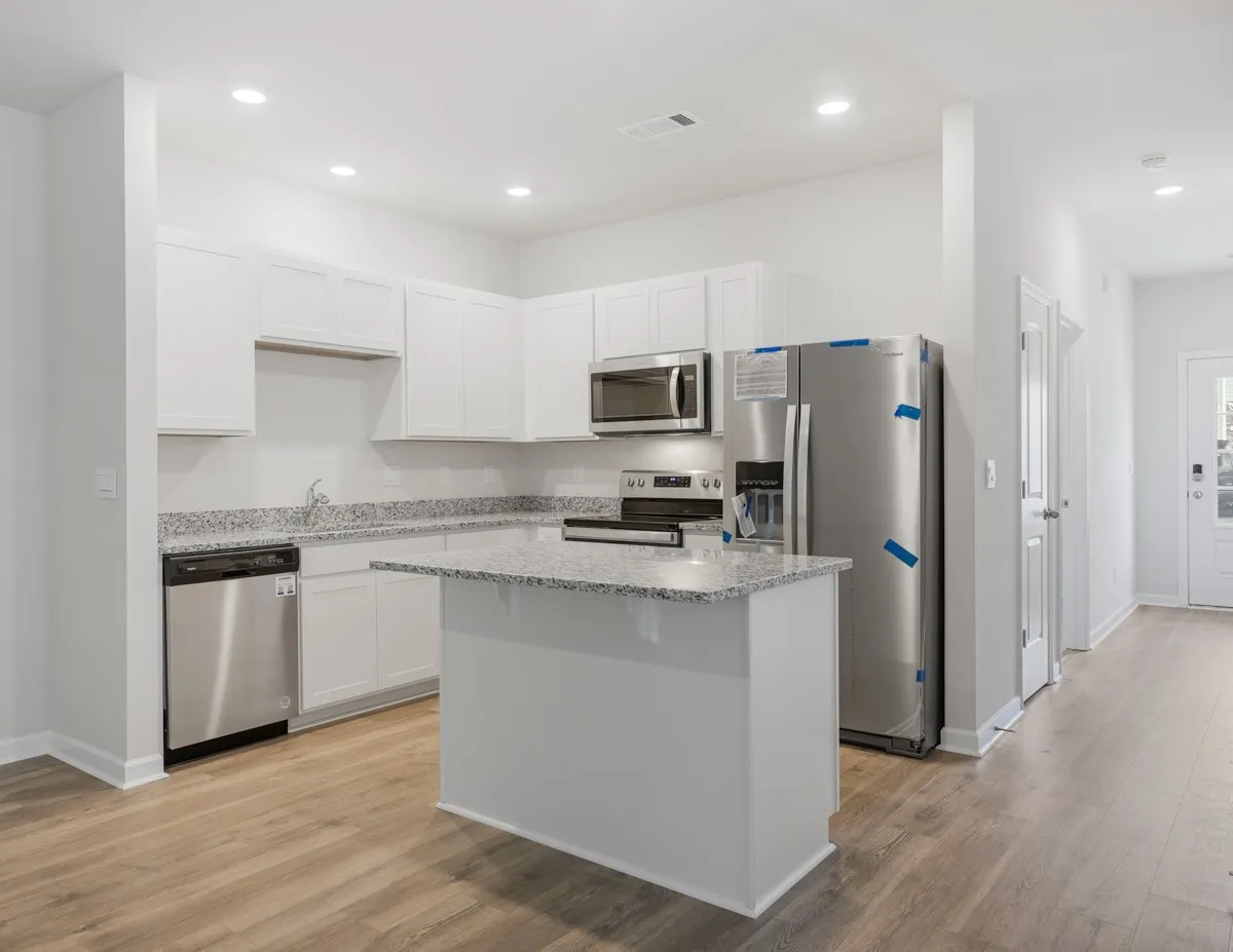 Attractive End Unit! This modern end-unit townhome offers enhanced privacy and an abundance of natural light, thanks to additional windows. Designed with contemporary finishes, the open floor plan maximizes space for versatile living. Enjoy brand-new appliances including Refrigerator and Washer/Dryer, stylish fixtures, and premium flooring throughout. Built with the latest construction materials and technology, this home ensures energy efficiency and modern comfort. Blinds are already installed for added convenience. Located just minutes from schools, grocery stores, and easy interstate access, this home is perfect for those seeking convenience and a fresh start. Residents will also enjoy access to community amenities, including a playground and outdoor recreation areas.
