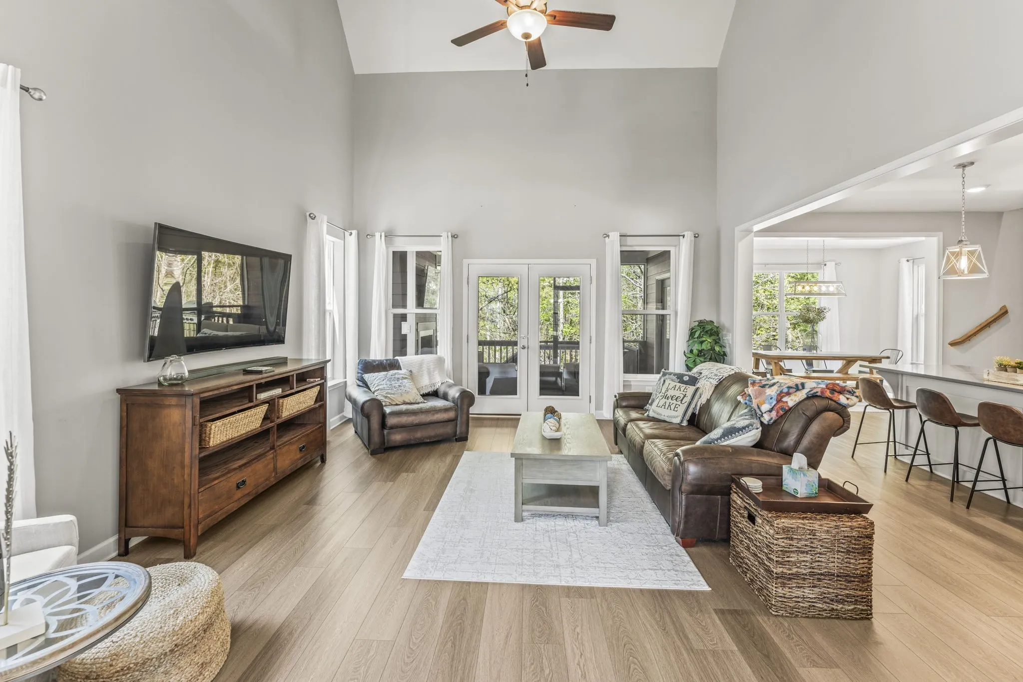 Beautifully Furnished Tim’s Ford Lake House, multiple upgrades, screened porch, private back yard, fiber internet, remote lighting/ thermostat/access locks, including golf cart. Four minutes from basic amenities and 10 minutes from Tullahoma. Perfect spot to enjoy with family AND fantastic returns with Airbnb/Vrbo. Private culdesac with community private golf cart path/golf cart parking across from Holiday Marina with restaurant, bar, and boat slips. HOA covers lawn maintenance and trash pickup.