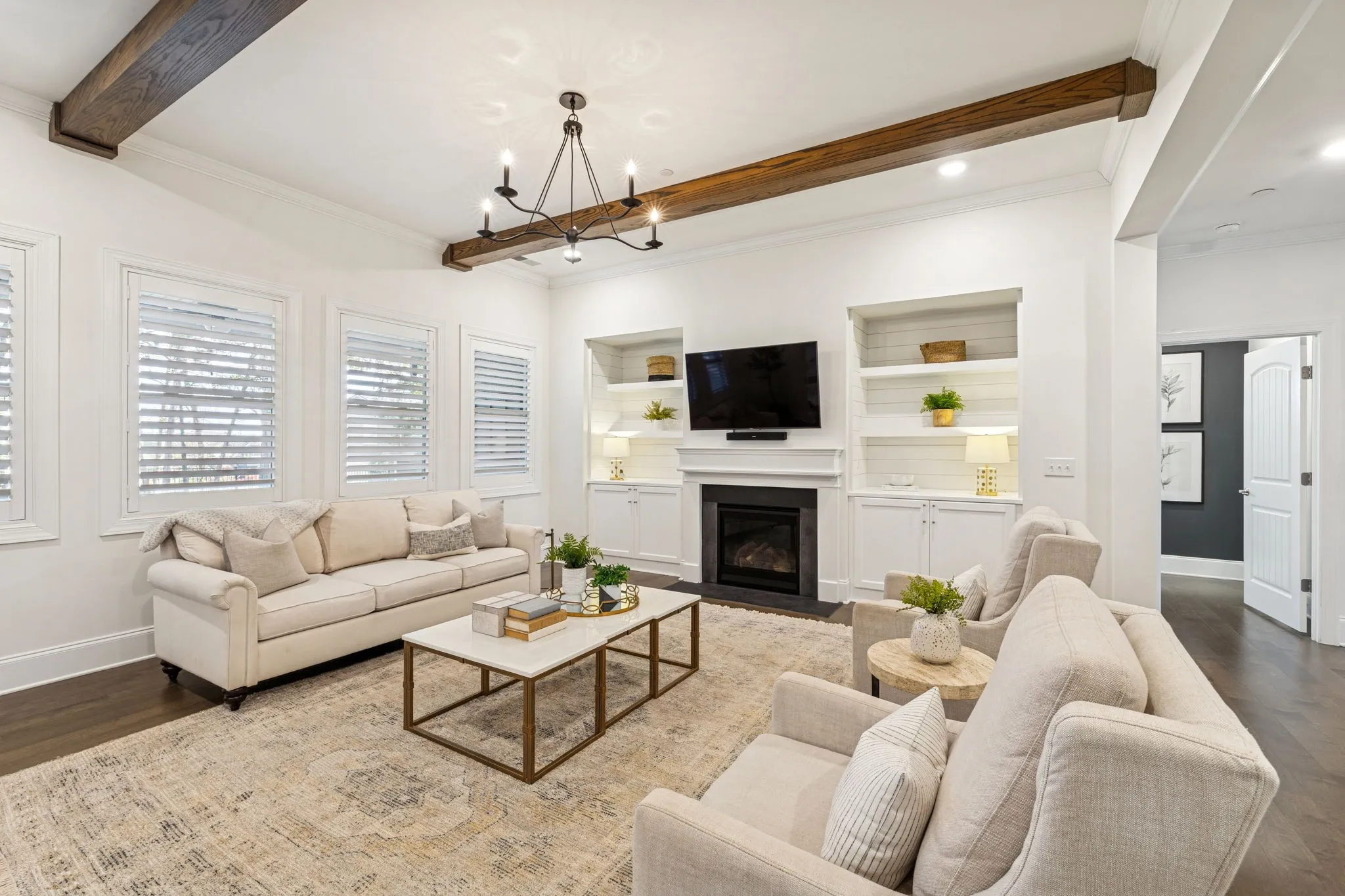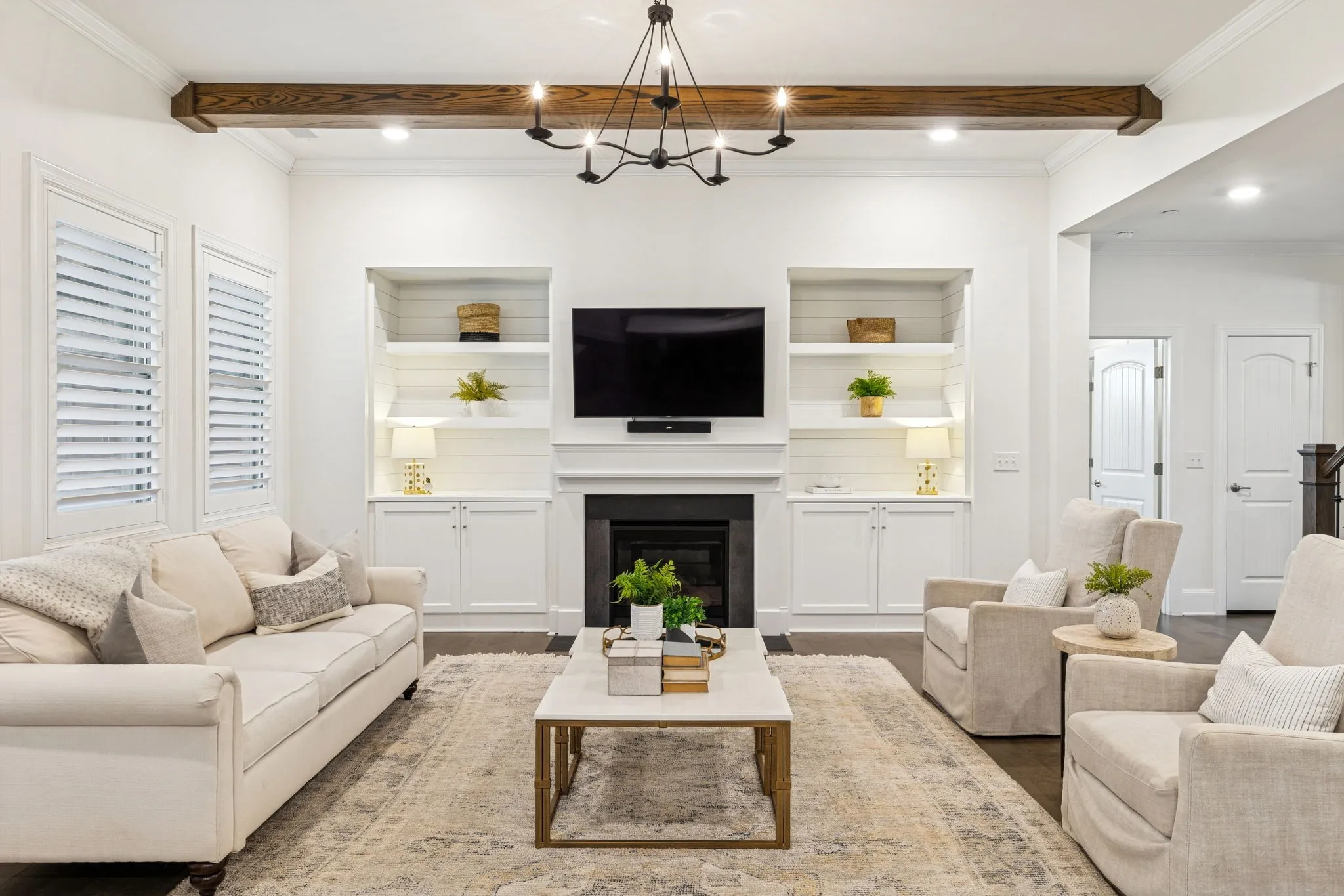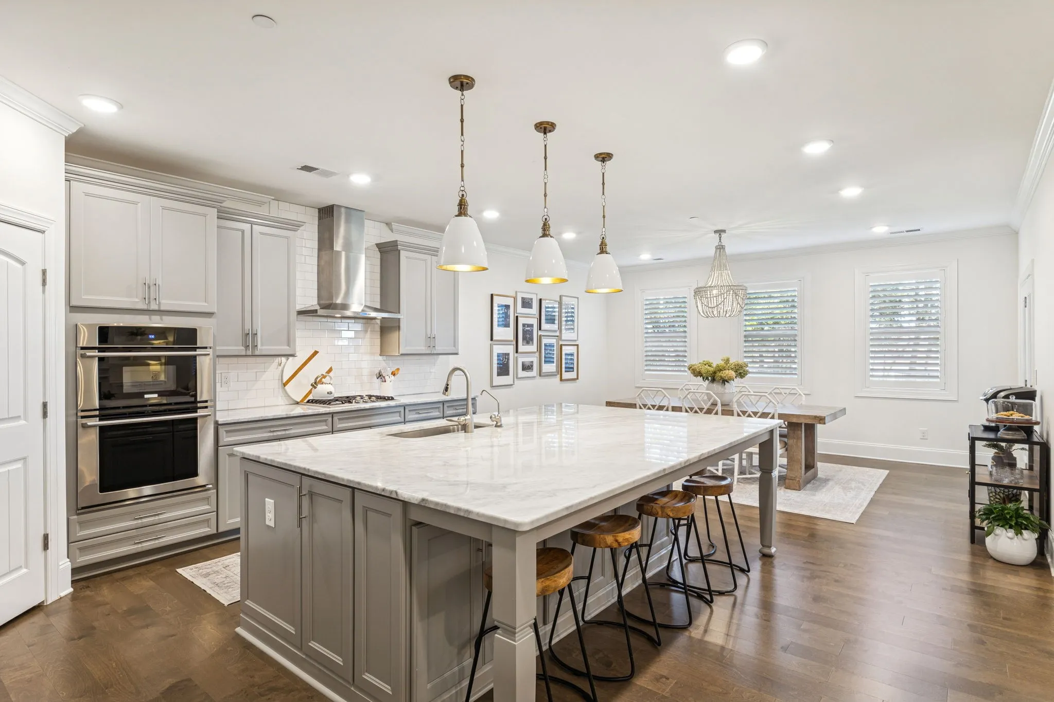Stunning stone and brick home located in the sought-after Catalina community of Nolensville. A quaint covered front porch welcomes you into a bright, open interior featuring a formal dining room or office just off the foyer, complete with wainscoting and coffered ceiling details. The living room offers a cozy gas fireplace, built-in shelving, and a clean, crisp aesthetic enhanced by abundant natural light and fresh white finishes. The open-concept kitchen is designed for both function and entertaining, featuring a spacious island with seating on two sides, ample prep space, stainless steel appliances, a built-in oven, gas cooktop, pantry, and a breakfast nook that flows seamlessly into the living area. The main level also includes a powder room, laundry room, and a drop zone with custom cabinetry for convenient storage. The primary suite is located on the main level and includes an additional seating area, double vanities, a separate tub and shower. Upstairs, you’ll find a large rec/media room with endless potential, a flex space, along with three additional bedrooms and two full baths. Outdoor living is enhanced by a covered back porch and garden area. Additional features include built ins, plantation shutters throughout, a three-car attached garage and a large driveway offering extra parking. Catalina community amenities include a pool, sidewalks, green spaces, trails, and a soccer field. Ideally located approximately 20 miles from downtown Nashville and just 15 miles from historic downtown Franklin.