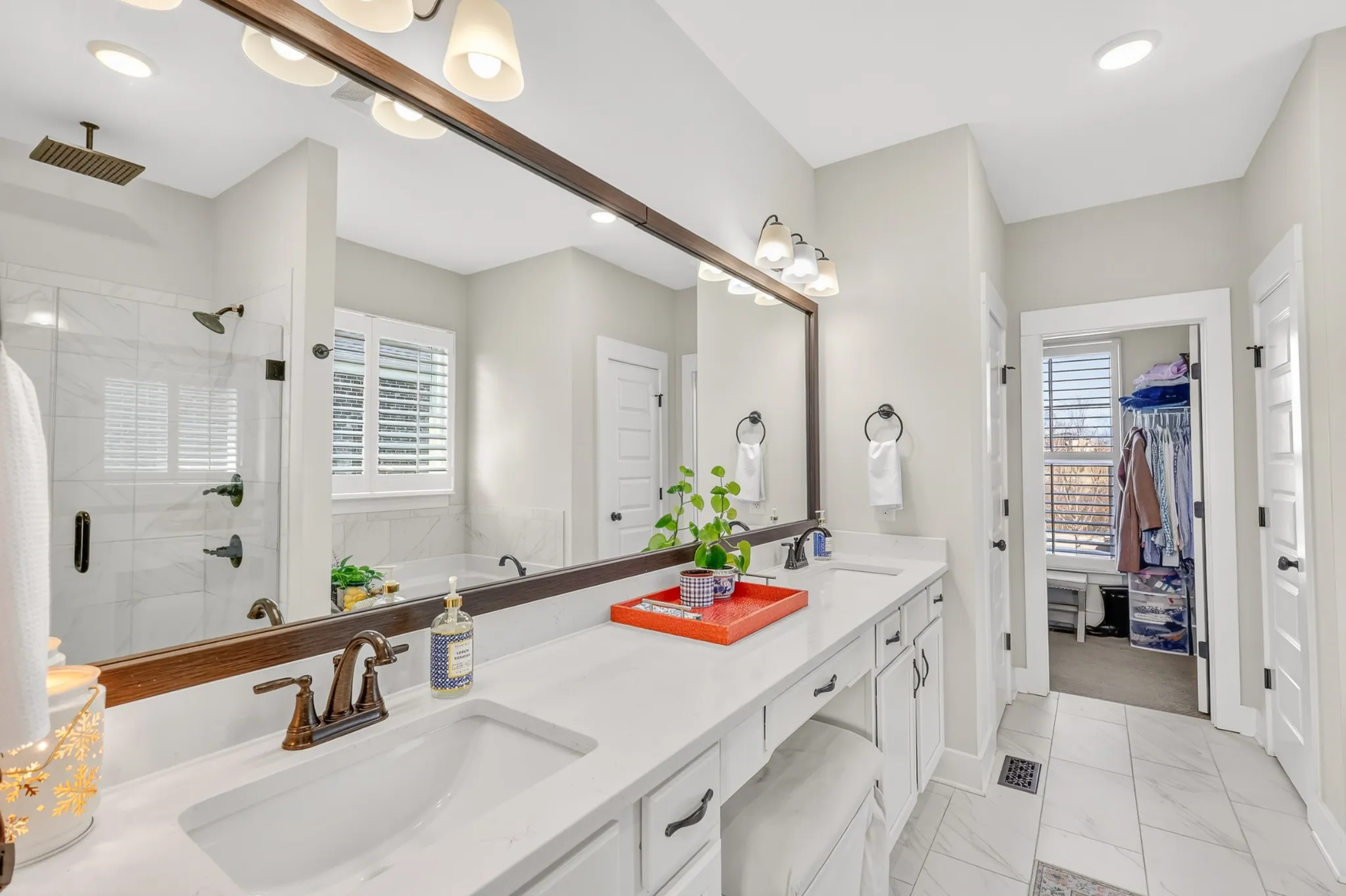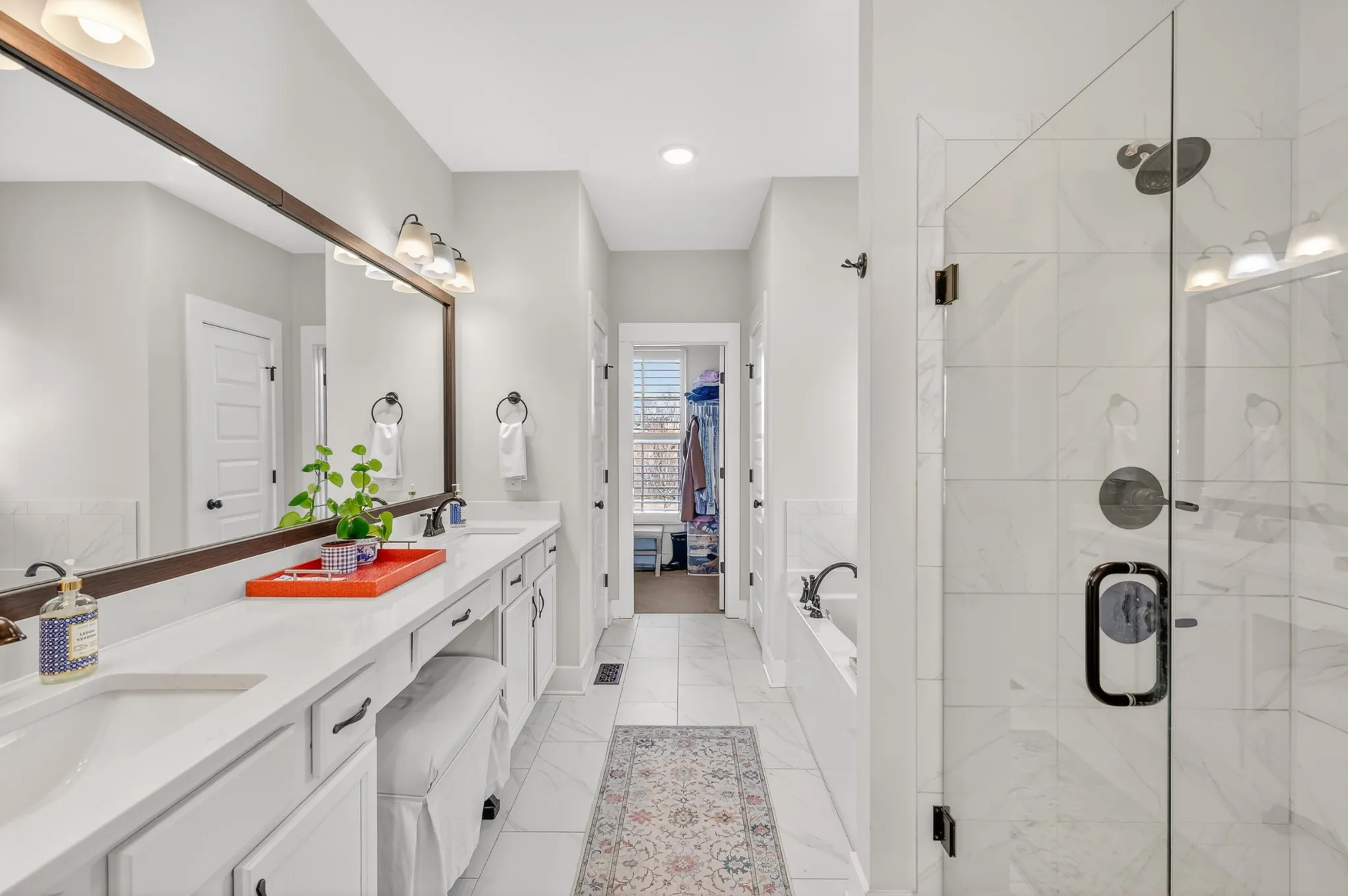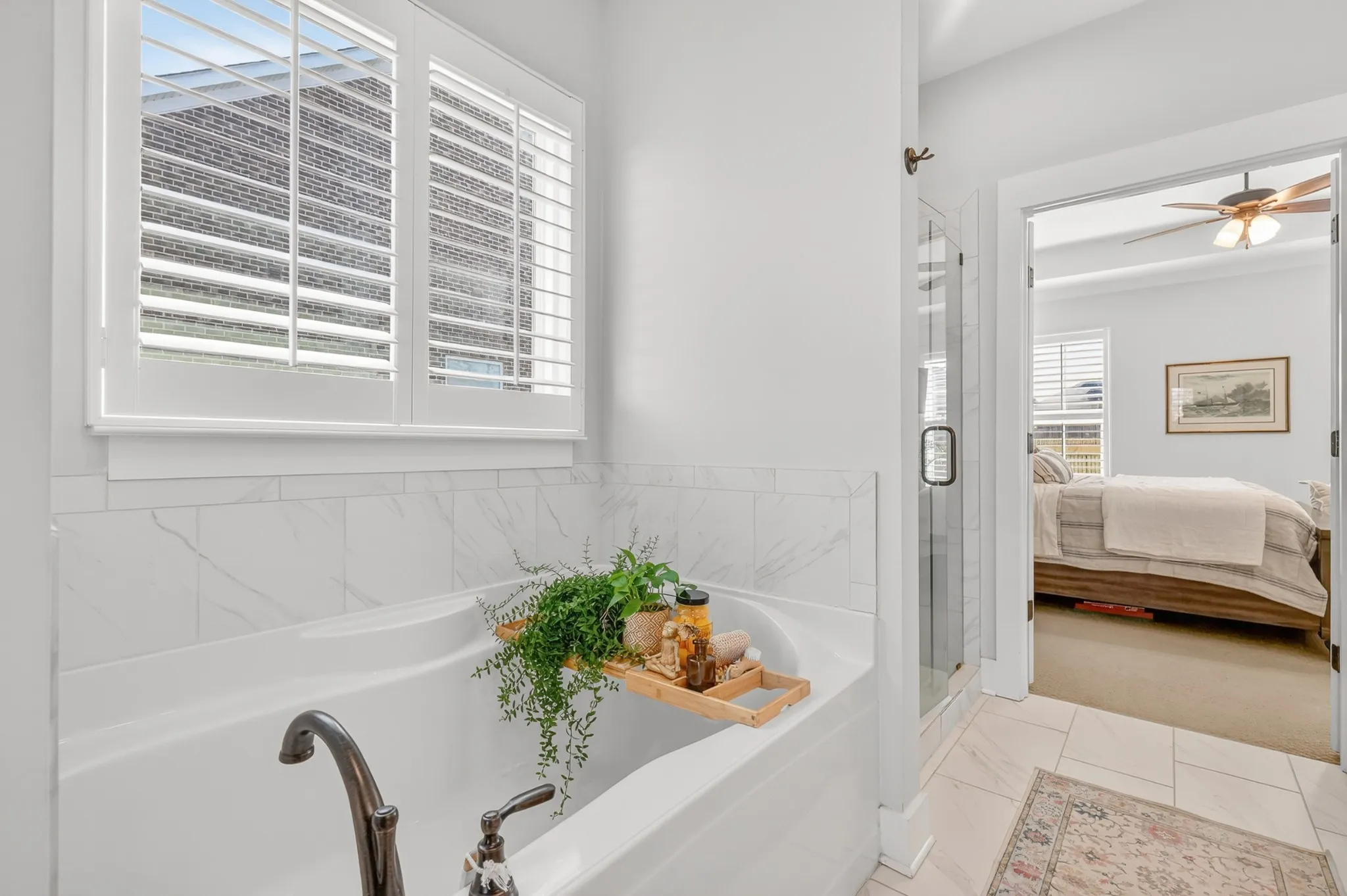 The kitchen showcases bright white countertops, an oversized pantry, and convenient access to the backyard and laundry room. The primary suite is located on the main level and features a soaking tub and separate stand-up shower for a spa-like retreat. Upstairs, you’ll find two well-sized bedrooms and a large open bonus room—ideal for a teen hangout, media room, or additional living space.