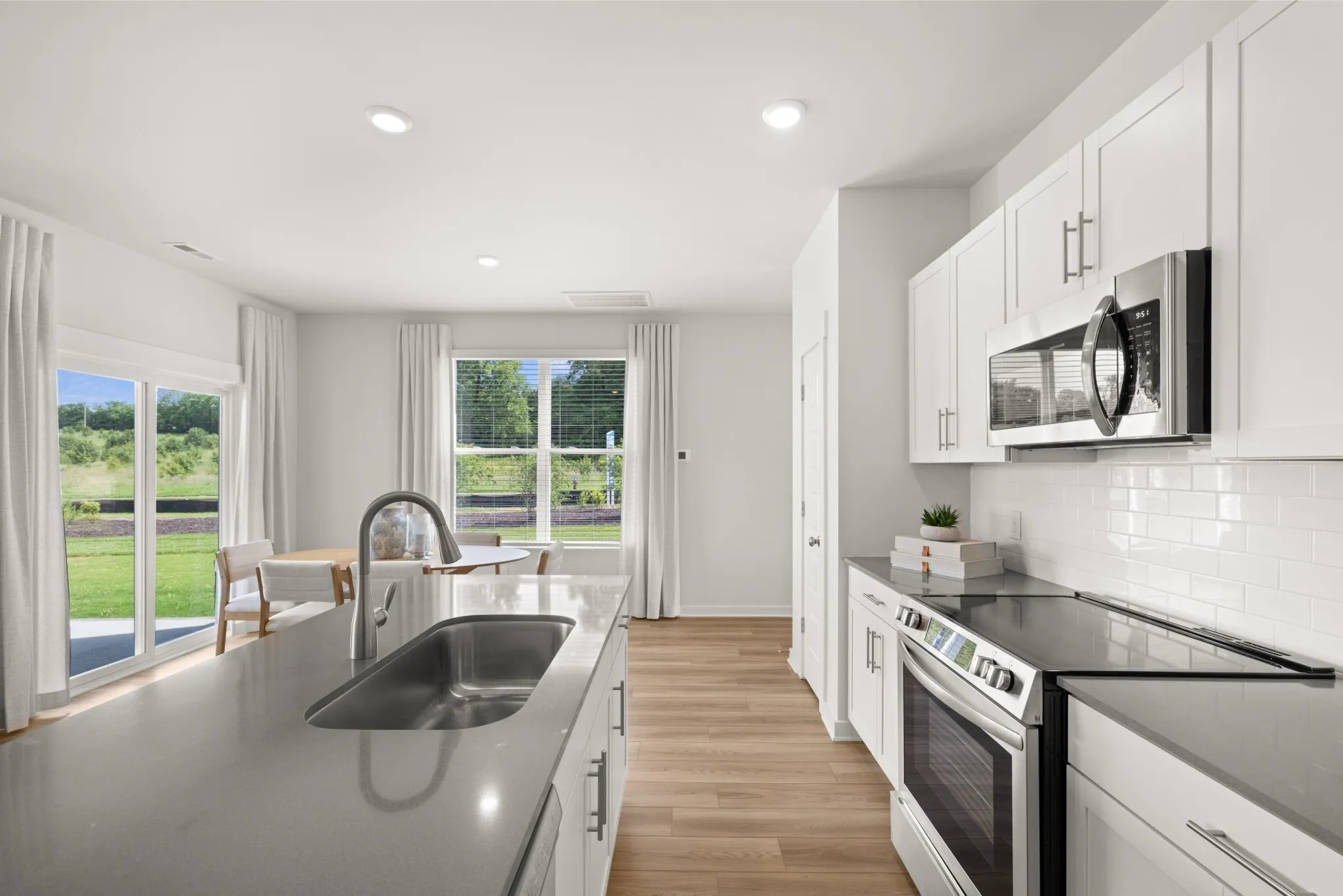 This new two-story townhome design combines comfort and style. The first floor features an open-concept layout connecting a living room for shared moments, a dining room for memorable meals and a kitchen for inspired cooks. Nearby sliding glass doors provide access to a covered patio for outdoor enjoyment. On the second floor, two secondary bedrooms and a spacious owner’s suite with a luxe bathroom and large walk-in closet provide restful retreats for family members and overnight guests. *Images from a furnished model of this home. Actual configuration and features may vary.