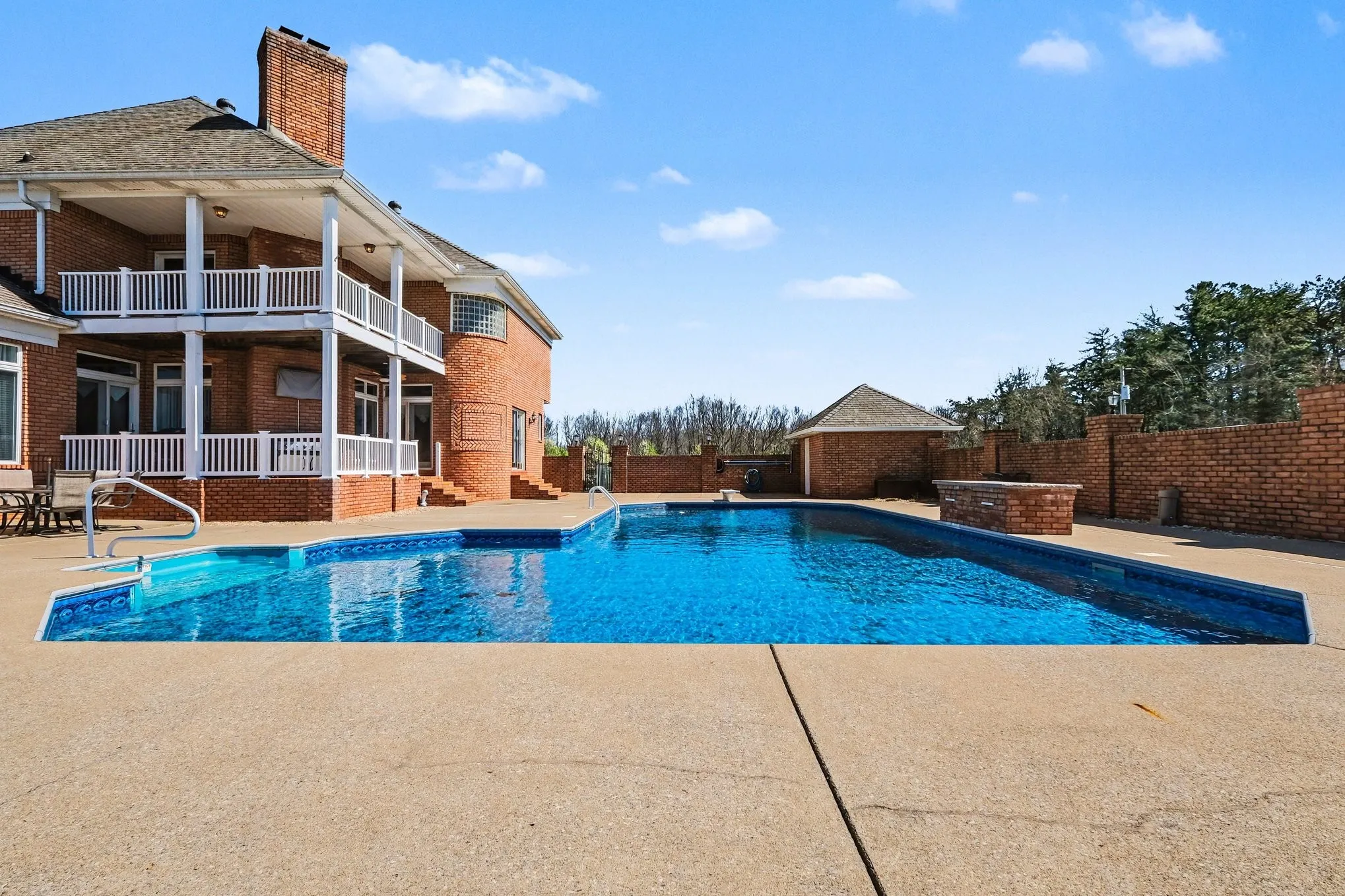 The backyard features a 49,000-gallon commercial-size in-ground pool with waterfall feature, expansive patio space, and a pool house complete with a half bath. Inside, the spacious chef’s kitchen showcases custom cabinetry, abundant counter space, and a walk-in pantry. The thoughtfully designed floor plan includes 4 bedrooms, each with its own private ensuite bath, including two true primary suites — one on the main level and one upstairs. Two massive bonus rooms on opposite sides of the home provide flexibility for recreation, home office space, gym, or media rooms. Gorgeous crown molding, baseboards, hardwood flooring, and a spacious 3-car garage add both elegance and function. 60×40 outbuilding/shop with electricity (plus 12×60 lean-to) — complete with a 9,000 lb automotive lift and dedicated man cave space with a wood-burning stove. Additional features include a storm shelter. Enjoy privacy while still being conveniently located near major highways for easy access to surrounding areas.