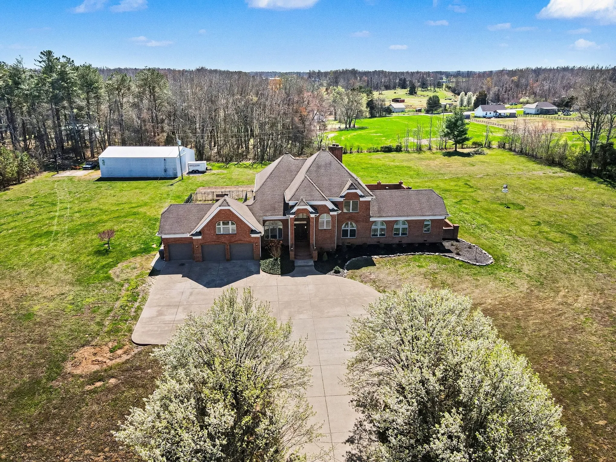 Custom-built home offering space, privacy, and endless opportunity to grow! An incredible tree-lined driveway welcomes you home to over 9 acres of flat, usable land and a stunning brick residence. Seller is offering $6,000 carpet allowance + $5,000 paint allowance in credits!