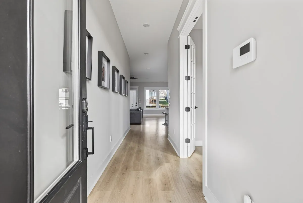 ONLY 3 STEPS FROM GARAGE TO HOUSE! Welcome to a beautifully designed home in Annecy, showcasing extensive custom upgrades and elevated finishes throughout! Built with durable 2×6 exterior walls, this home offers upgraded quality and everyday comfort. The open layout features laminate wood floors throughout, quartz countertops with a waterfall island, an upgraded gas cooktop, a wood vent hood, and double ovens. The home comes equipped with a fully integrated smart-home ecosystem, including keyless entry, cameras, monitored security, a smart thermostat, intelligent garage control, and a Ring doorbell. A whole-home audio package includes in-ceiling speakers plus Sonos zones in the kitchen, flex room, and the extended back deck. Outdoor living features a covered deck, exterior speakers, additional lighting, and a fully fenced backyard. Extra upgrades include a tankless water heater, EV-ready outlet, enhanced low-voltage wiring for high-speed internet, and premium lighting and tile choices. Located in a sought-after community with a pool, clubhouse, playground, and dog park.