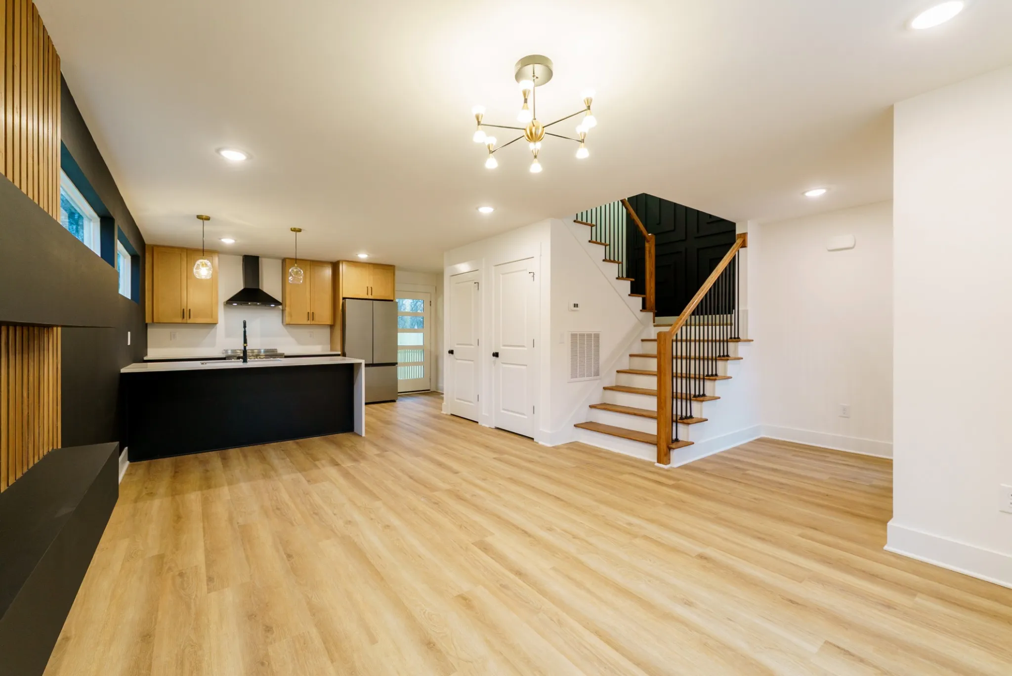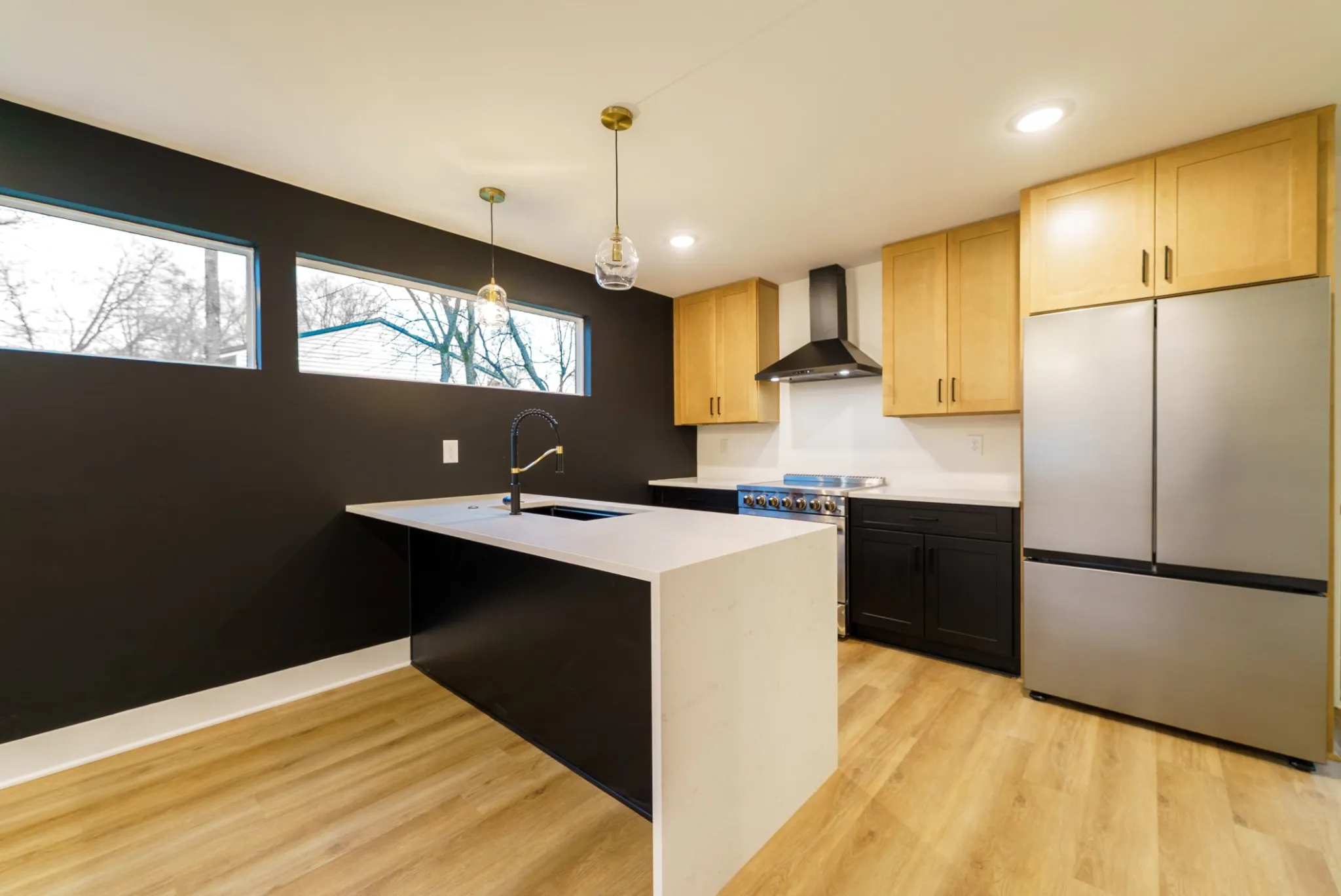 Inside, you’ll find luxury details throughout, highlighted by quartz countertops, a statement waterfall island, and a full stainless steel appliances, ideal for both everyday living and entertaining.
