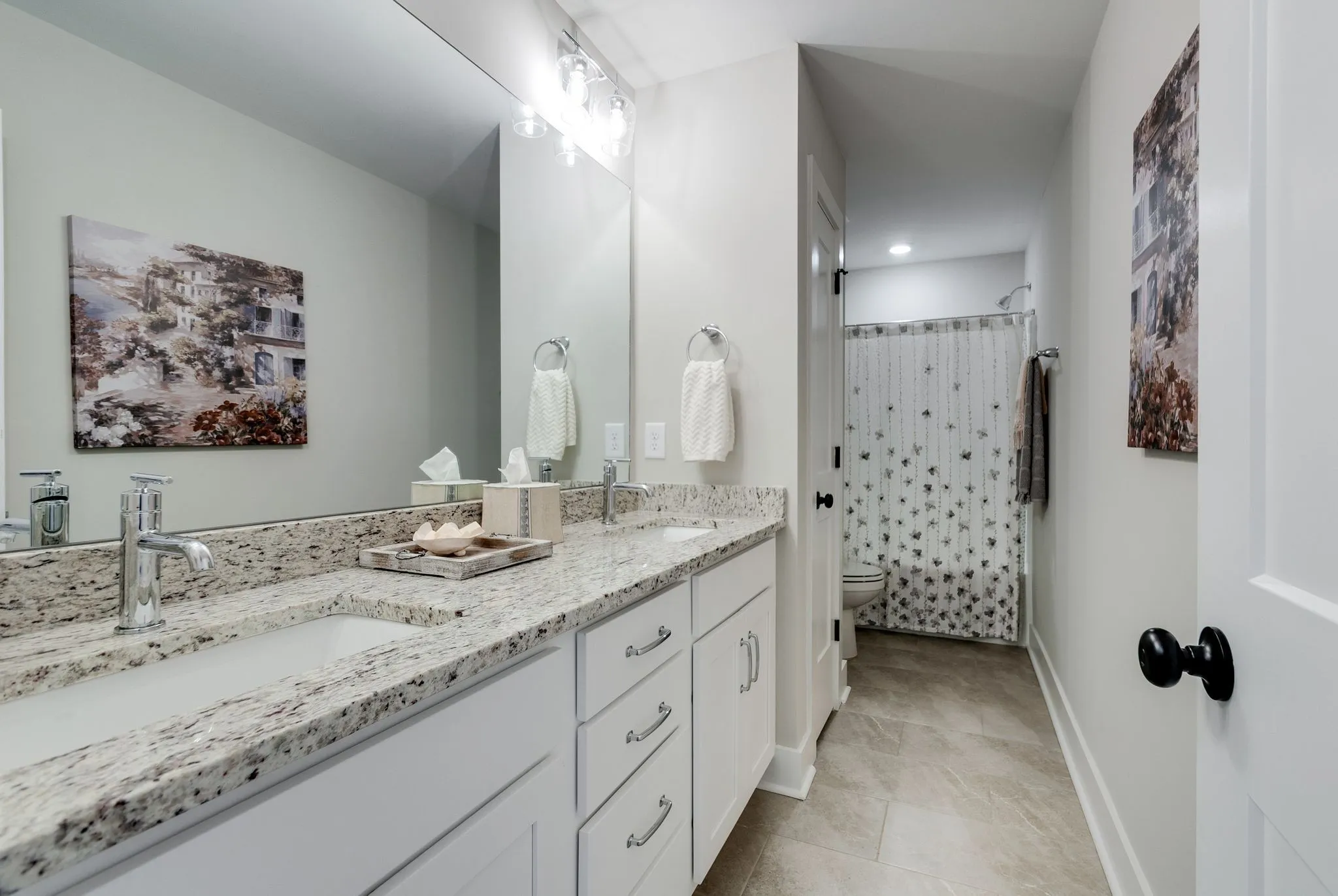 Step inside an inviting open-concept floorplan. The main level hosts a luxurious primary suite, a true sanctuary featuring an en suite bath with double sinks, granite counters, a spacious luxury shower, and an oversized walk-in closet. A versatile second bedroom or office is also conveniently located on the main floor.