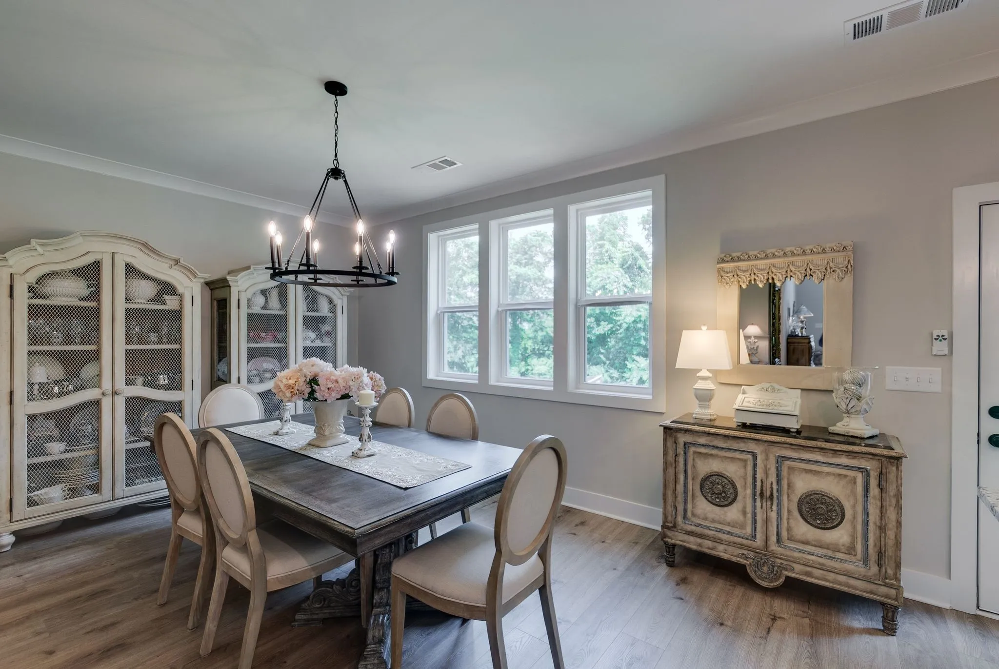 Upstairs, a large and bright family retreat offers additional flexible living space. Practicality meets convenience with the included washer, dryer, and French door refrigerator.