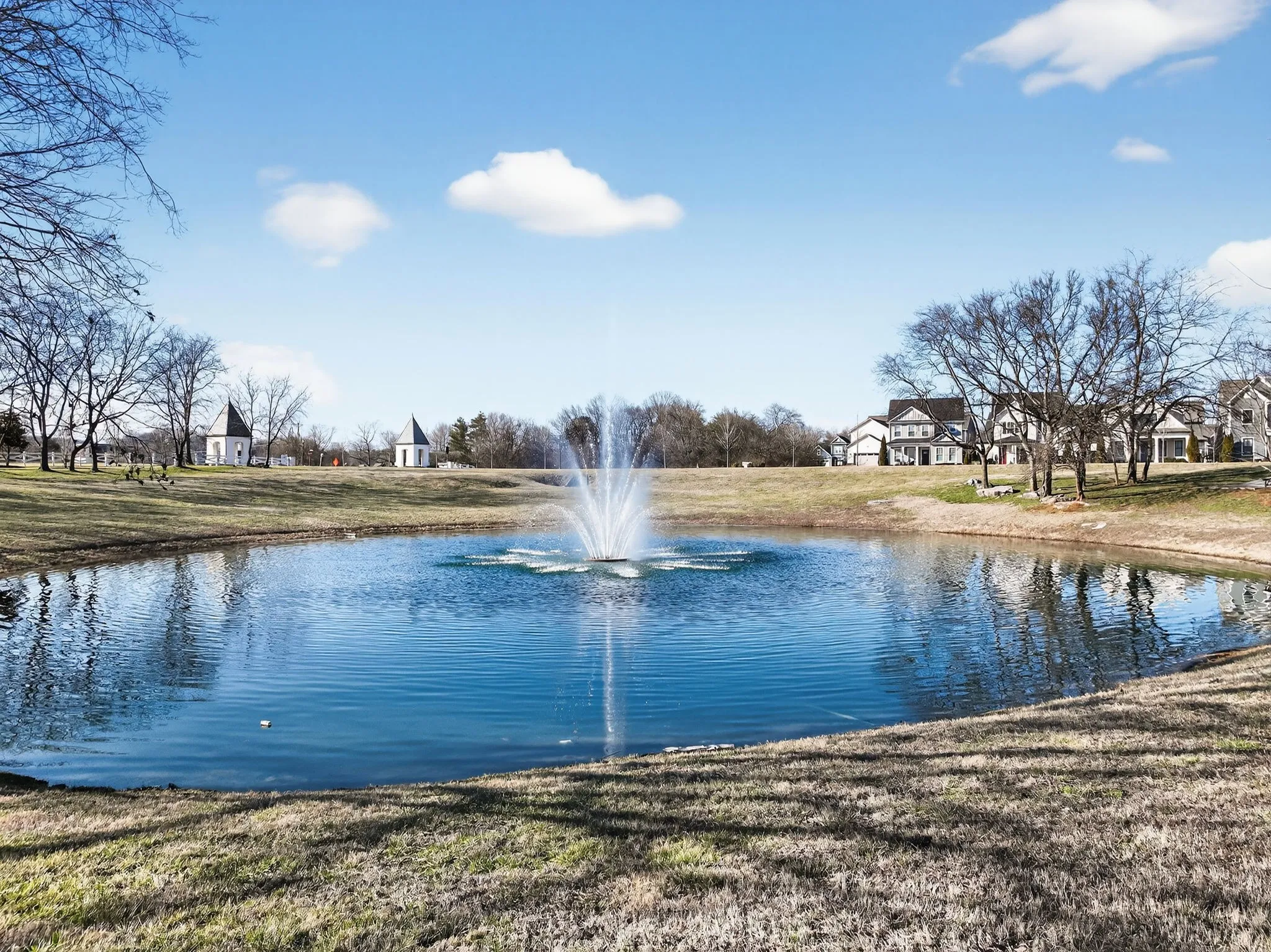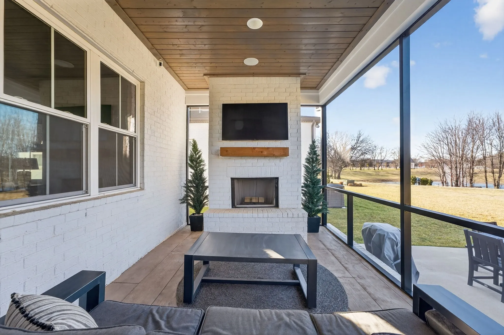 Best pond view in Shelton Square! Enjoy wildlife, mature trees, and peaceful water views from your custom screened-in patio with wood-burning fireplace. Lawn has full irrigation system and is maintained by the HOA.