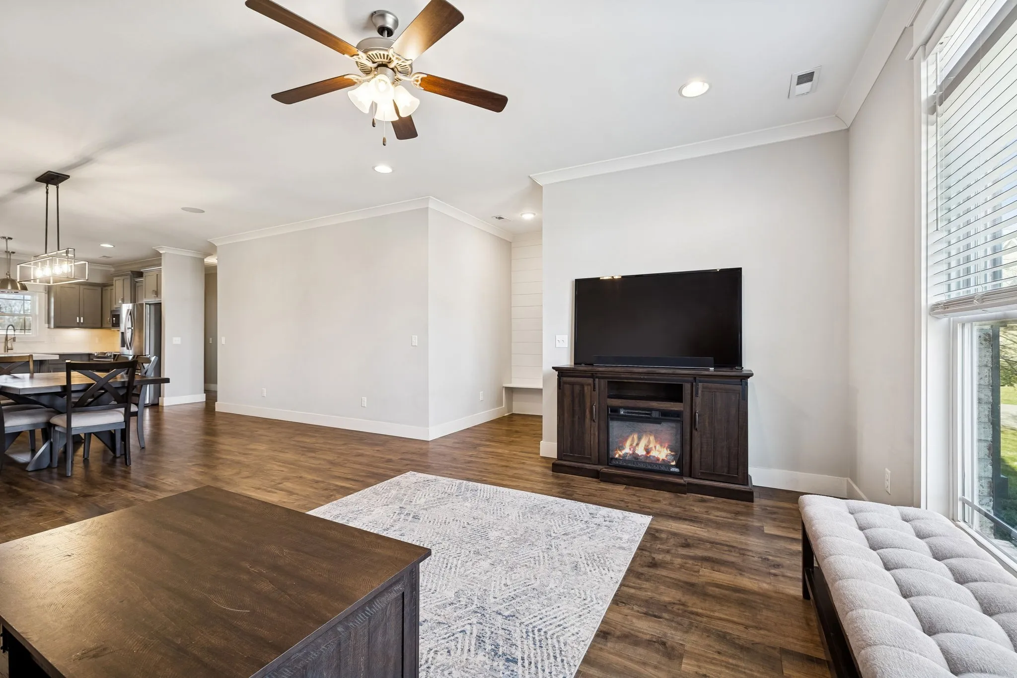 Designed with space in mind, this home features a wide-open kitchen, dining, and living area that flows effortlessly for gatherings or everyday living. The kitchen is built to handle real life and real entertaining, complete with quartz countertops, double ovens, generous prep space, and a layout that keeps everyone connected.