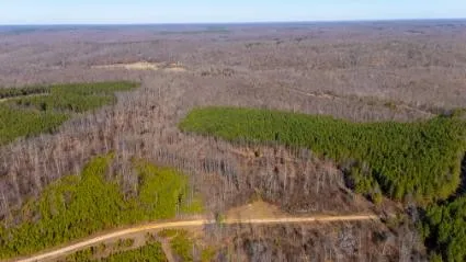 Timber across the tract includes a mix of planted pine, mast-producing hardwoods, and softwood species, with select-cut sections providing thick bedding cover and security habitat. These select-cut areas have regenerated into early successional growth, producing dense cover, abundant browse, and excellent nesting and fawning habitat that significantly enhances the property’s appeal for deer, turkey, and other wildlife. An established internal trail system and gravel access roads allow easy access throughout the property. Abundant deer sign indicates a healthy wildlife population and consistent game activity.