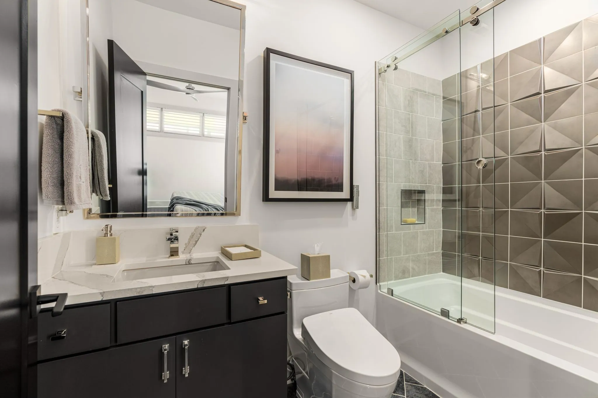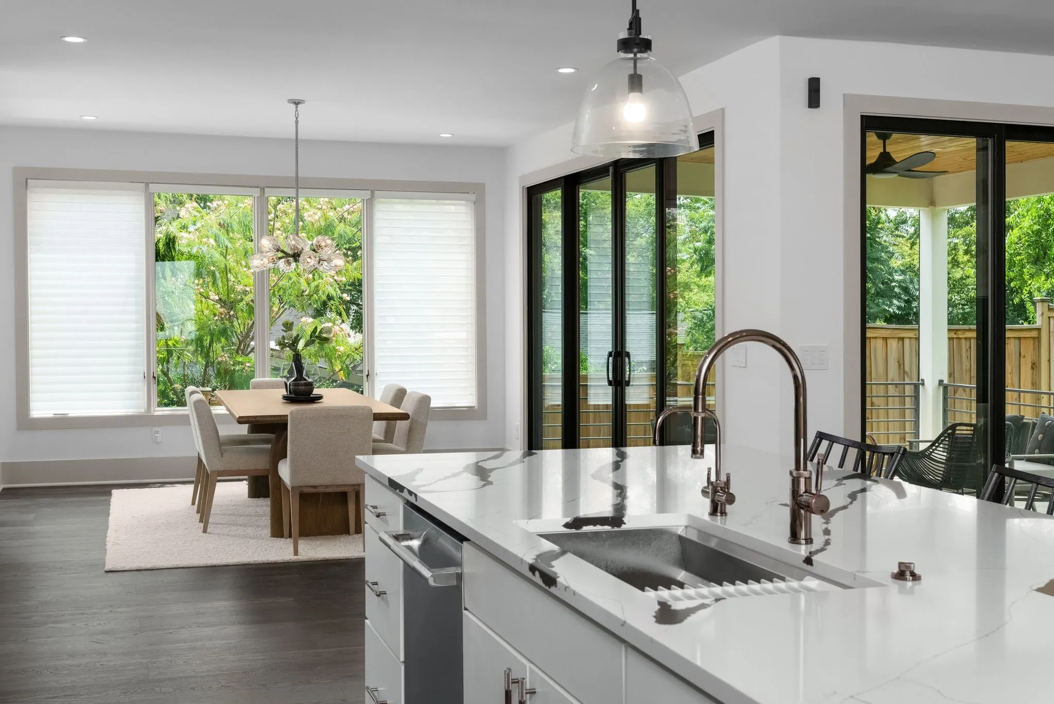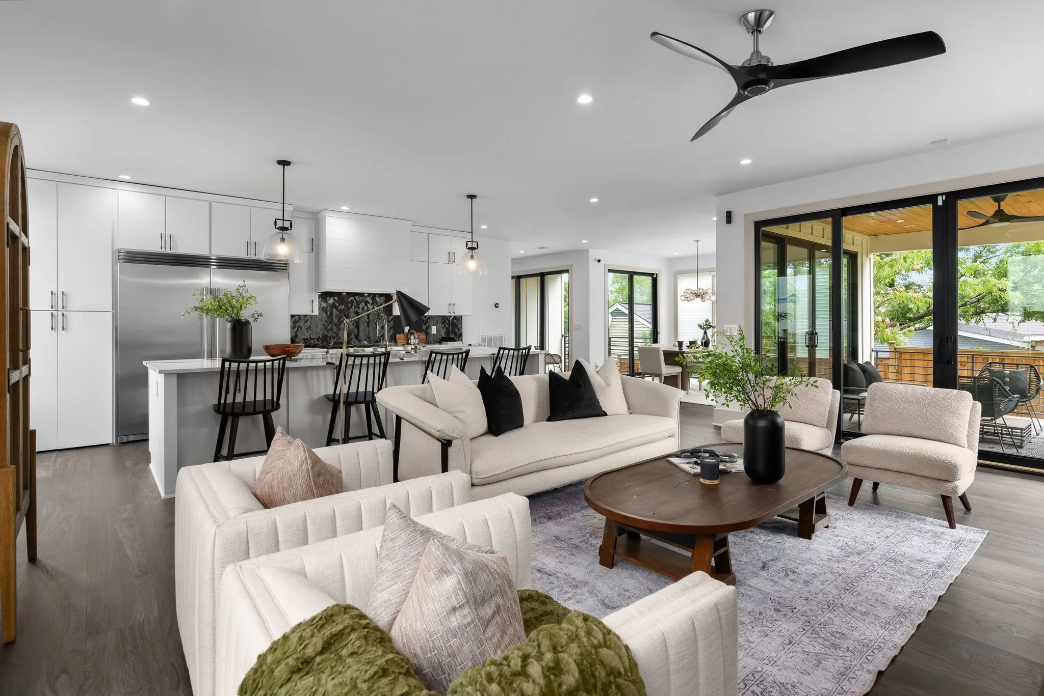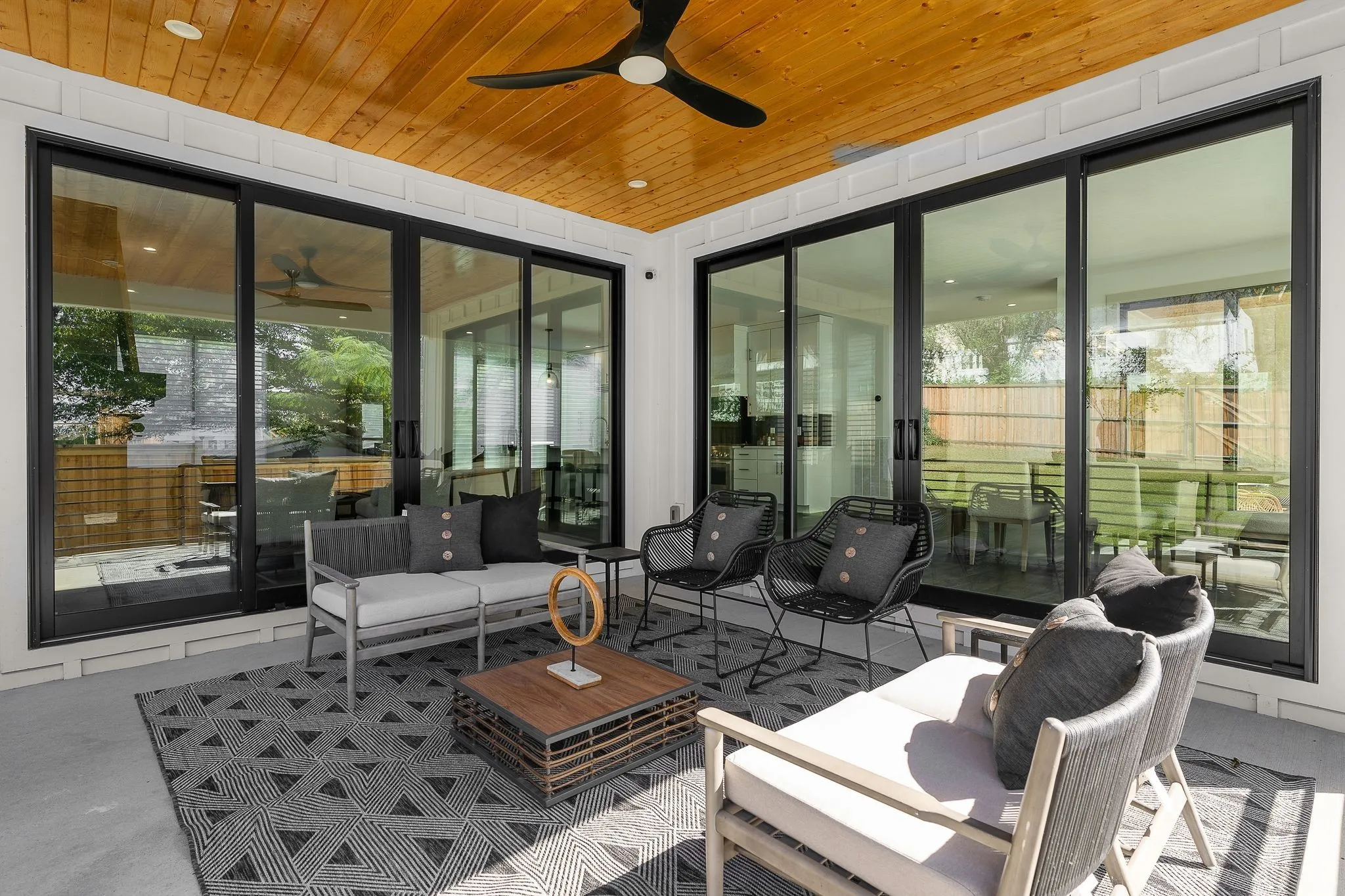 Check out this exceptional modern dwelling nestled in the sought-after Sylvan Heights neighborhood! Perfect for hosting gatherings, it boasts two spacious living areas and a grand gourmet kitchen equipped with a central island, sleek quartz countertops, premium stainless steel appliances, and a convenient walk-in pantry. Flooded with natural light thanks to numerous Pella windows, a sliding glass door, and a chic glass front entrance, this home exudes warmth and sophistication. The primary suite feels like a personal retreat, featuring a spa-like en-suite bath, a sizable walk-in closet, and a private sunroom offering serene views of the picturesque backyard. With stunning custom tile work, elegant lighting fixtures, and top-notch fittings throughout, every corner of this home radiates luxury. Outdoor living is a breeze with two covered porches on the main floor and a spacious astroturfed backyard, perfect for leisure and play. Plus, rest easy with a whole-home security system.