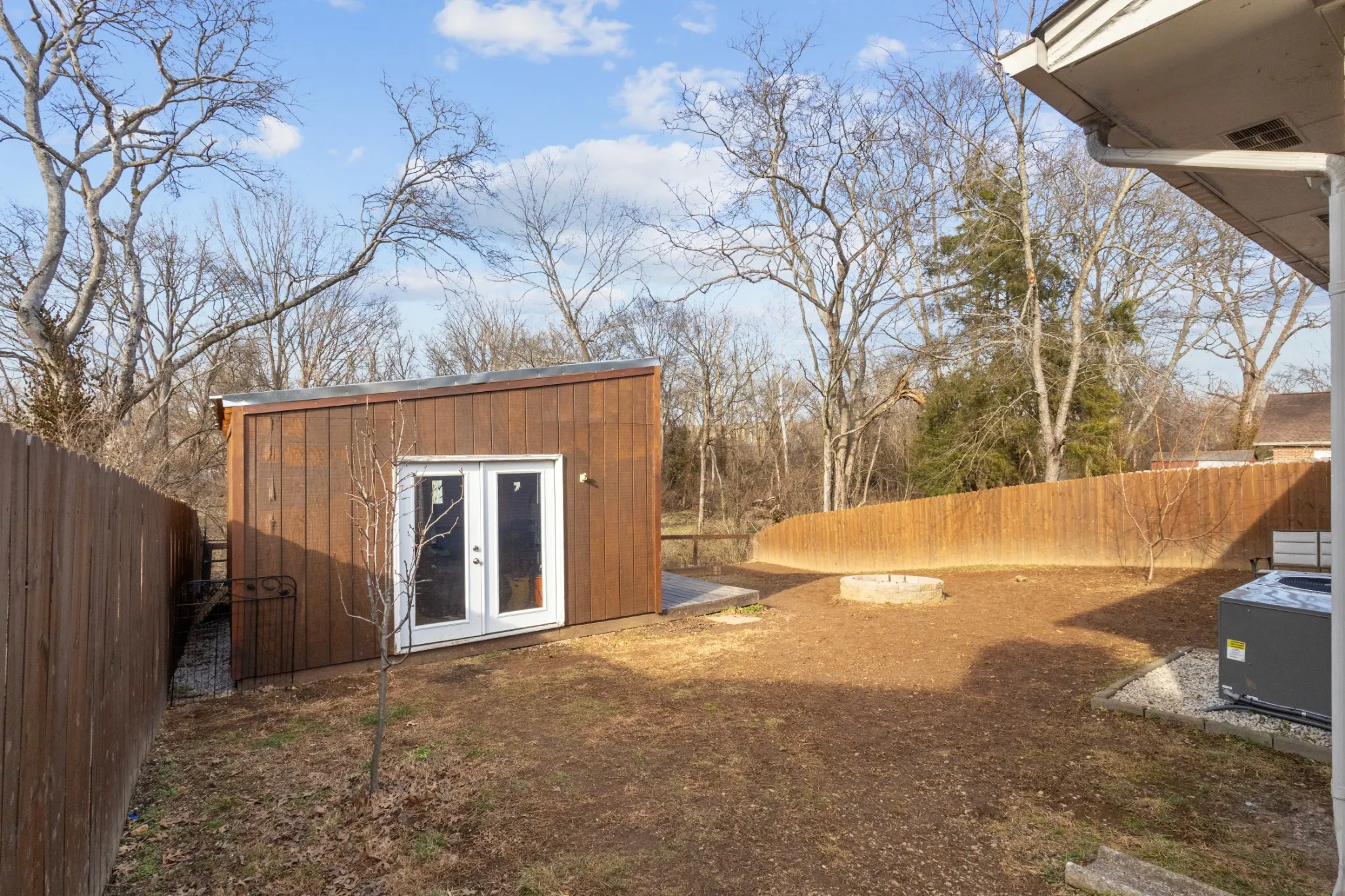 The thoughtfully updated kitchen features stainless steel appliances, while upgraded electrical and HVAC systems provide effortless peace of mind. Outdoors, a fully fenced setting creates a serene sanctuary framed by tranquil views of mature fruit trees (pear, peach) and a picturesque dry creek. A remarkable and spacious detached storage space with a wraparound porch offers endless possibilities as an inspiring fitness space, art studio, storage space, or elegant retreat. Washer and dryer remain for turnkey convenience.