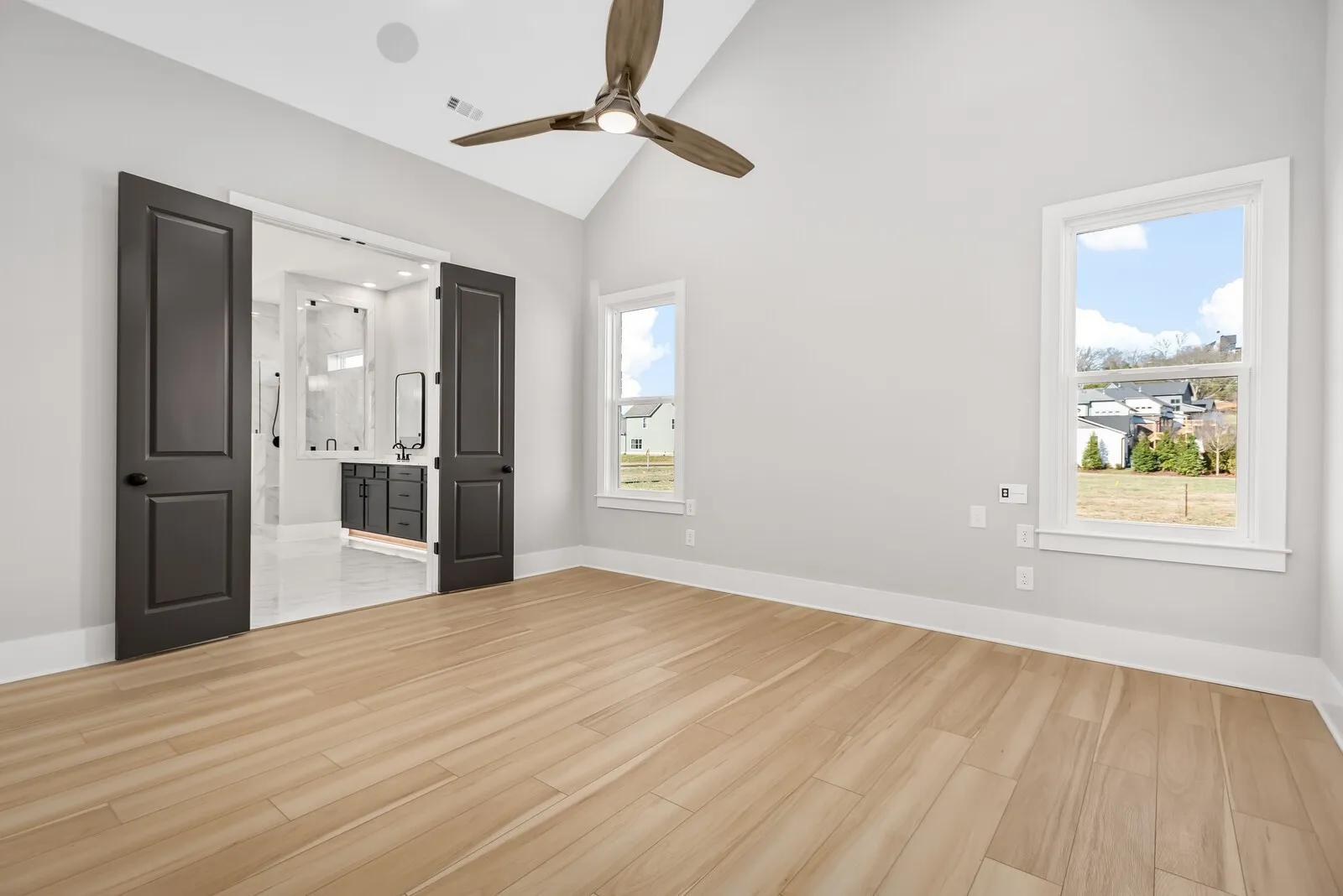 Welcome to this stunning new construction home in an excellent location, offering modern living at its finest. Step inside to find engineered wood floors through out, adding warmth and elegance to every room (with the exception of 1 BR). The beautiful 2 storey Living Room creates an airy spacious atmosphere, while large upgraded black frame windows flood the home with natural light. A large open Den ooffers even more space to relax or work from home. Every BR has an attached Bath, & 4 out of 5 bedrooms have large walk in closets.The open floor plan is perfect for entertaining and the chefs pantry and deluxe Laundry room provide convenience and luxury. Outside enjoy access to scenic walking trails, and top tier resort style amenities, including a sparkling pool, a state of the art fitness center and a welcoming clubhouse.This is more than just a home – it’s a lifestyle.Gorgeous Chandeliers were installed in the Foyer and Stairwell post close. Home is wired for security, has 4 exterior camera connections, and the internet connection is in place.This home is move in ready and very well priced for the area. Fridge, Washer & Dryer are included.