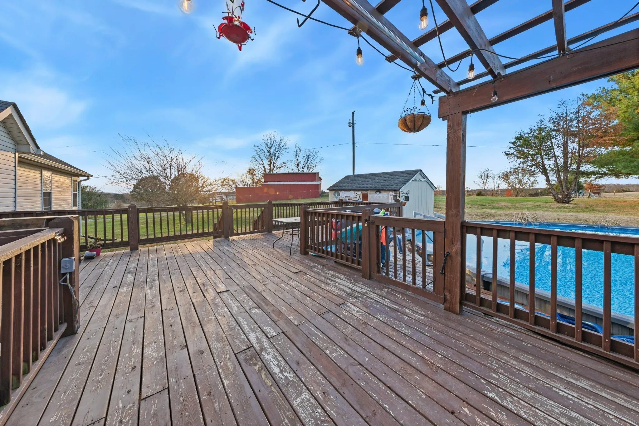 The living room includes a fireplace, and the backyard is designed for entertaining with a pool, hot tub, and spacious deck overlooking the property. No HOA and no restrictions, bring your animals and let them roam.