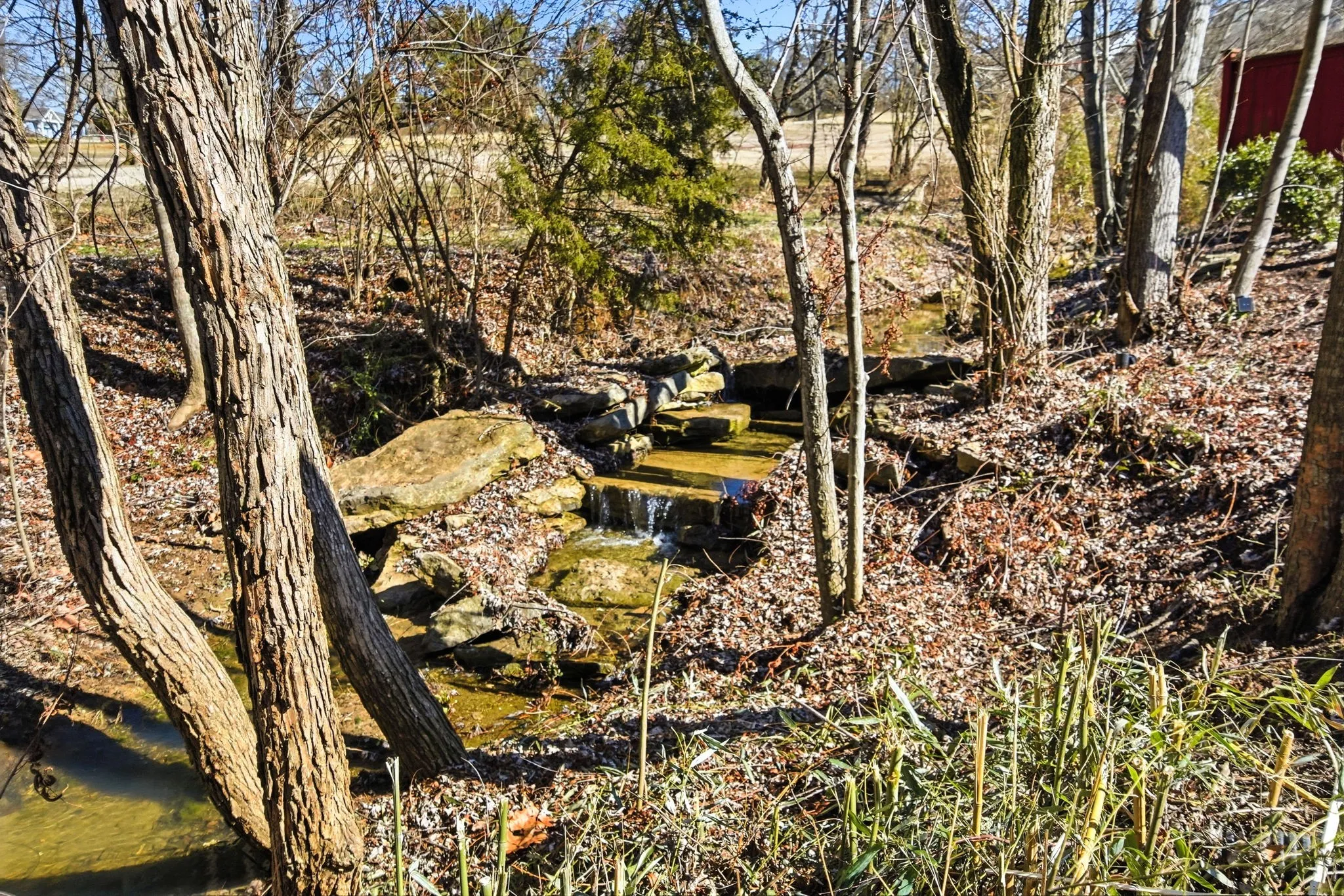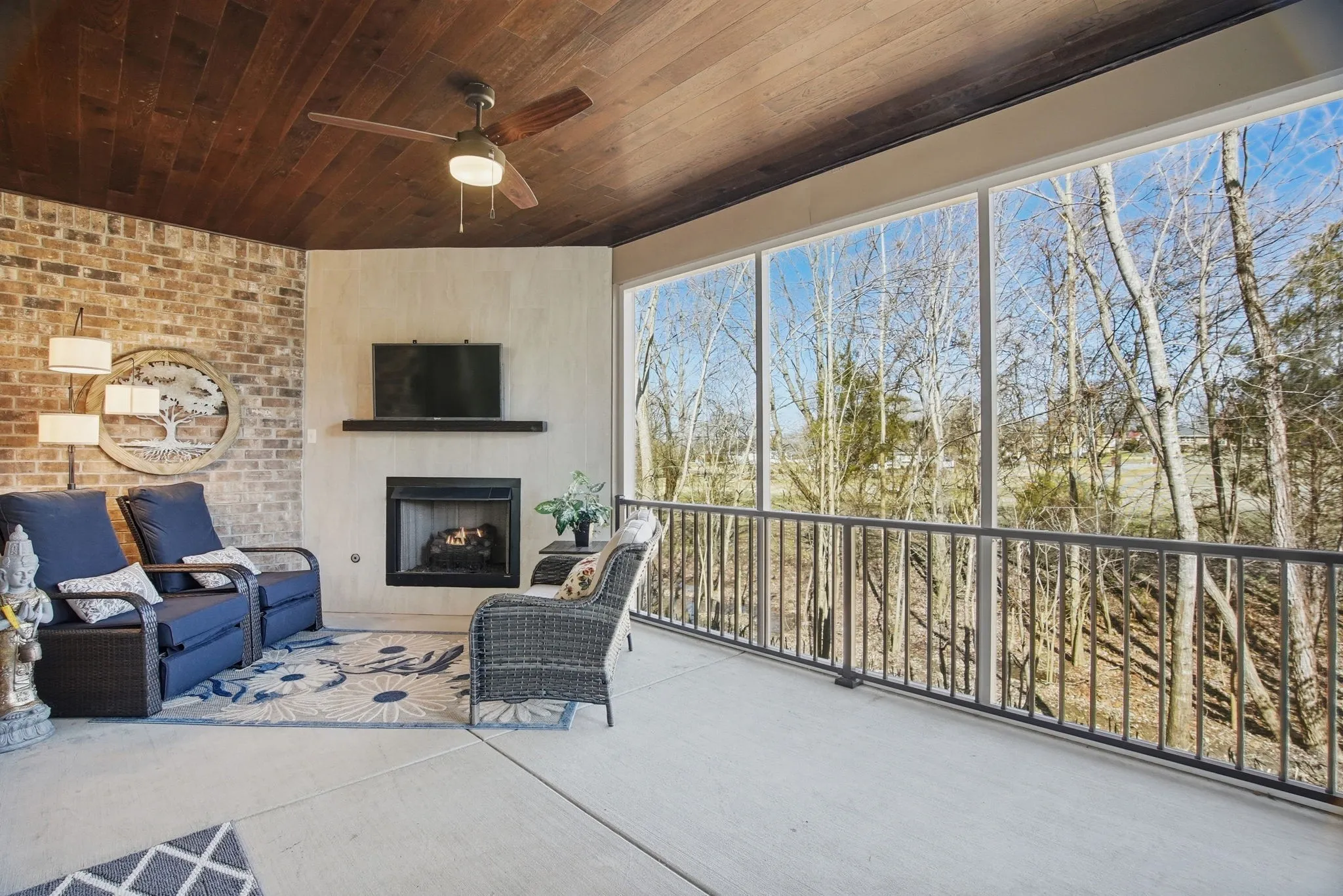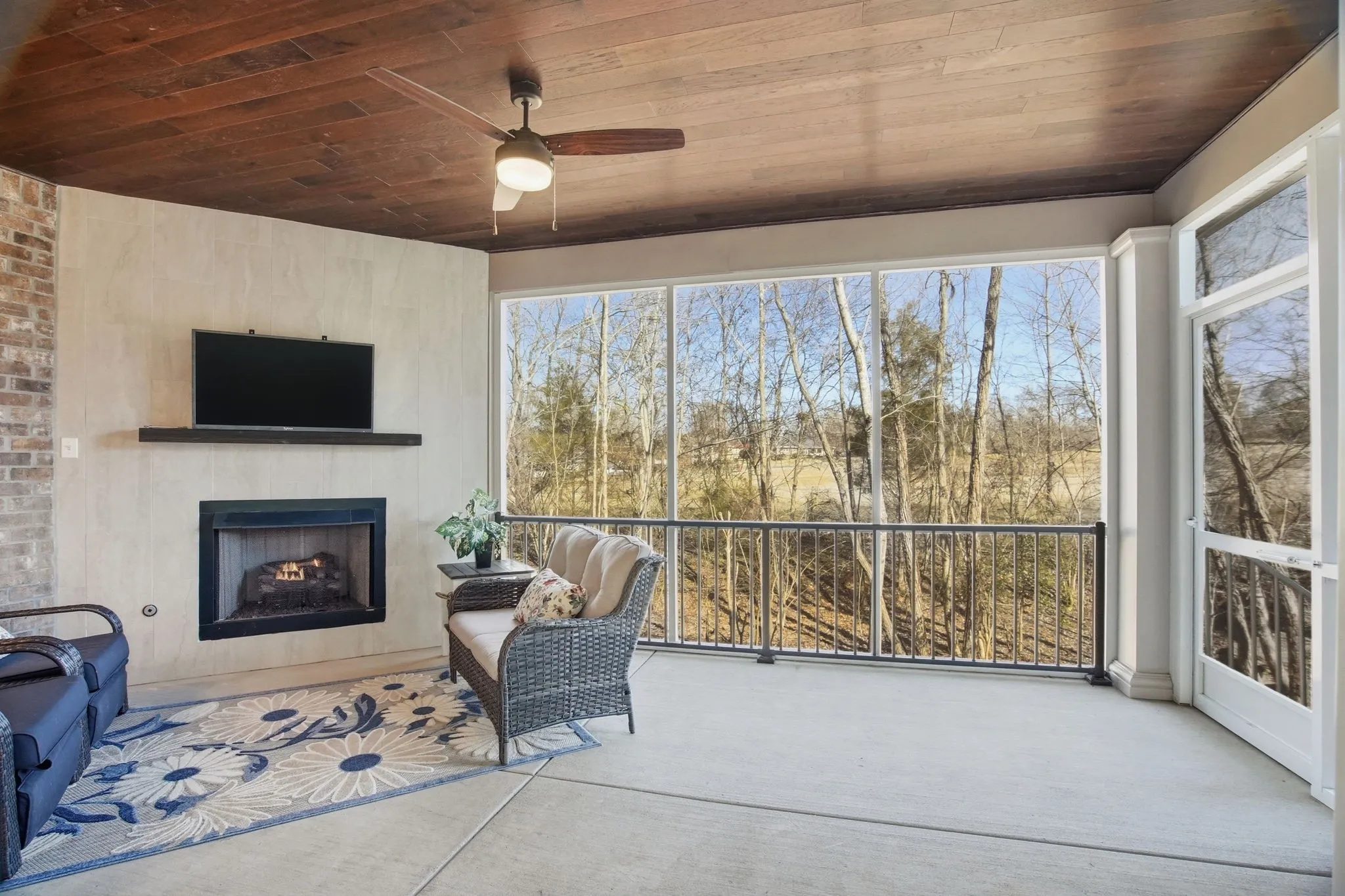 A standout feature is the screened‑in porch with its own gas fireplace — a true year‑round living space. It overlooks a tree‑lined yard with a creek and a newly coated patio. It’s an easy place to unwind, whether you’re listening to crickets at night or enjoying the fireplace on cooler evenings. With no houses behind you, privacy comes naturally.