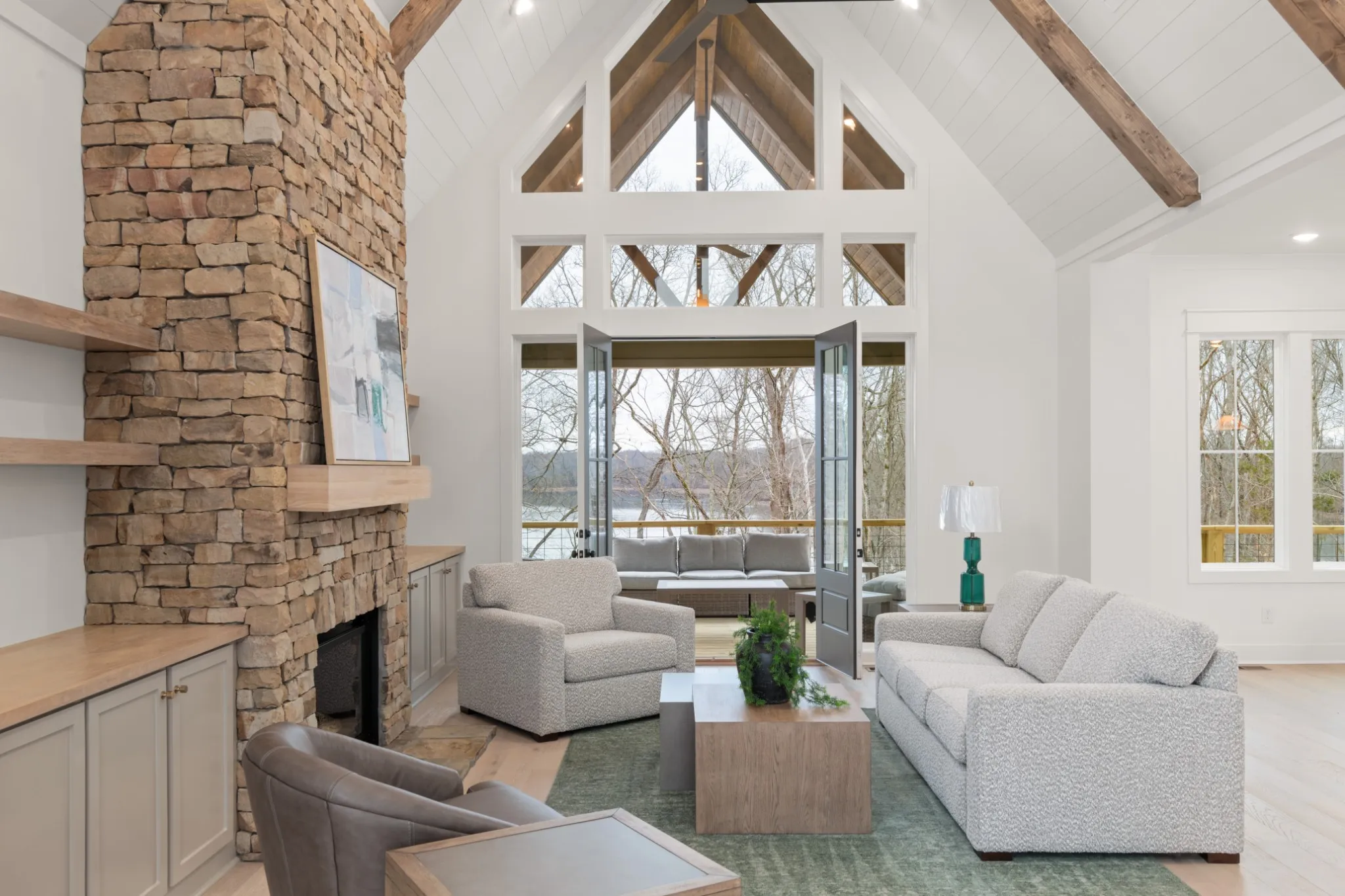 This stunning newly built 4-bedroom, 3.5-bath home in Fanning Bend on Timms Ford Lake blends modern comfort with timeless craftsmanship and breathtaking surroundings. From the moment you arrive, the striking exterior and inviting covered entry set the tone for the quality and attention to detail found throughout. Inside, you’ll find an open-concept layout with soaring ceilings, exposed beams, and abundant natural light. The spacious living area flows seamlessly into a designer kitchen featuring a large center island, custom cabinetry, premium finishes, and stainless steel appliances—perfect for entertaining and everyday living. The primary suite offers a relaxing retreat with a spa-inspired bath and generous closet space, while additional bedrooms provide comfort and flexibility for family and guests. Thoughtfully designed with upscale finishes, ample storage, and modern conveniences, this home also offers easy access to the lake, making it ideal for boating, fishing, and outdoor enjoyment. A rare opportunity to own a brand-new home in one of Timms Ford Lake’s most desirable settings—luxury lake living at its finest. All home come with deeded boat slip at one of our private marinas