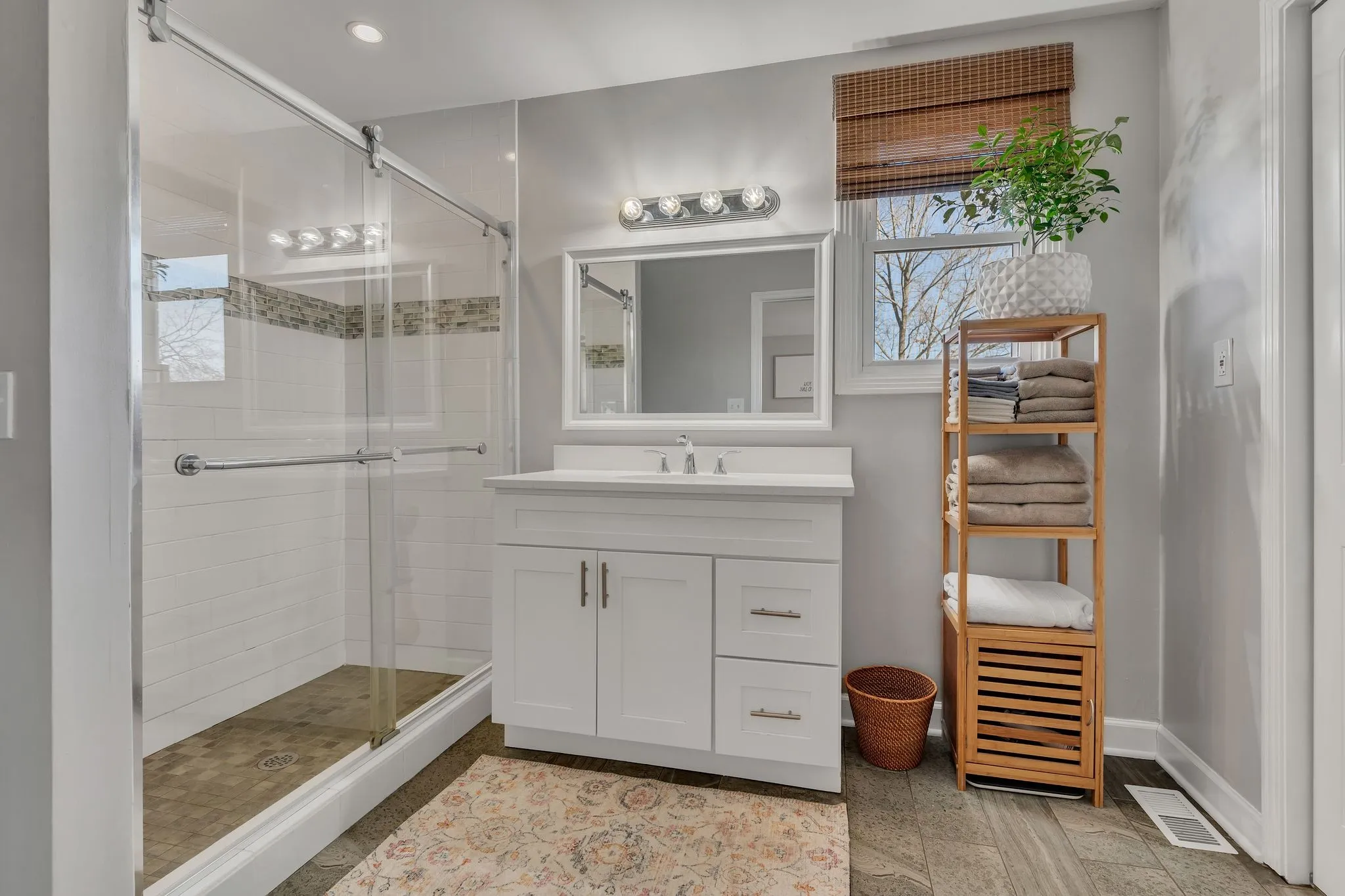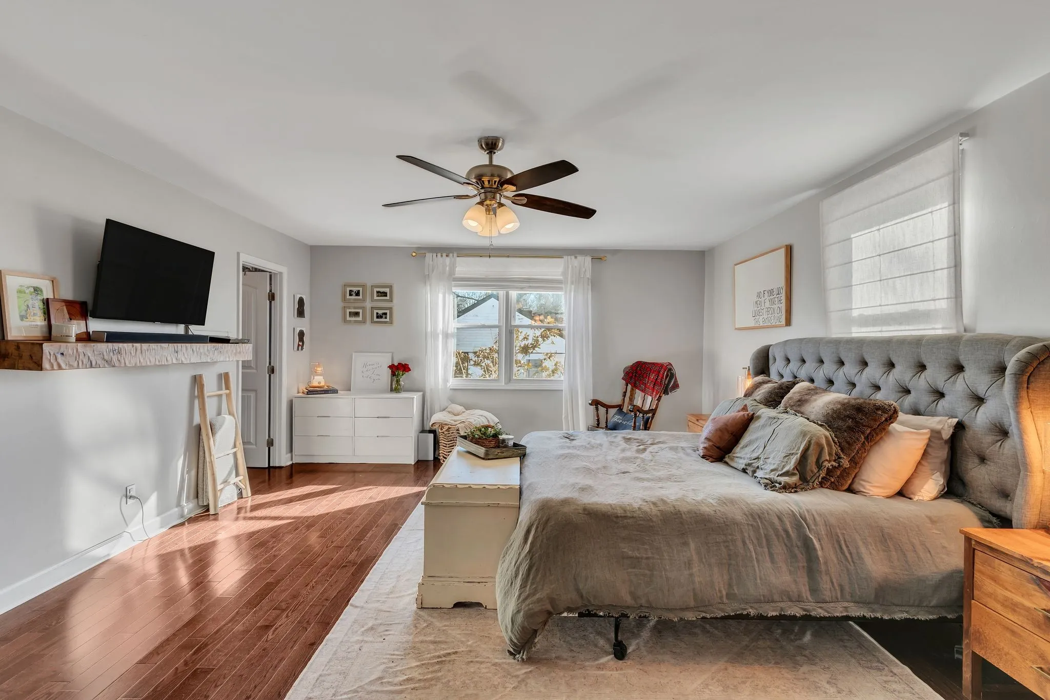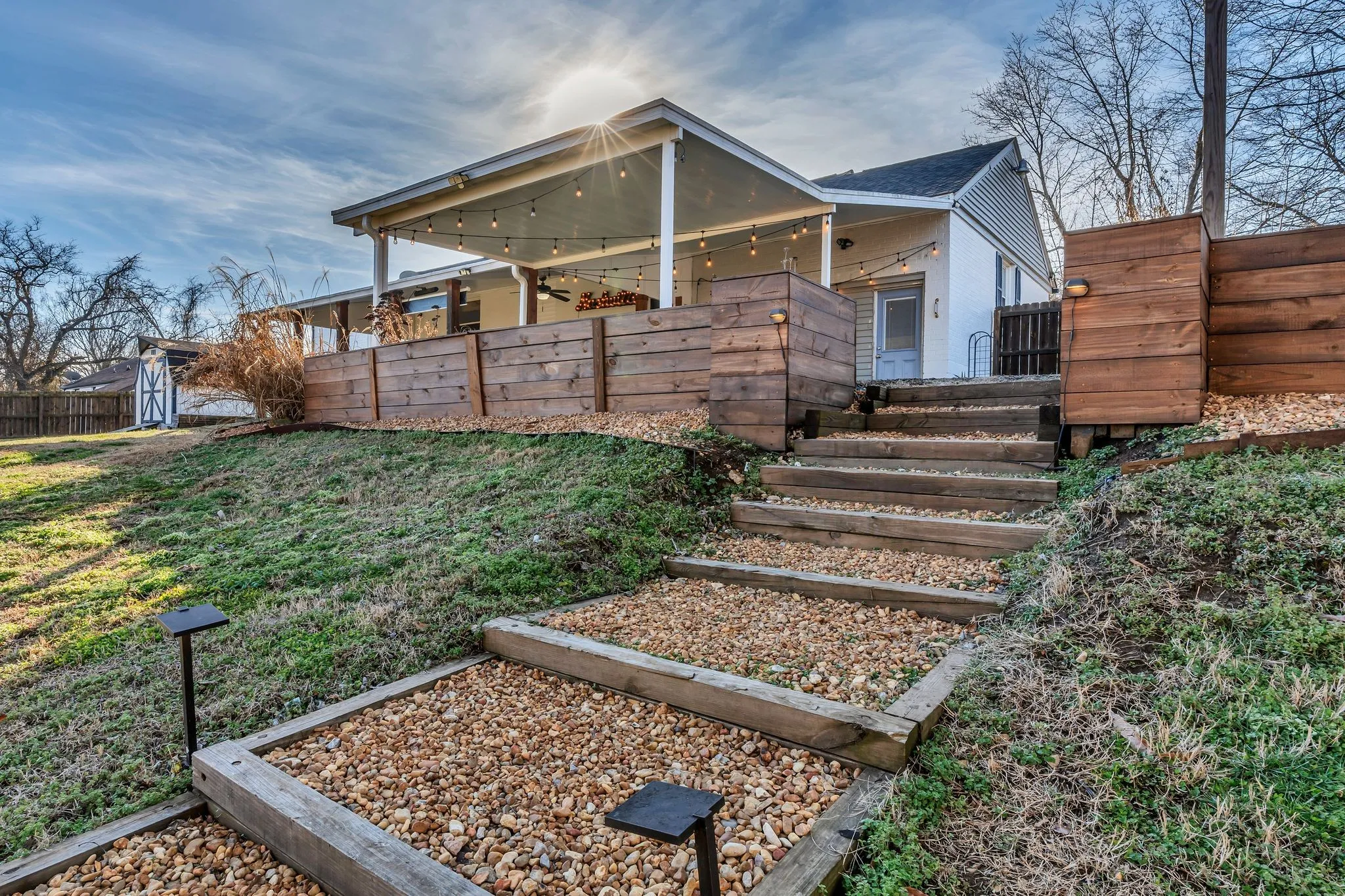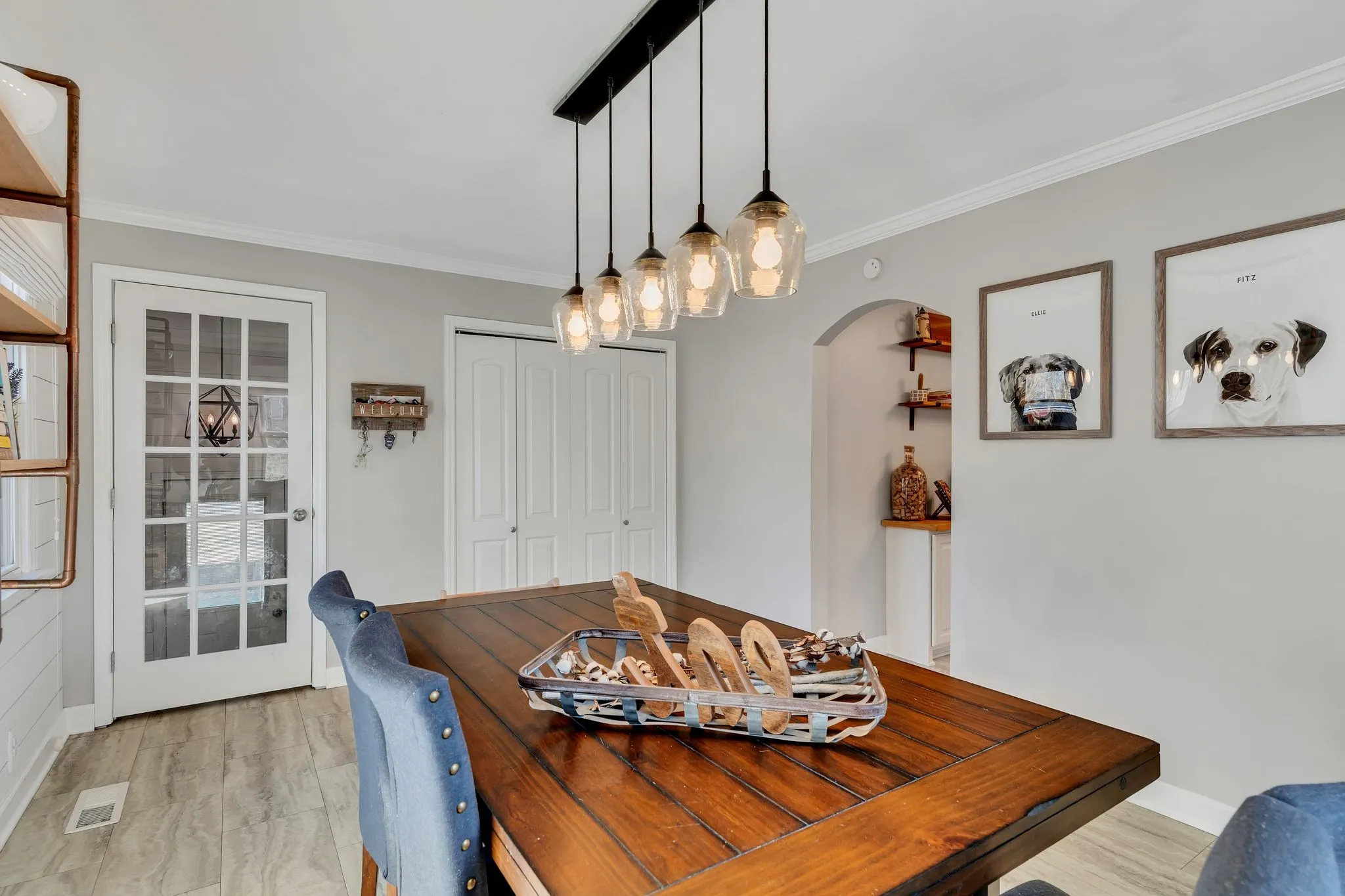 Welcome home to this stunning one-level ranch nestled on a spacious, tree-lined lot with a fully fenced backyard! From the charming rocking chair front porch, step inside to a large living room featuring beautiful hardwood floors and oversized windows that make the space light and bright. The kitchen showcases quartz countertops, stainless steel appliances, a coffee bar, and seamless flow into the dining room accented with stylish shiplap and updated lighting. The private owner’s retreat offers a walk-in closet complete with solid-surface shelving, a custom walk-in tile shower, and a large linen closet. Outside, you’ll find a covered back porch designed for entertaining, overlooking a park-like yard with planter boxes and a fire pit — perfect for gatherings, pets, or play. Storage building is included! This incredible location is just minutes from Nashville and convenient to shopping, dining, and entertainment. Don’t miss this must-see home!