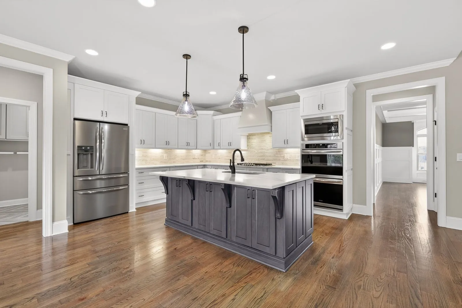 LUXURY MEETS AFFORDABILITY —Buyers receive $25,000 in concessions with acceptable offer to help lower the interest rate making a more affordable monthly payment or to help pay for Closing costs. This executive-style home in Thompsons Station is in the highly coveted Cherry Grove with easy access to I-65/840 and zoned for award-winning Williamson County schools. This newly painted home features quality crafted construction with coffered ceilings, board & batten, shiplap, taller crown & baseboard moldings, 3/4″ sand & finish hardwoods, primary suite on main level, home office, spacious room sizes, bonus room with wet bar, extra flex space for an exercise room/finished storage, an expansive kitchen with double ovens/quartz counters/island with storage/extra-large dedicated pantry room/undercabinet lighting, and large built-in mudroom with sink/cabinetry/laundry. The spacious great room with custom built-ins opens onto a fully enclosed year-round sunroom with a gas fireplace and private view of the backyard for even more living space and entertaining. The backyard offers an extended patio area for entertaining, a gas line for your grill hook-up, privacy from neighbors, and an irrigation system. The 3-car garage features an epoxy coating, EV charging plug, built-in shelving units, tankless water heater/instant hot water & T.V.
