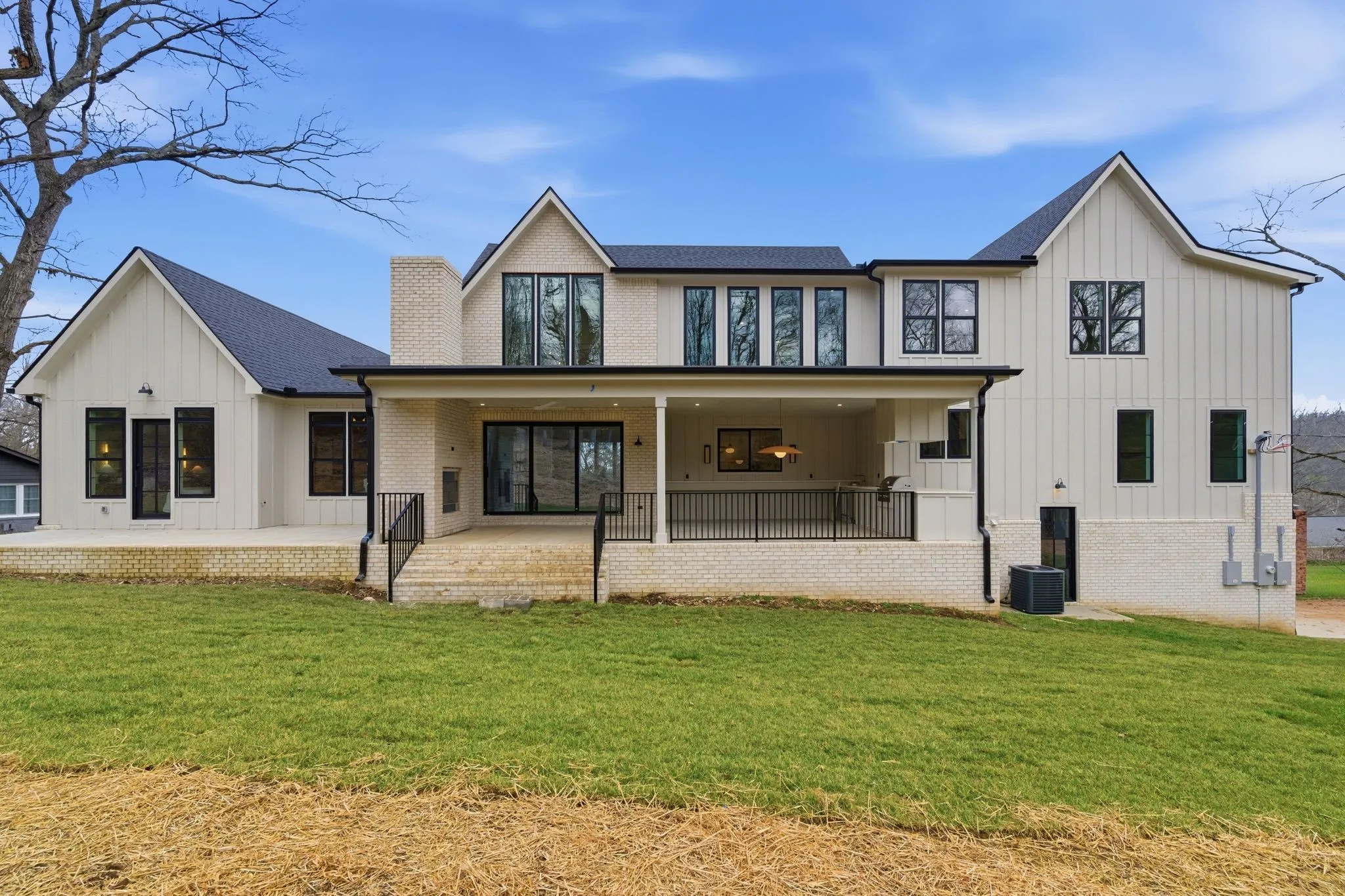 Outdoor living is elevated with a covered terrace complete with fireplace and custom outdoor kitchen, perfect for year-round entertaining. A vaulted three-car garage is designed to accommodate lifts for up to six vehicles. Slated for completion at the end of January, this is one of the most remarkable new estates available under three million.