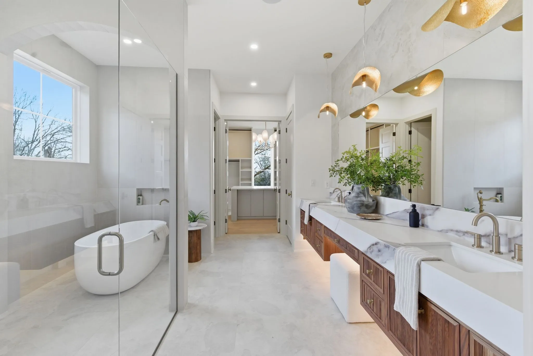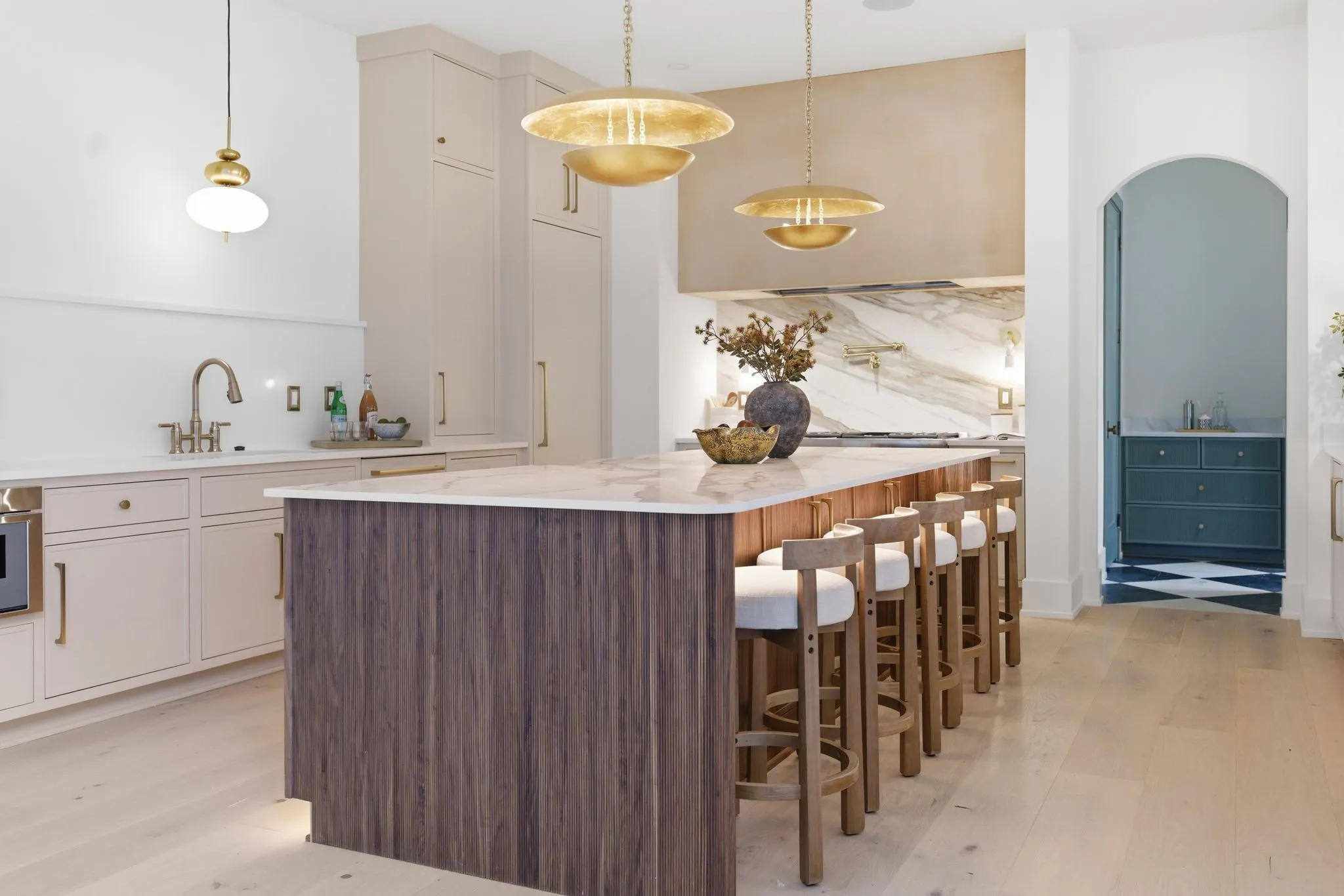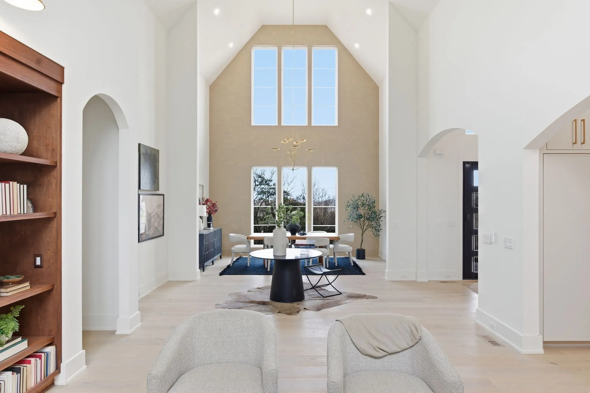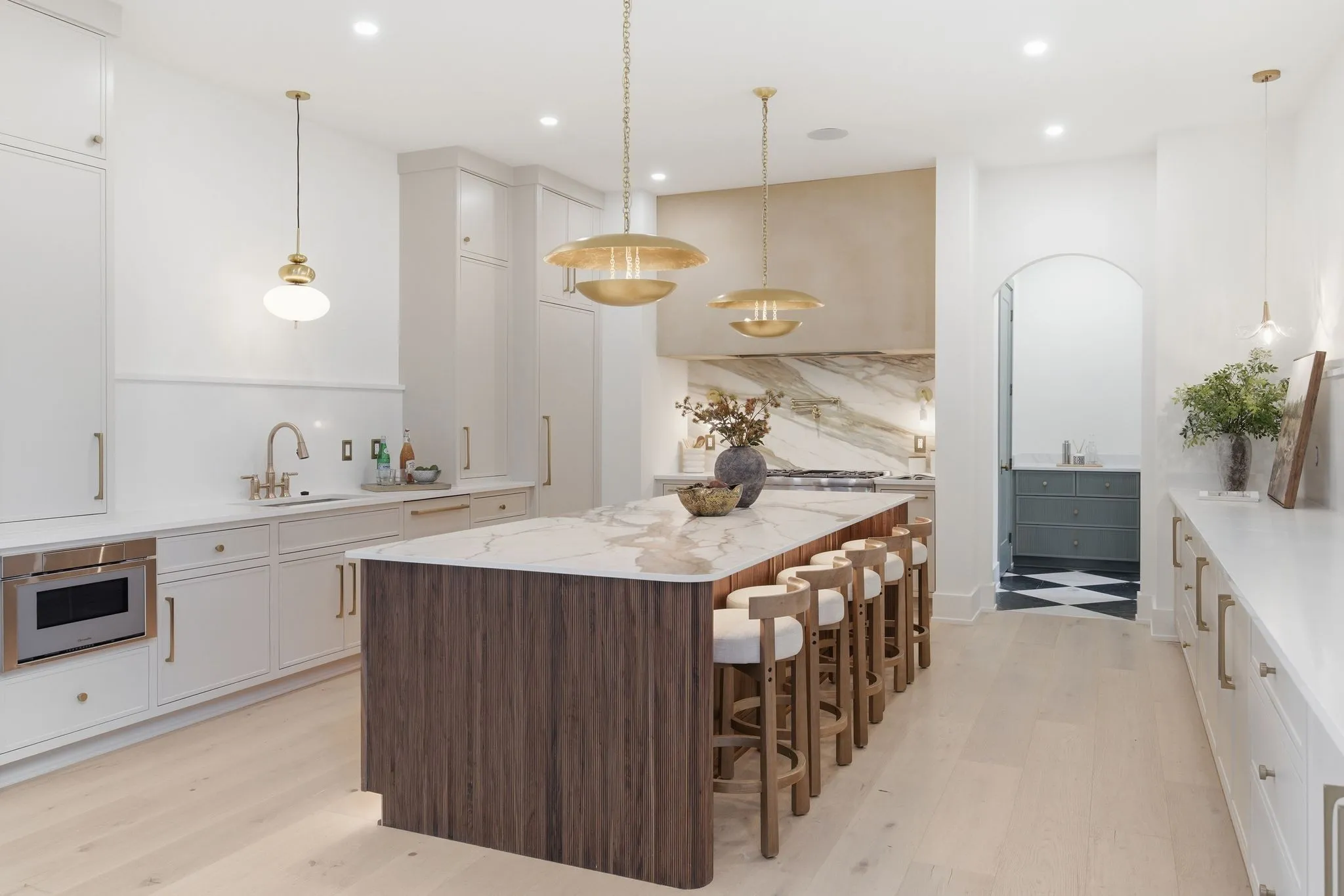 Set on a breathtaking two-acre canvas, 6807 Pennywell is a masterful blend of timeless elegance and modern design. From the two-story stone-clad foyer to the soaring 25-foot ceilings in the main living space, every detail has been thoughtfully composed to inspire. The light-filled great room is anchored by one of three fireplaces and flows seamlessly into a bespoke chef’s kitchen featuring a fluted 12-foot island, full-slab backsplash with pot filler, panel-ready appliances, and a stunning scullery with diamond-pattern tile floors.
