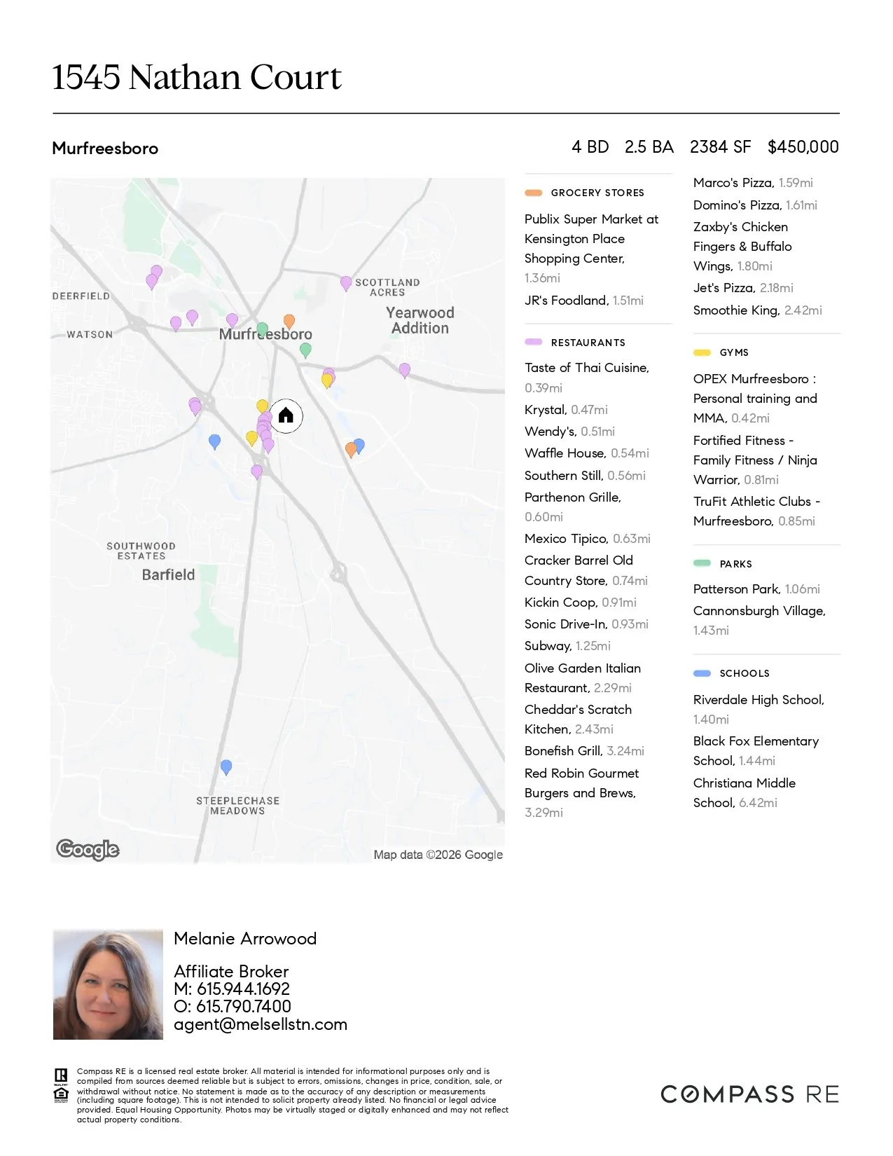 Only 62 homes in this small pocket neighborhood. These homes don’t hit the market very often so now is your chance. If you are looking for privacy and convenience, this is it. Tucked away on a quiet cul-de-sac, this home also provides quick and easy access to I-24, MTSU, Medical Center Parkway, shopping, dining, and everyday essentials. The private backyard provides the perfect setting for relaxing, entertaining, or enjoying outdoor activities. Inside, the flexible fourth bedroom offers endless possibilities and can easily serve as a home office, workout space, playroom, or creative studio to fit your lifestyle. This home combines comfort, versatility, and an unbeatable location—an ideal place to make your next move. Don’t miss the sunsets from your back deck! Just over 5 miles to the new IN-N-OUT! Less than 3.5 miles to Costco. Note the home has a new garbage disposal not a compactor and a water filter for the kitchen sink, not a water softener.