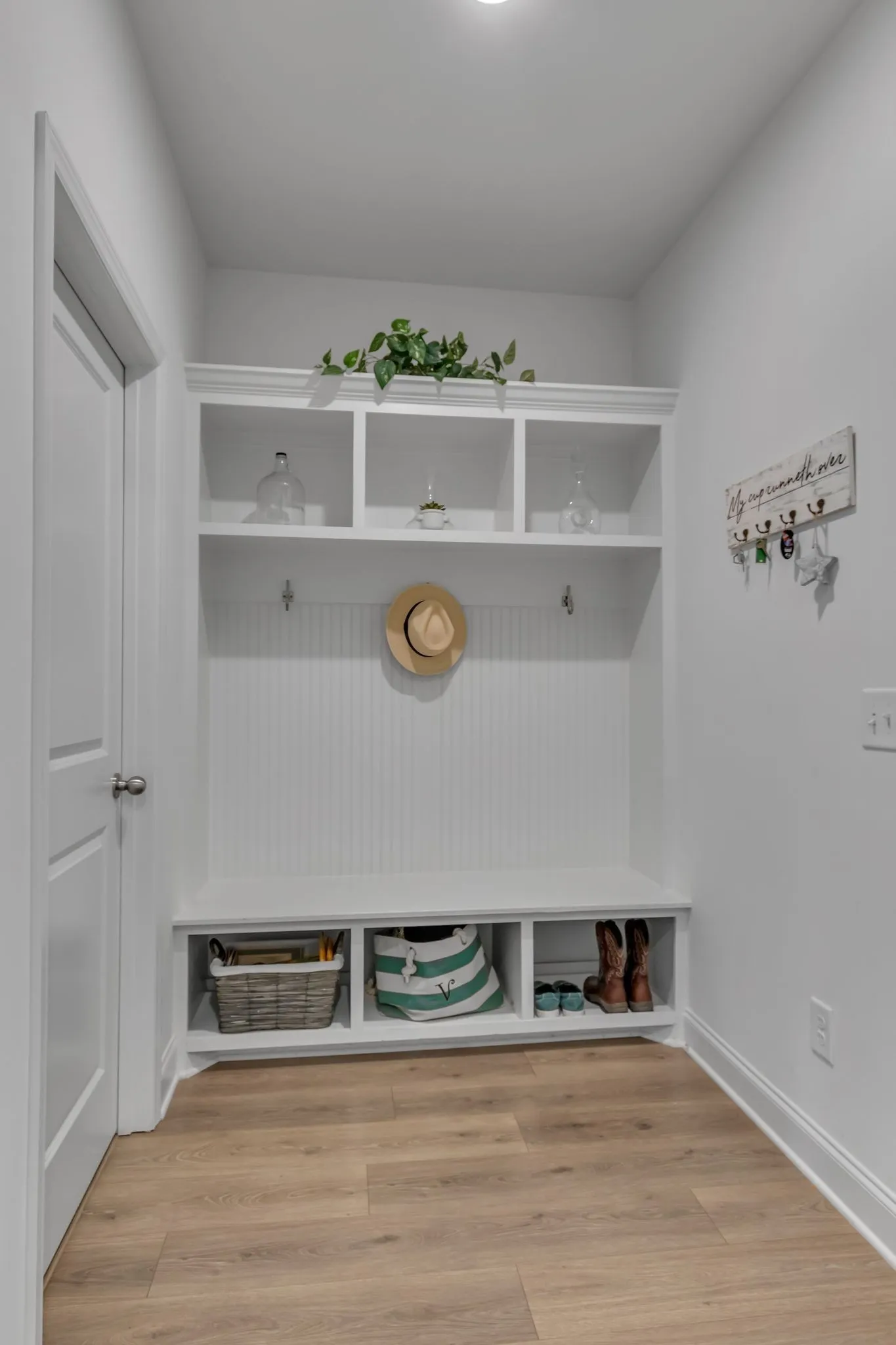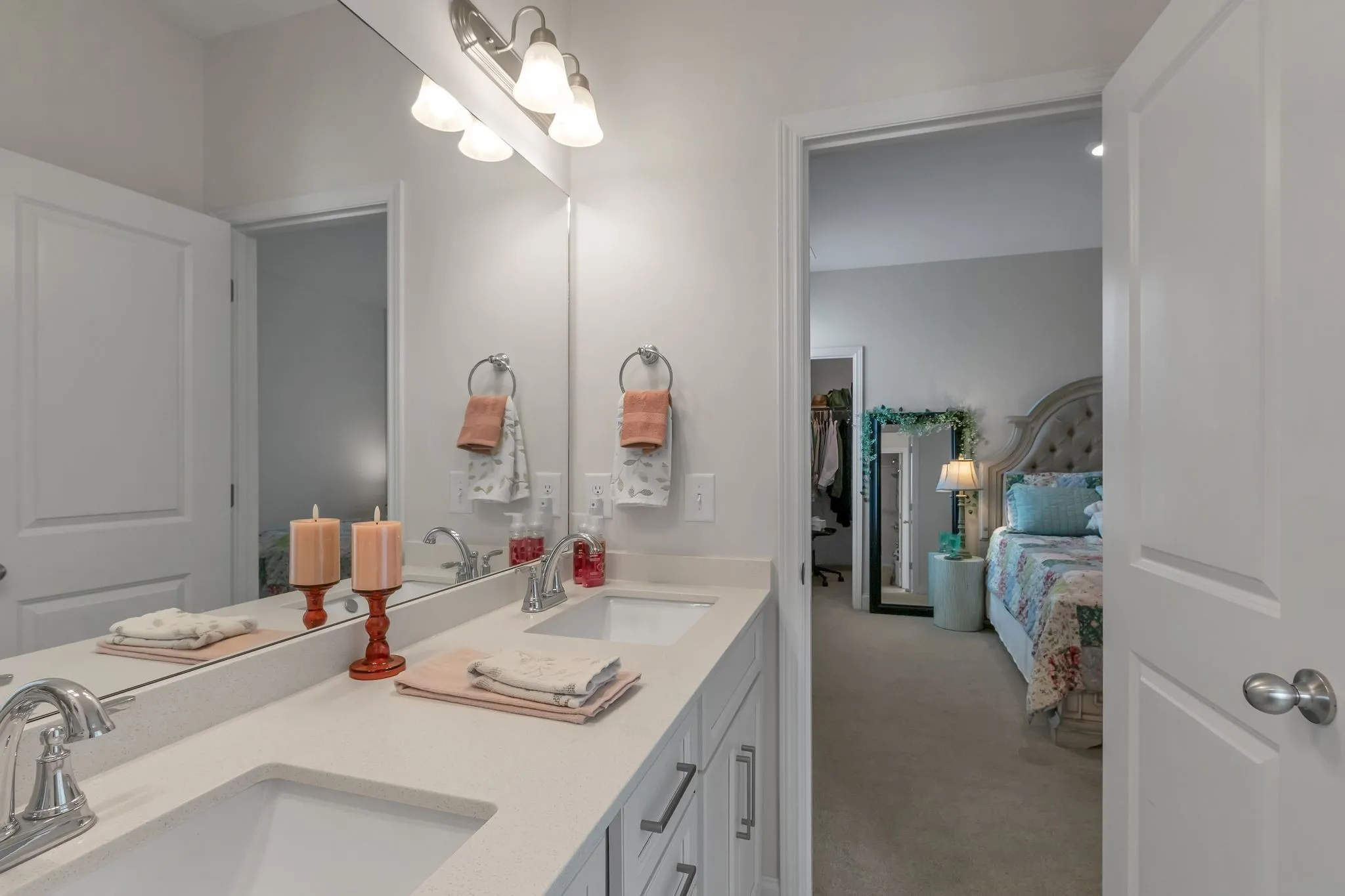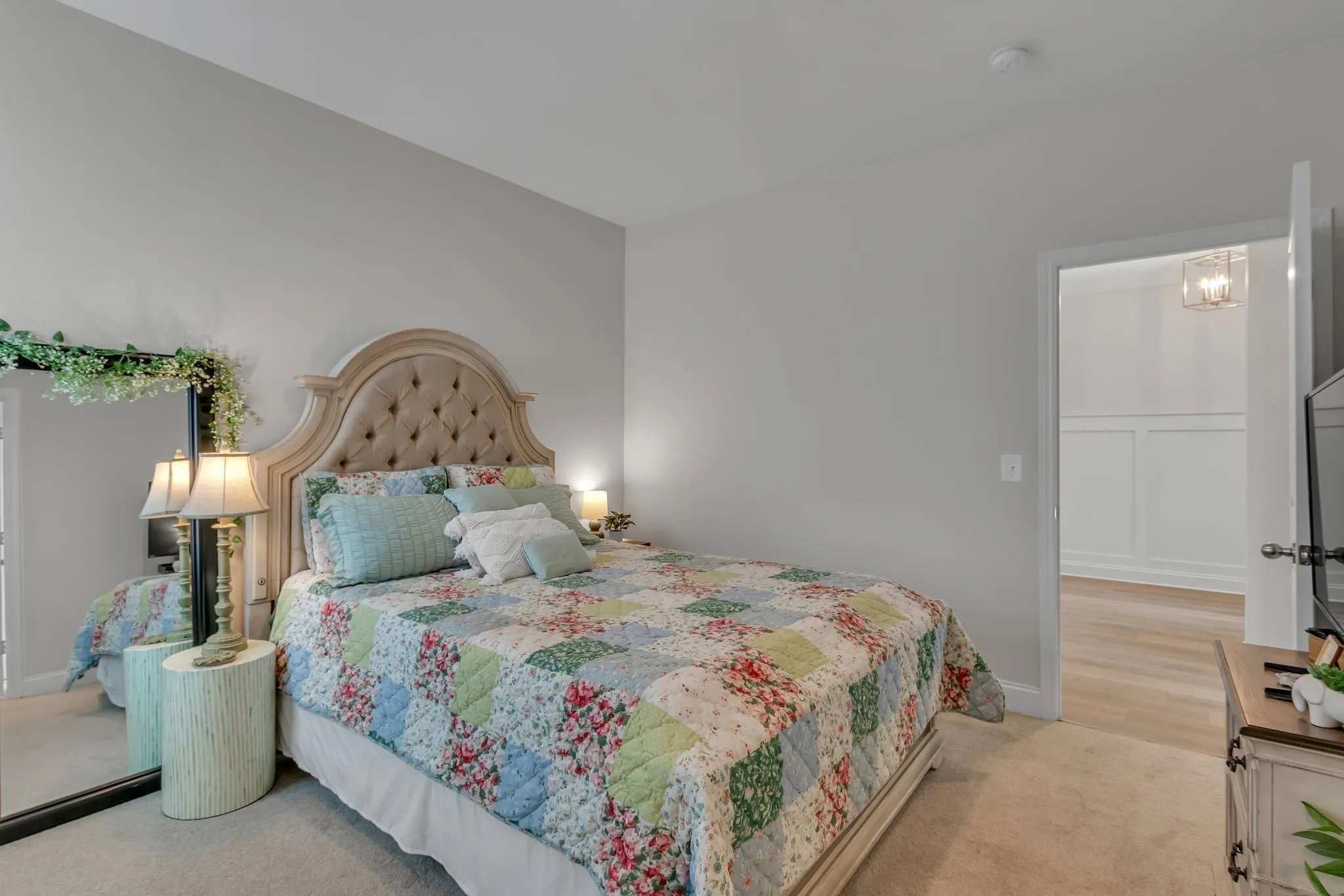 Spacious four bedroom, three and a half bath home designed for mostly one-level living with a private upstairs suite, ideal for guests, a home office, or multigenerational use. Just three years old and priced below appraisal, this home features a functional layout, ample storage, and versatile living spaces on one of South Haven’s most family-friendly streets. Engineered hardwood flooring runs throughout the main level and stairs. The open concept living, kitchen, and dining areas create a seamless flow for daily routines and entertaining. The kitchen features quartz countertops, stainless steel appliances, a large island, and an oversized walk-in pantry. The primary suite easily accommodates a king bed along with nightstands and additional bedroom furniture. The en-suite includes double vanities, an extra large soaking tub, separate shower, and walk-in closet. Upstairs offers a spacious bonus room with walkout attic storage on both sides plus a private bedroom and full bath, providing separation for guests or flexible use. The three car tandem garage adds rare storage and parking capacity. The iron fenced backyard backs up to neighborhood greenspace, offering openness while maintaining a sense of separation. South Haven amenities include walking trails, a pool with cabana, playground, food truck nights, and community events that foster a true neighborhood feel. Zoned for Poplar Hill Elementary and future Poplar Hill Middle School in 2026. The layout, storage, and scale of this home live larger than any photos convey. Schedule your showing and experience this home in person!
