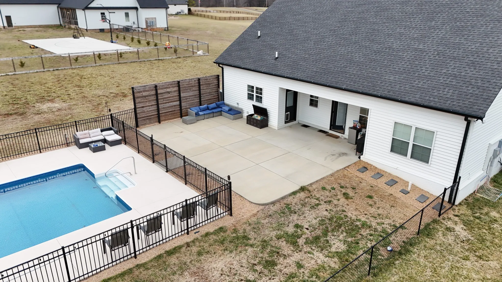 Tucked away on a flat, secluded 5-acre lot just off the road, this beautiful property offers the perfect blend of peaceful country living and convenient access to town. Designed for both comfort and entertaining, the home features a modern open floor plan with stunning exposed beams throughout the main level, creating a warm and inviting atmosphere. Step outside to enjoy an in-ground pool and a spacious back patio—ideal for hosting gatherings, summer barbecues, or relaxing evenings outdoors. The property also includes a 40×50 workshop with two 16-foot lean-tos, providing ample space for equipment, hobbies, or storage.