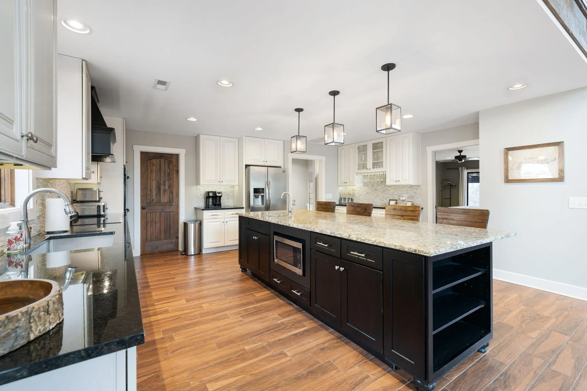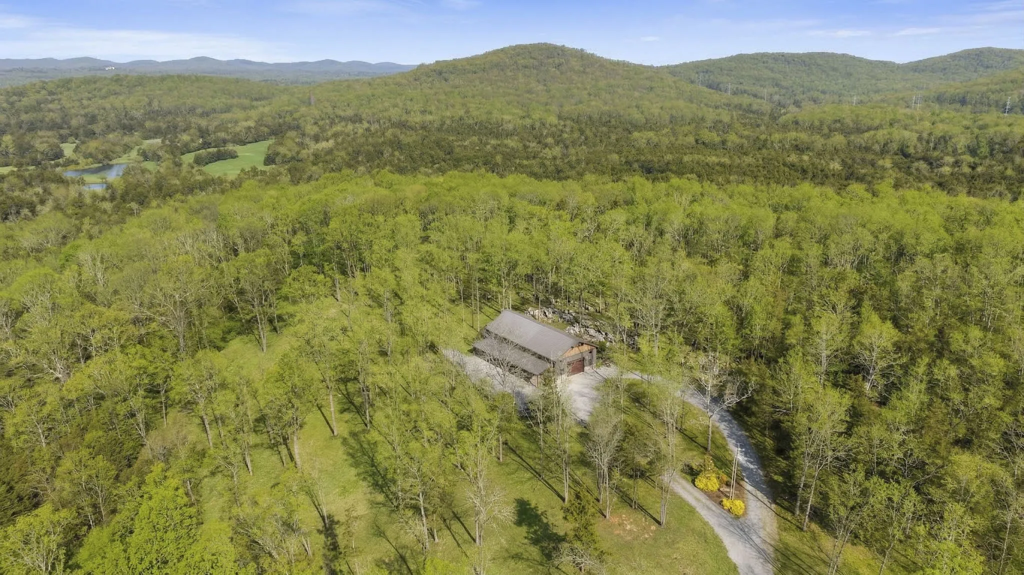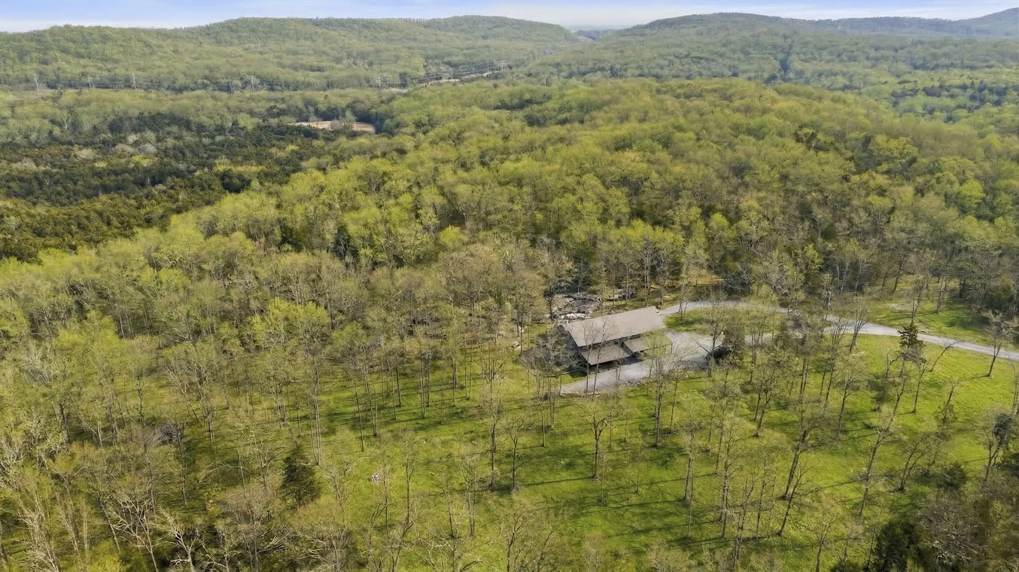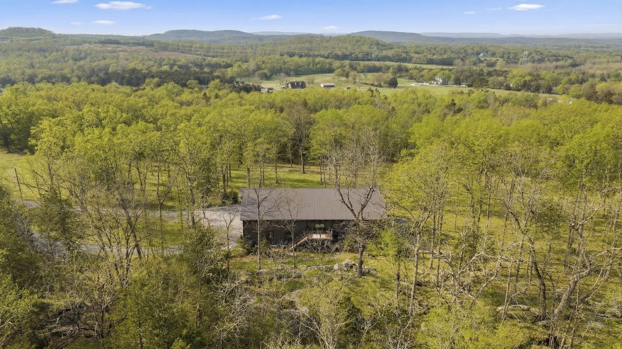 Tucked away among picturesque, serene woods, this private 3-bedroom, 2.5-bath retreat offers the perfect blend of rustic charm and modern comfort. Set on 64.46 expansive acres, this barndominium-style home features over 2,800 square feet of thoughtfully designed living space that feels miles from it all—yet remains just 35 miles from downtown Nashville and 20 miles from historic downtown Franklin. Inside, you’re welcomed by soaring two-story ceilings and an abundance of natural light that fills the open living and dining areas. A stunning floor-to-ceiling stone fireplace anchors the space, creating a warm and inviting focal point ideal for both quiet evenings and lively gatherings. The spacious kitchen is designed for entertaining, complete with a large center island offering ample prep and seating space, built-in double oven, dishwasher, refrigerator, and under-counter microwave. Just off the kitchen, a conveniently located laundry and powder bath combination adds everyday functionality. The main-level primary suite provides a peaceful escape with an en-suite bath featuring double vanities with granite countertops and a generous floor-to-ceiling tiled shower with built-in bench. Upstairs, an open loft overlooks the dramatic living and dining rooms below, offering flexible space for an office, lounge, or hobby area. Two additional bedrooms and a full bath complete the second level, including one bedroom with its own private deck overlooking the breathtaking property. Outdoor living is truly exceptional, with multiple spaces designed for relaxation and entertaining. An expansive patio features a fire pit and hot tub area, while a covered deck showcases sweeping views—perfect for morning coffee at sunrise or evening wine at sunset. Adding even more versatility, the property includes an attached two-car garage with over 1,400 square feet of potential for storage, a workshop, or creative space, along with an additional single-car carport.