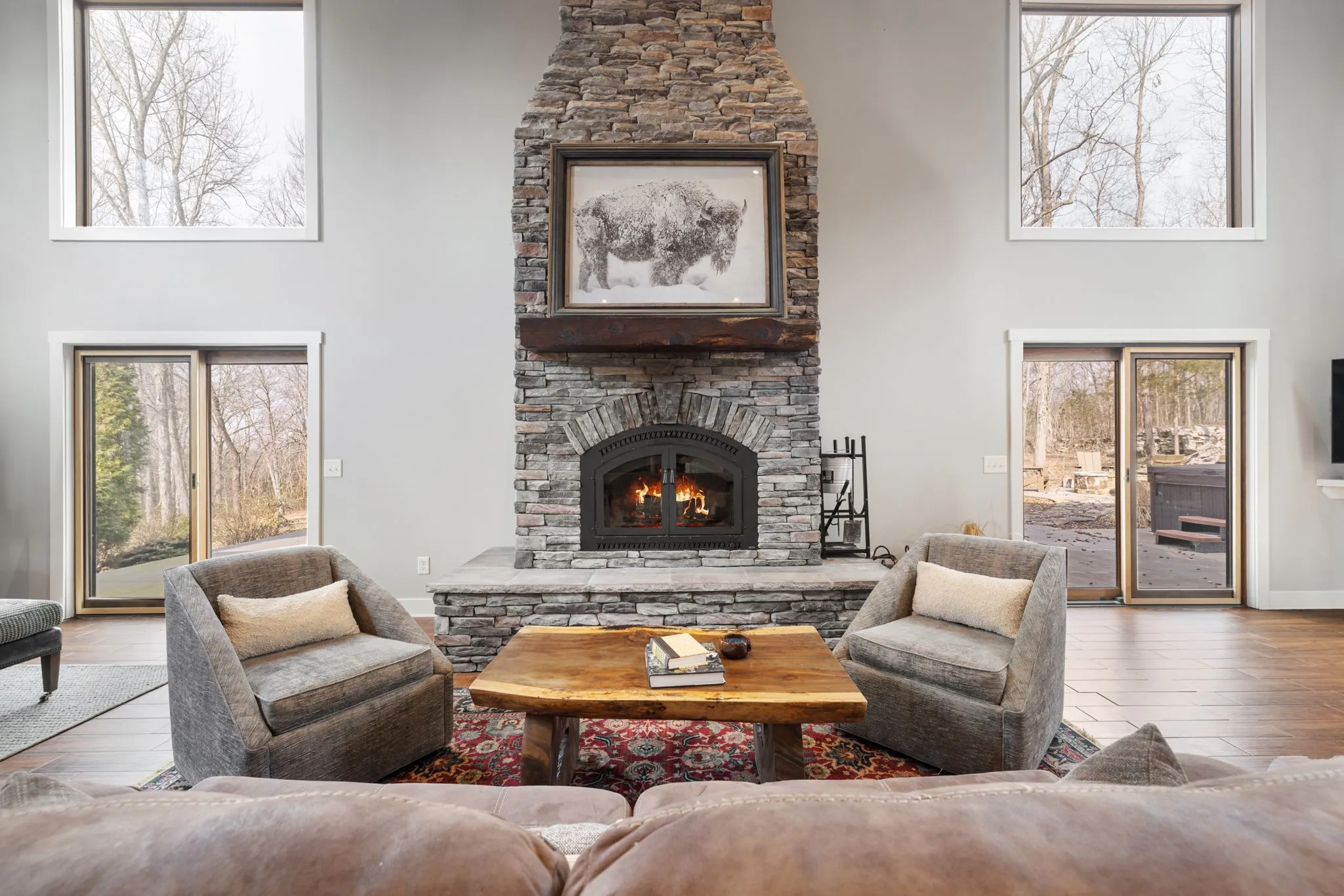 - Construction Materials: Wood Siding, Stone, Frame