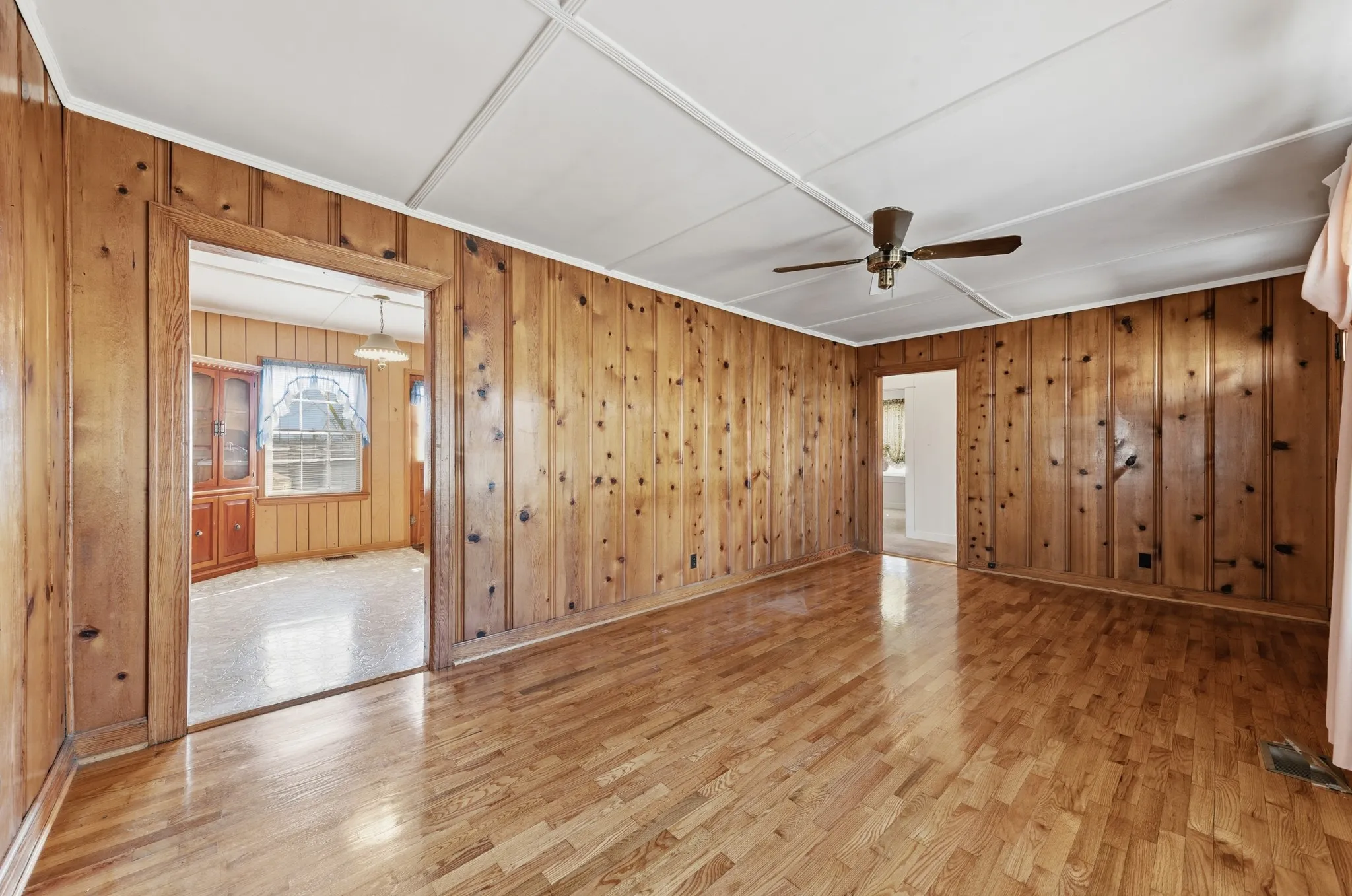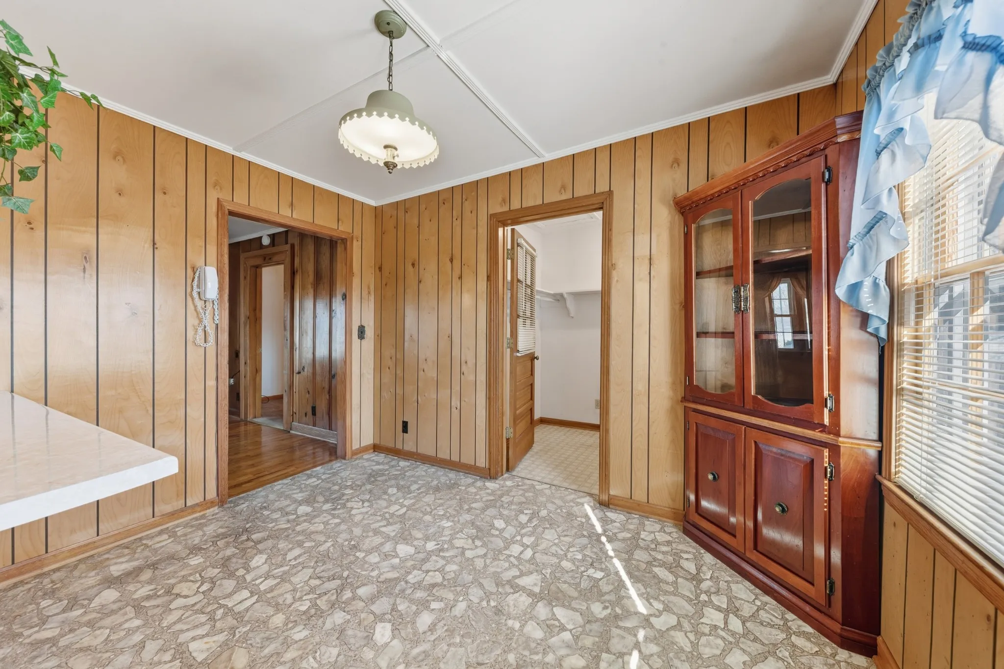 Please note that the corner cabinet in the dining/kitchen area is not attached and does not convey.