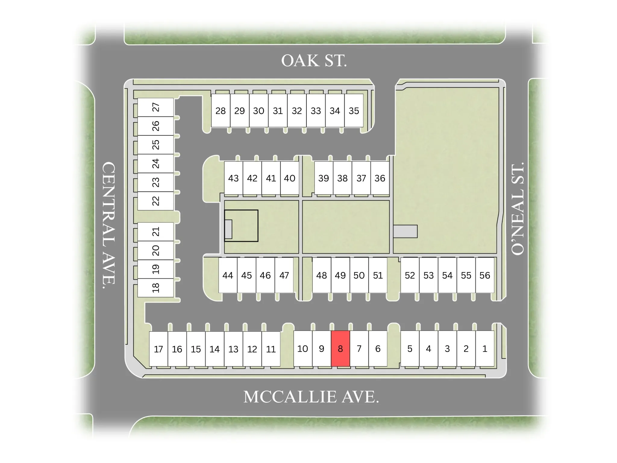 - Directions: Located at the corner of McCallie and Central Avenues. From McCallie Ave, turn onto Central Ave, then turn right on Oak Street. Turn right into The Bexley community. Alternate route: From McCallie Ave, turn onto O'Neal Street, then turn left on Oak Street. Turn left into The Bexley community. Parking is available near the mailboxes and dog park. The model is located in the building facing McCallie Ave.