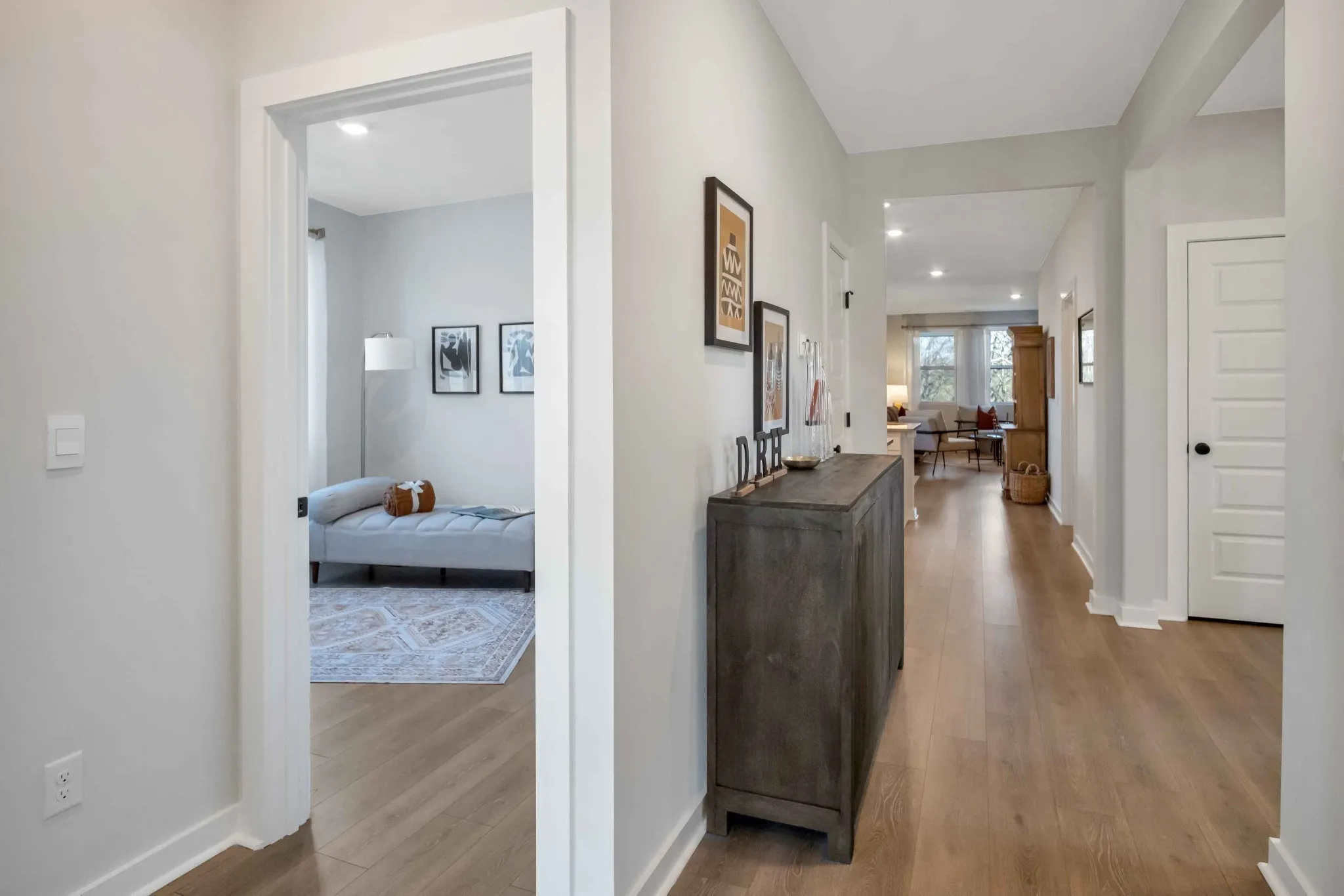 The “Dover ” plan features a split bedroom design, with wonderful, open main living areas in between. The Flex Space with French Doors could be Home Office or Den. Your Gourmet Kitchen features a 36″ Five-burner Gas Cooktop, beautiful white cabinetry, elegant and durable quartz countertops, soft close drawers, and a generously sized walk-in pantry. The Owner’s Bath comes with an upgraded tile shower, dual vanities with quartz countertops and easy access to the Laundry Room. Enjoy your morning coffee or tea and even your afternoons lounging under your Covered Patio. HOA includes care of all common areas, access to Lifestyle Center, plus Individual landscape maintenance, lawncare / sod mowing, irrigation, mulching and pruning landscape. AT&T Fiber internet also included. Conveniently located in the heart of Sumner County.