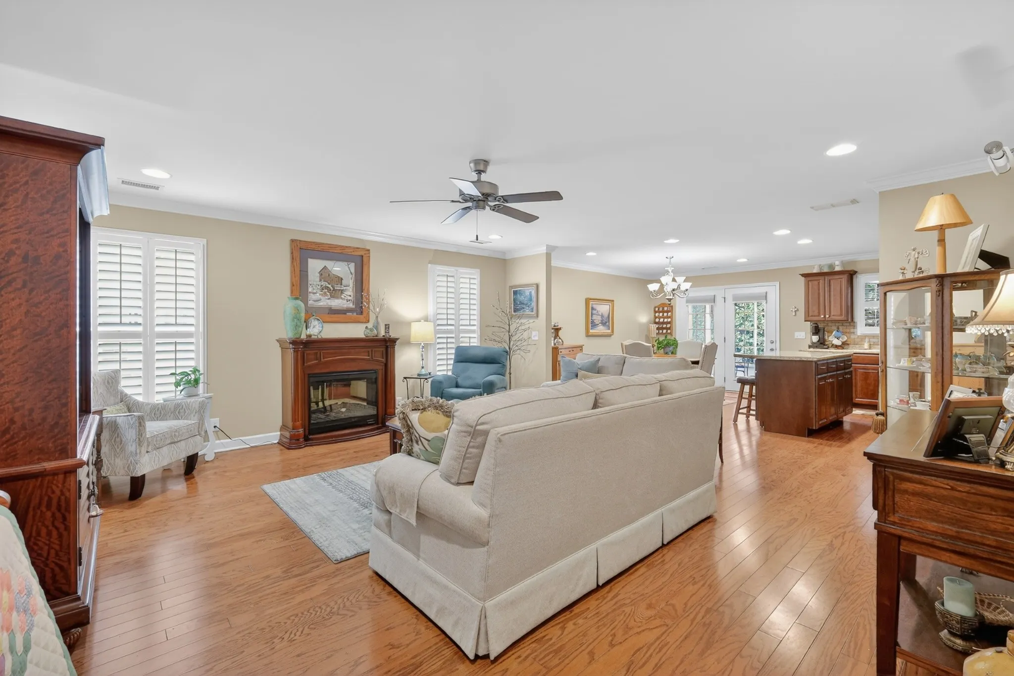 Welcome home to this beautifully maintained, one-owner residence offering easy one-level living with minimal steps and one of the only completely open floorplans in the community. The spacious kitchen features abundant cabinet storage and flows seamlessly into the main living area—perfect for everyday living and entertaining.