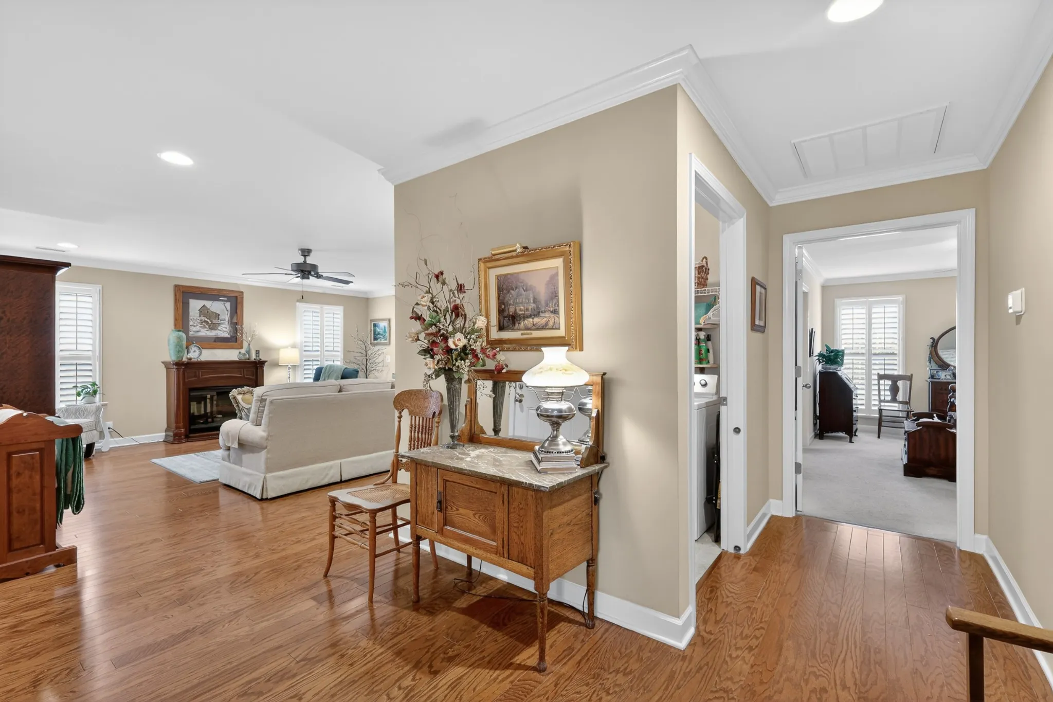 Enjoy a large living room with flexible furniture space, plantation shutters throughout, and peace of mind with an HVAC system replaced just one year ago. The primary suite offers a relaxing retreat with two walk-in closets, and the screened-in porch provides the perfect spot to unwind.