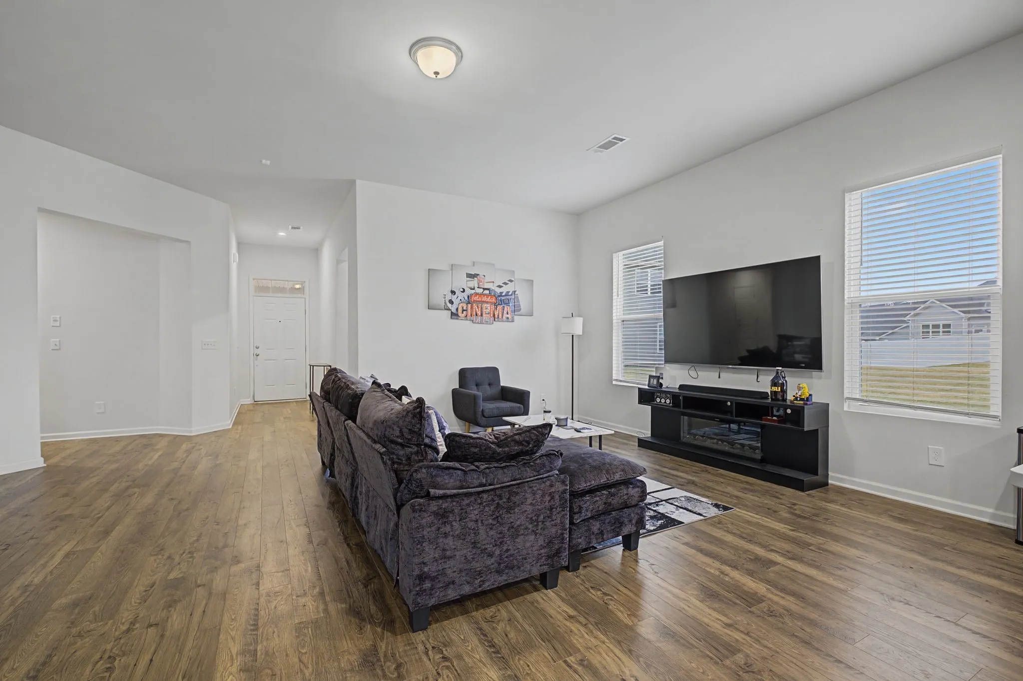 Like new and beautifully maintained duplex tucked away on a quiet cul-de-sac with a large, level lot! This 2-bedroom, 2-bath home shows like new construction and is loaded with upgrades throughout. The designer kitchen features quartz countertops, a large island, subway tile backsplash, stainless steel appliances with a gas range, a walk-in pantry, and soft-close cabinetry. Refrigerator, washer, and dryer all remain, making this home truly move-in ready. Enjoy upgraded luxury plank flooring, soaring 10-foot ceilings, and an extended back patio perfect for relaxing or entertaining. There’s a bonus versatile flex room with privacy doors offering endless possibilities; ideal for a home office, exercise room, garden room, or hobby space. The spacious primary suite includes a floating fireplace that will remain and a huge walk-in shower for a spa-like retreat. Low-maintenance living with modern finishes in a prime cul-de-sac location, this one checks all the boxes! In addition this fabulous community features a wide array of amenities, including a clubhouse, pool, state of the art fitness center, walking trails, sidewalks throughout and a neighborhood Farmers Market! HOA fee covers exterior maintenance including mowing, irrigation, and master insurance policy.***Seller welcomes offers from Churchill Mortgage Certified Home Buyers—buyers are pre-underwritten and backed by a lender paid $10,000 Seller Guarantee if financing fails. Call Dan Kraus for more information***