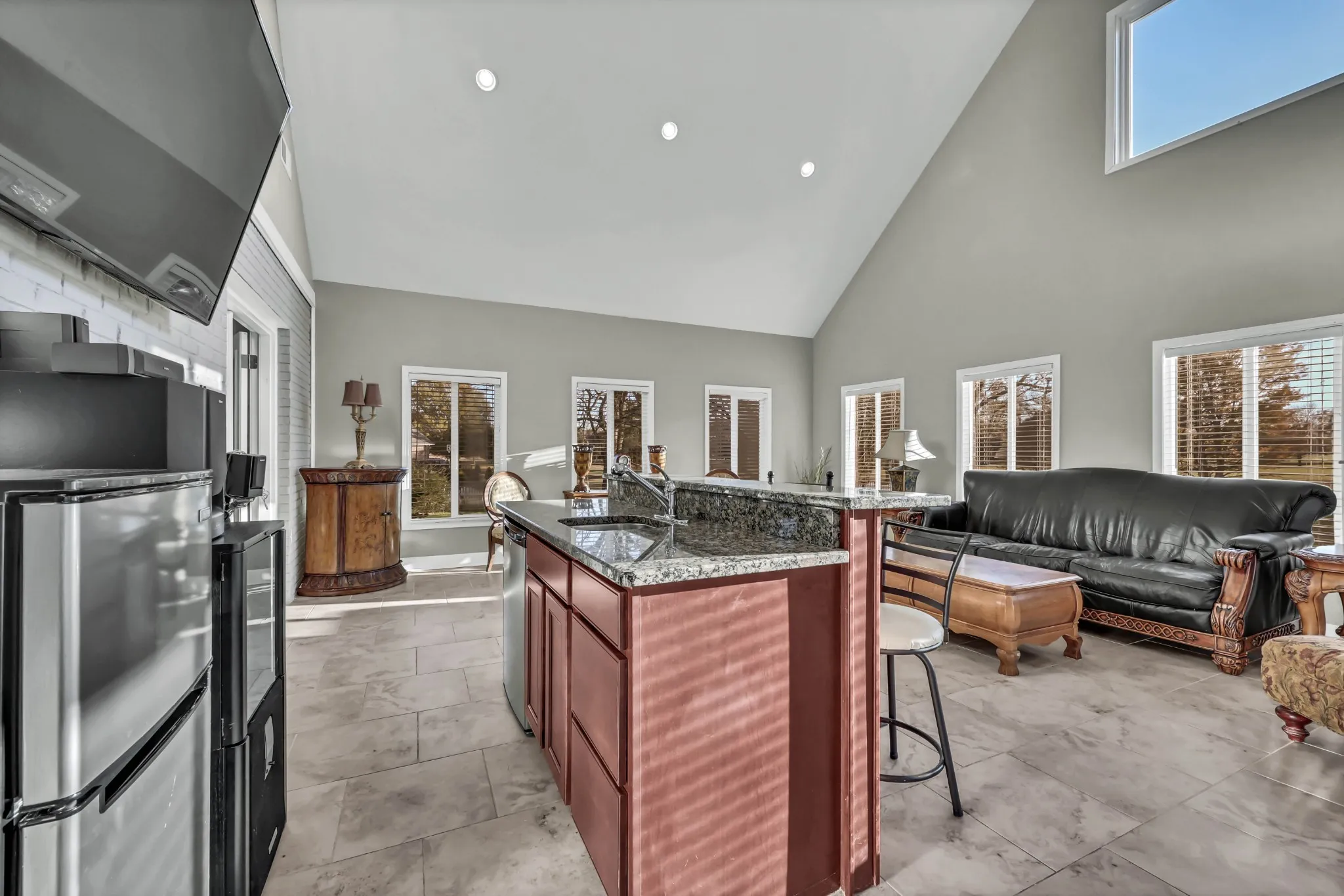 Welcome to one of the most desirable settings in the area. This beautiful all-brick home sits on approximately 1.7 acres at the end of a quiet cul-de-sac, offering privacy, space, and a resort-like feel from the moment you arrive. Inside, the home features 4,138 sq ft of well-planned living space, including 3 bedrooms, a dedicated office, a bonus room, and 3 full baths. The main living areas are generously sized, with both a large family room and a separate den for flexible gatherings and relaxation. One of the standout features is the massive Florida room, wrapped in windows and filled with natural light. This impressive space includes its own kitchen area perfect for entertaining, hosting holidays, or enjoying daily life with beautiful views of the property. The main kitchen offers hardwood floors, granite countertops, a tile backsplash, and an oversized island with multiple outlets. Upgrades include a brand new chef’s-grade gas stove with pot filler, premium stainless steel vent hood, and a smart refrigerator. A large pantry and extensive cabinetry provide excellent storage. The primary suite offers elegance with its octagonal tray ceiling and spacious layout. The primary bath includes double vanities, mosaic tile flooring, a jetted soaking tub, and a separate tiled shower with a rain shower head. Additional bedrooms are well-sized and connected by a Jack and Jill bathroom. A dedicated office adds convenience, while the large laundry room includes a deep sink and ample cabinetry. Outdoor living is exceptional, featuring a beautiful paver patio and a stunning outdoor fireplace. The fenced backyard offers room for recreation, gardening, and pets, and a brick storage building adds extra utility. Unfinished attic space, already studded for a future bath, provides expansion potential. Zoned for Carmel Elementary, Rossview Middle, and Rossview High. This home blends space, comfort, and an exceptional lot—truly a must-see. Enjoy the Virtual Tour now.
