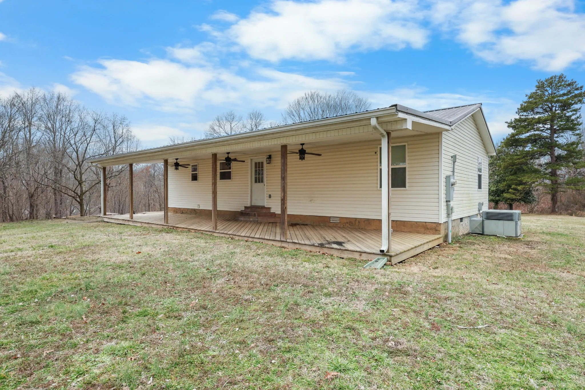 Roughly 8 acres of peaceful country living in Dover, TN! This charming ranch-style home offers the perfect mix of privacy, space, and comfort, just a short drive from Clarksville. Inside, the home is bright and welcoming, with spacious bedrooms, an updated galley kitchen, and plenty of natural light. Relax on the inviting rocking-chair front porch or take in the sweeping views of your land from the expansive covered back porch.