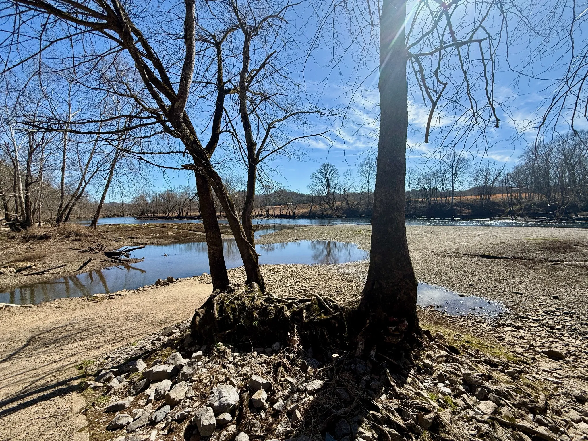 CANEY FORK RIVER @ BETTYS ISLAND on this exceptional 7.2± acre retreat offering a rare blend of water access, elevation, and privacy. Featuring Betty’s Island just off the shoreline and an elevated bluff homesite overlooking the river, the property captures sweeping panoramic views from the primary build site, deck overlook, and existing RV/camp setup—creating an unforgettable riverfront setting. The land presents a thoughtful mix of wooded seclusion and cleared usable areas, with gently rolling topography ideal for a custom home, luxury river cabin, or legacy getaway. A two-bedroom septic system is already installed, along with electricity and water in place, providing immediate functionality and significant value for future construction. Nearly 1,200 feet of river frontage enhances both privacy and recreational appeal, while a public boat ramp adjacent to the property ensures effortless access to boating, kayaking, and fishing year-round. Adding to the charm and convenience, The Rivah General Store sits directly across the street—perfect for breakfast, coffee, supplies, or gathering with the local river community. The 2021 RV currently on-site conveys with an acceptable offer, allowing immediate enjoyment while planning your long-term vision. With approximately 742 feet of county road frontage and blacktop access, the property combines accessibility with peaceful seclusion, all less than one hour from Nashville International Airport. Riverfront acreage offering extended shoreline, elevated view corridors, and existing infrastructure is increasingly difficult to find. Cash or new construction conventional loans only. This is a distinctive opportunity to secure a premier stretch of Caney Fork riverfront and create a legacy property defined by water, privacy, and enduring value. ( small old house by driveway has no value ) Owner financing with 50% down.