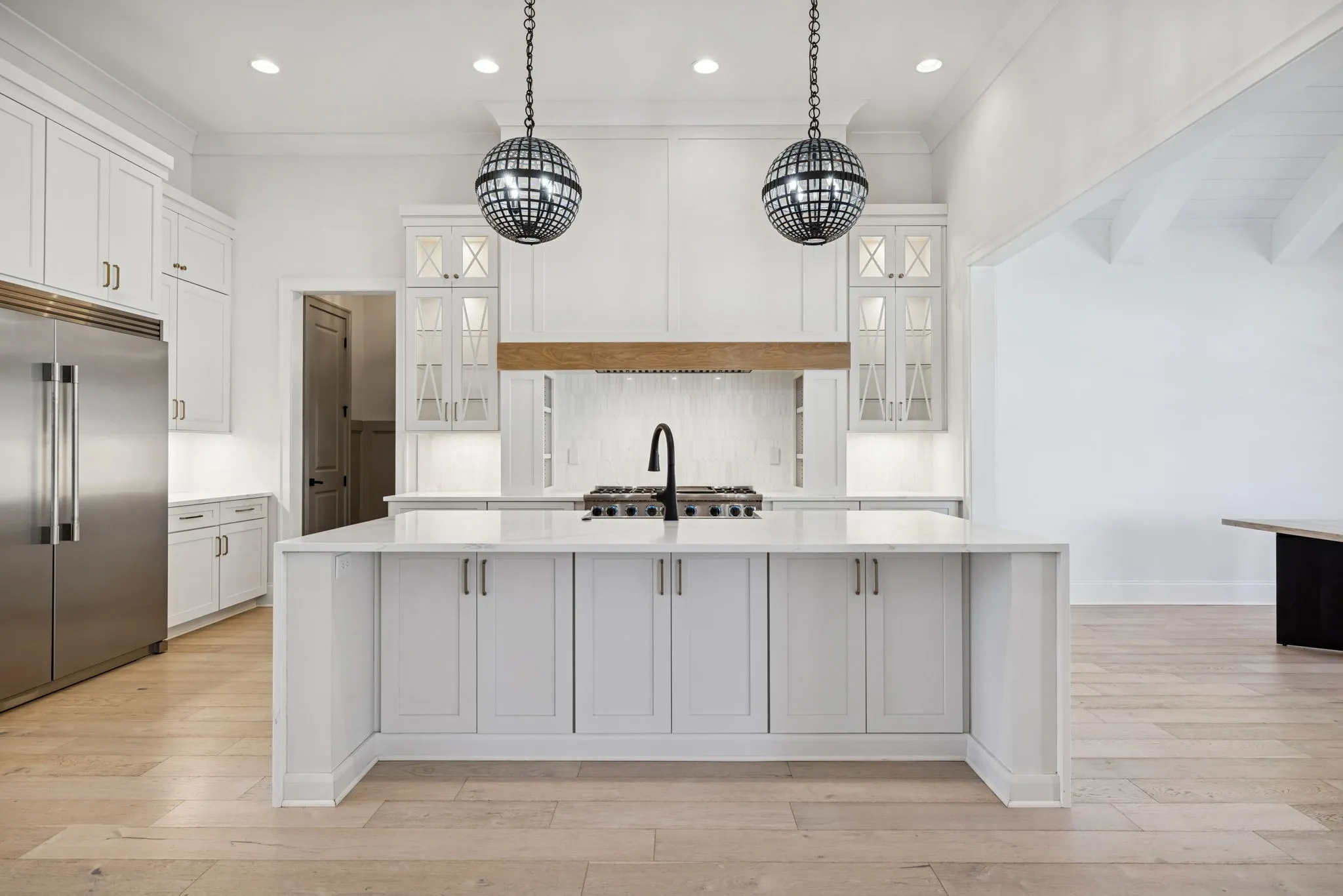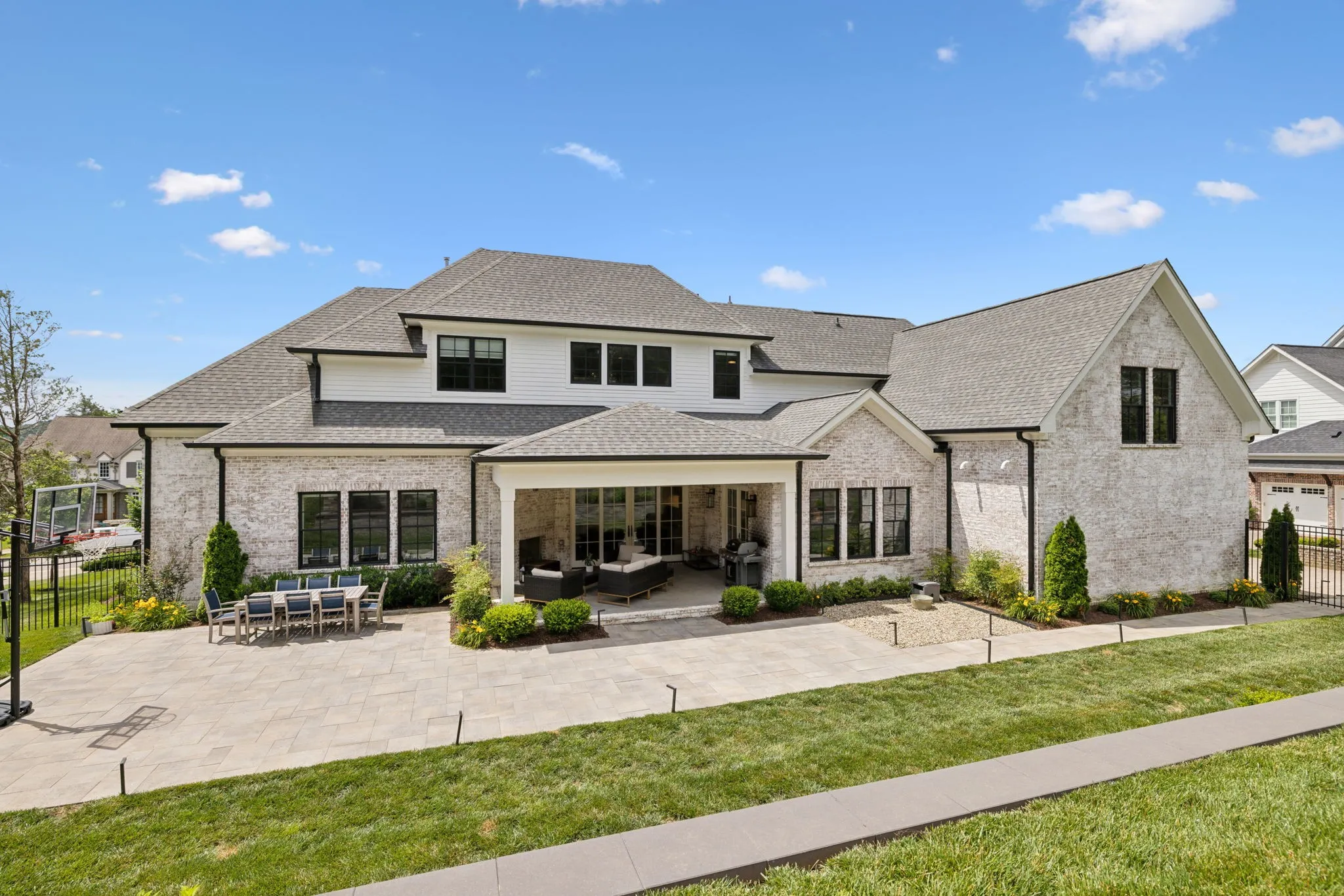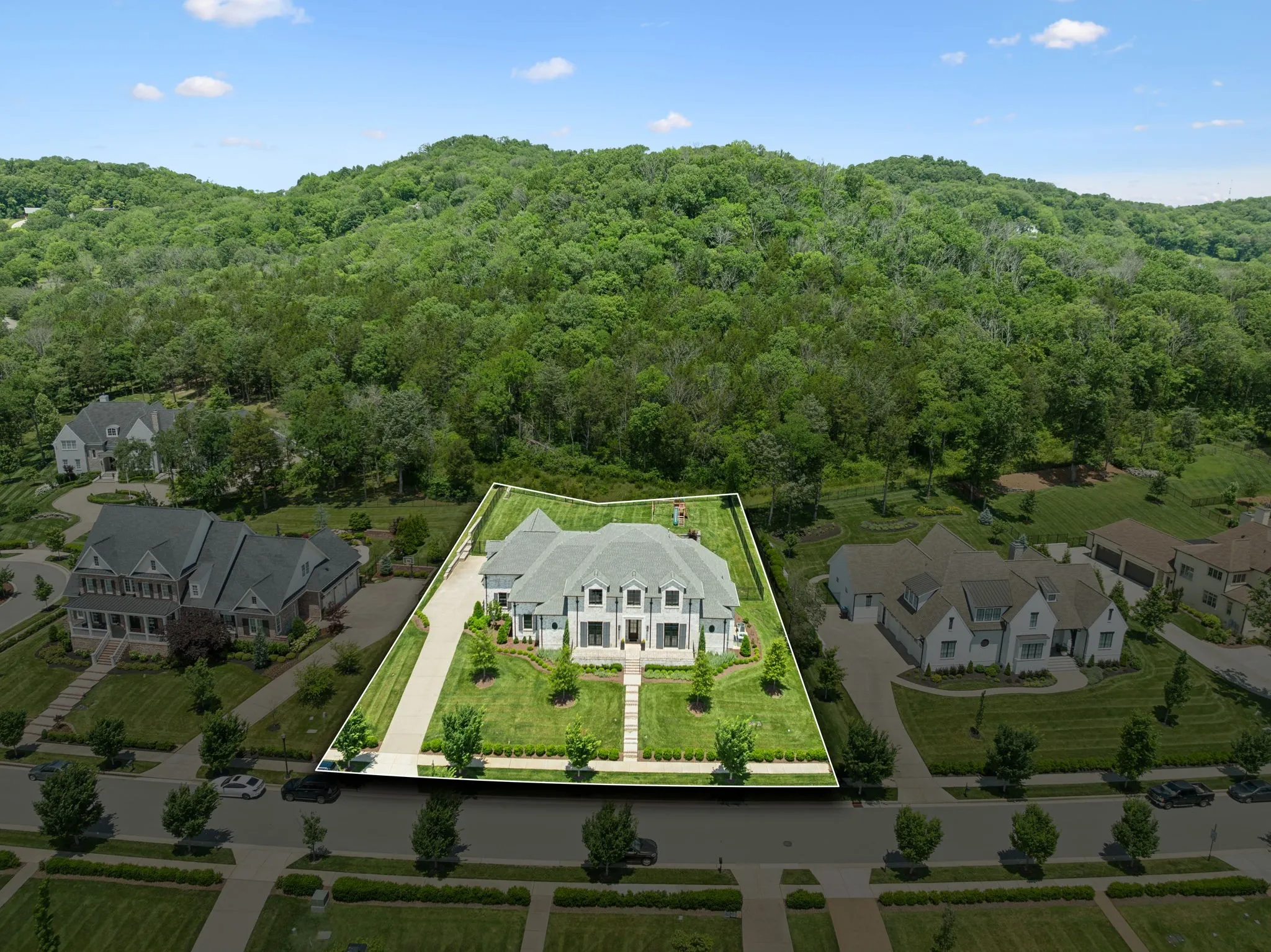 If you’ve been waiting for the right home in one of Franklin’s most coveted neighborhoods, this is it. Perfectly positioned in The Preserve at Echo Estates, this move-in ready residence offers the feel of new construction—without the wait. From the moment you step inside, the home makes a statement. Soaring ceilings, expansive windows, and beautiful natural light create an airy elegance that feels both impressive and inviting. The main level was designed for the way you actually live—effortlessly blending refined entertaining spaces with everyday comfort. Host unforgettable dinners in the formal dining room with terrace access, gather around the oversized island in the designer kitchen, or enjoy quiet mornings in the beamed breakfast room. A chef’s scullery and hidden pantry keep everything beautifully tucked away, while the dramatic two-story great room anchors the home with warmth and style.The primary suite is a true retreat, complete with a 12-foot ceiling, spa-inspired bath, and convenient access to the utility room. A second main-level suite offers flexibility for guests or multigenerational living, while a richly detailed coffered office creates a distinguished work-from-home setting. Upstairs, three additional ensuite bedrooms are complemented by thoughtfully designed living spaces: a statement bonus room with custom built-ins and sliding doors, an open flex area ideal for study or lounge space, and a sunken media room ready for movie nights and game-day gatherings. Outdoor living is just as compelling. A covered patio with fireplace invites year-round enjoyment, overlooking beautifully tiered landscaping and a fenced backyard that backs to protected common space—offering both privacy and serenity. Wide-plank hardwoods, gas lanterns, dual staircases, a generous drop zone, and walk-in attic storage speak to the home’s attention to detail. All of this, just moments from BGA Upper School and Mack Hatcher.