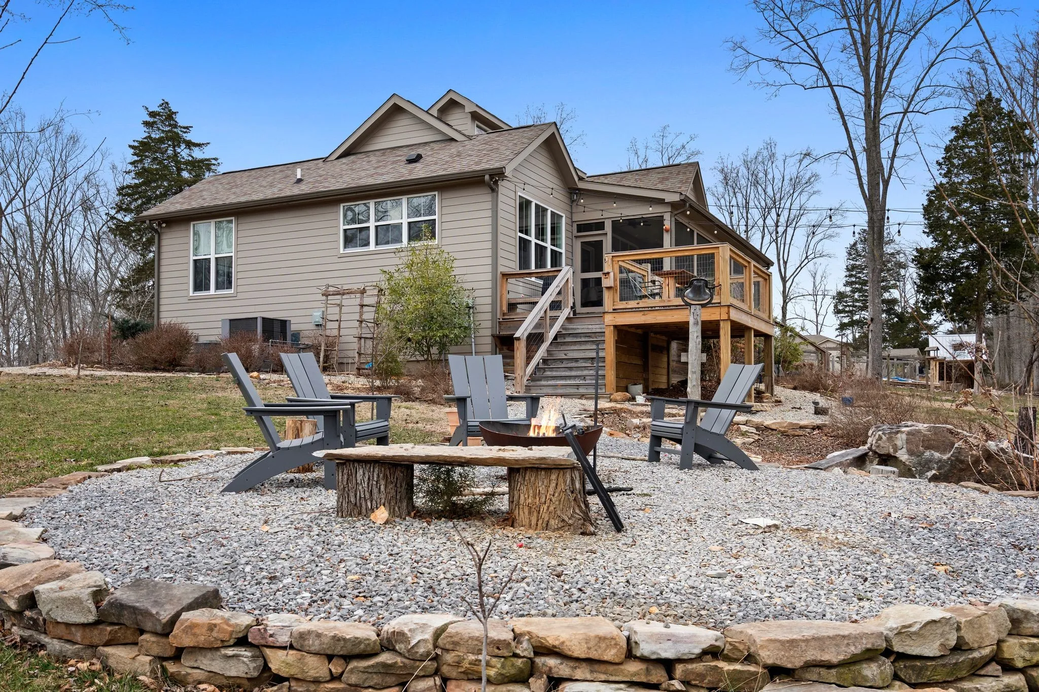 Outdoor living is exceptional with a wide front porch, a screened back porch, and two side decks for grilling or a hot tub. Enjoy total privacy, with sunrise views from the back and sunsets out front.